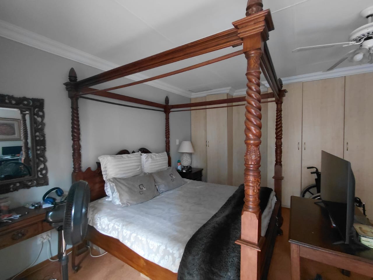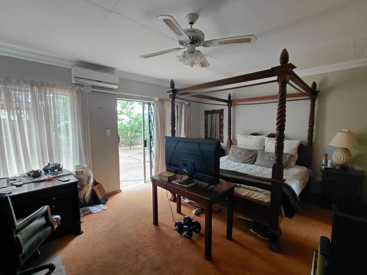 - Main bedroom with ensuite bathroom, aircon, and direct garden access