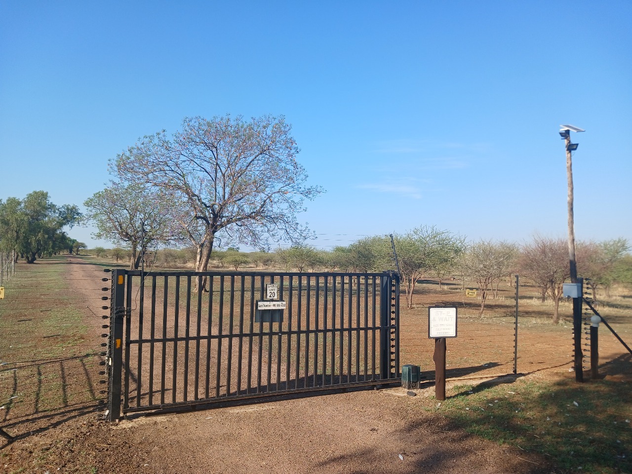 ELECTRIC FENCE, WITH TWO GATES REMOTES AND JACKAL FENCING AROUND THE FARM, TWO BORE HOLES AND A THIRD HOLE NOT IN USE.