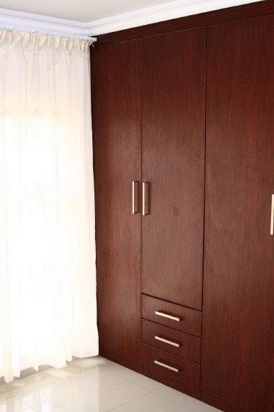 This home offers three well-proportioned bedrooms and two bathrooms, including a private en-suite for added convenience. Each bedroom benefits from built-in dark wood wardrobes, providing generous storage solutions. The en-suite bathroom features modern tiling and includes a bathtub with and a shower. The second spacious bathroom features a bathtub.