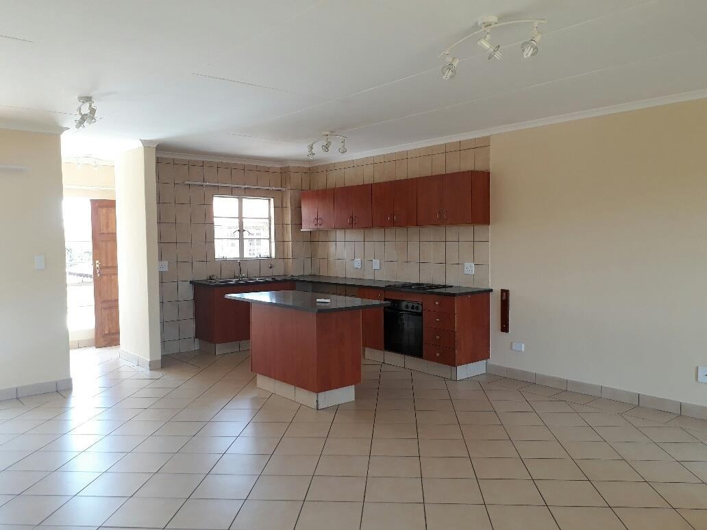 -Open-plan kitchen, lounge, and dining area with granite countertops and dishwasher/washing machine connections