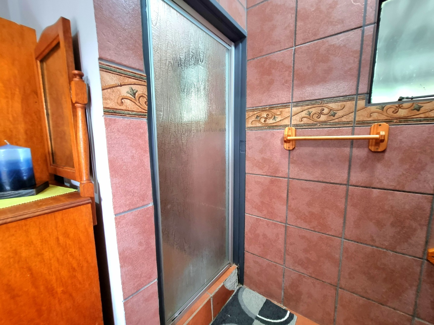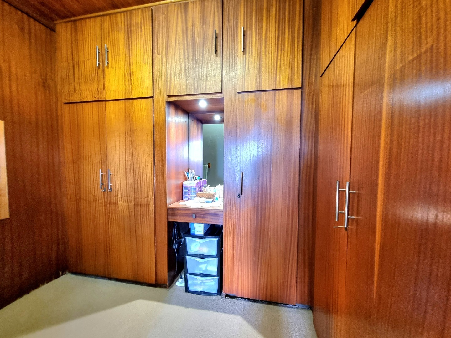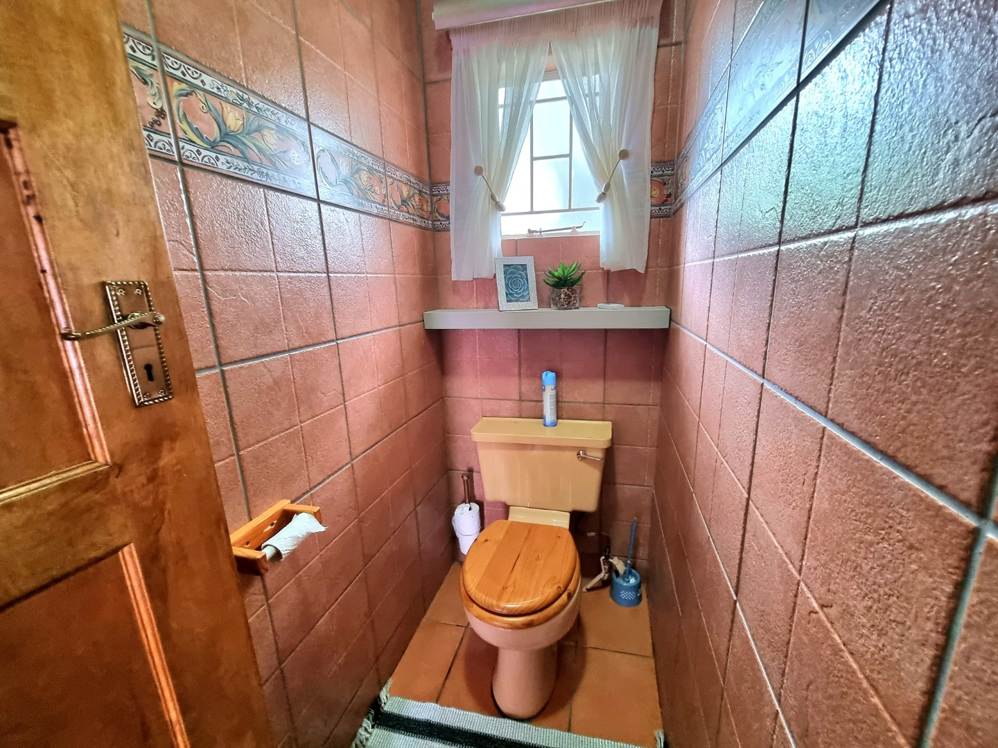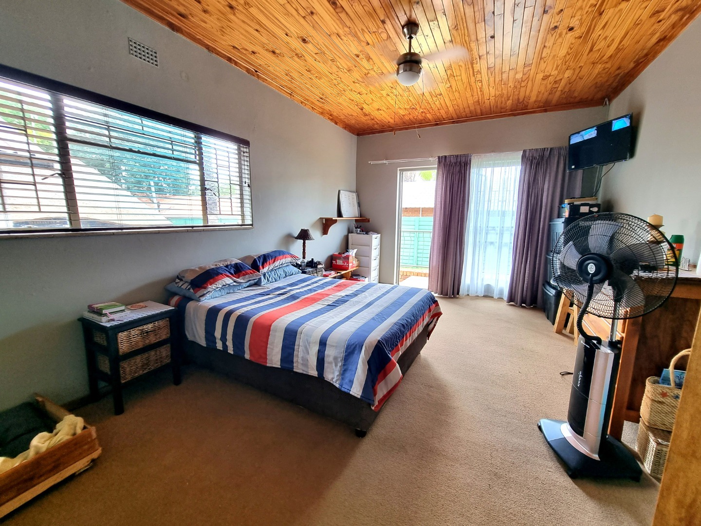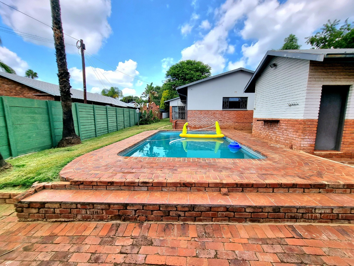 The home offers four generously sized bedrooms, all fitted with ceiling fans and built-in cupboards, plus a separate fifth bedroom with its own en-suite bathroom located next to the pool — perfect for guests or extended family.