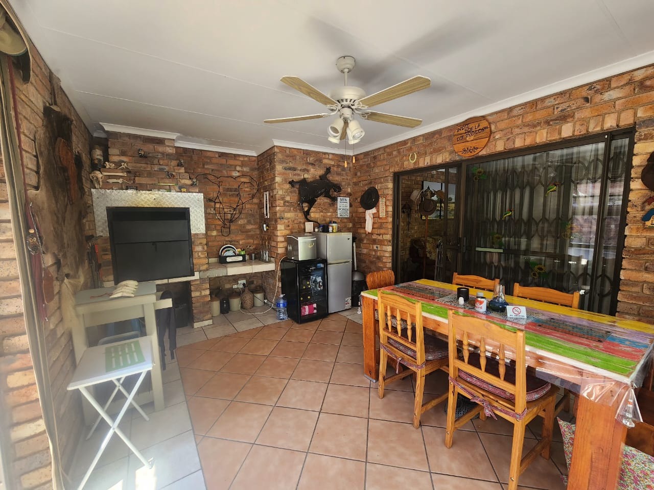 Step out onto the covered patio with built-in braai and ceiling fan, perfect for relaxing afternoons or gathering with friends and family. The sparkling swimming pool adds a refreshing touch on hot days, all while overlooking the tranquil bushveld surroundings.