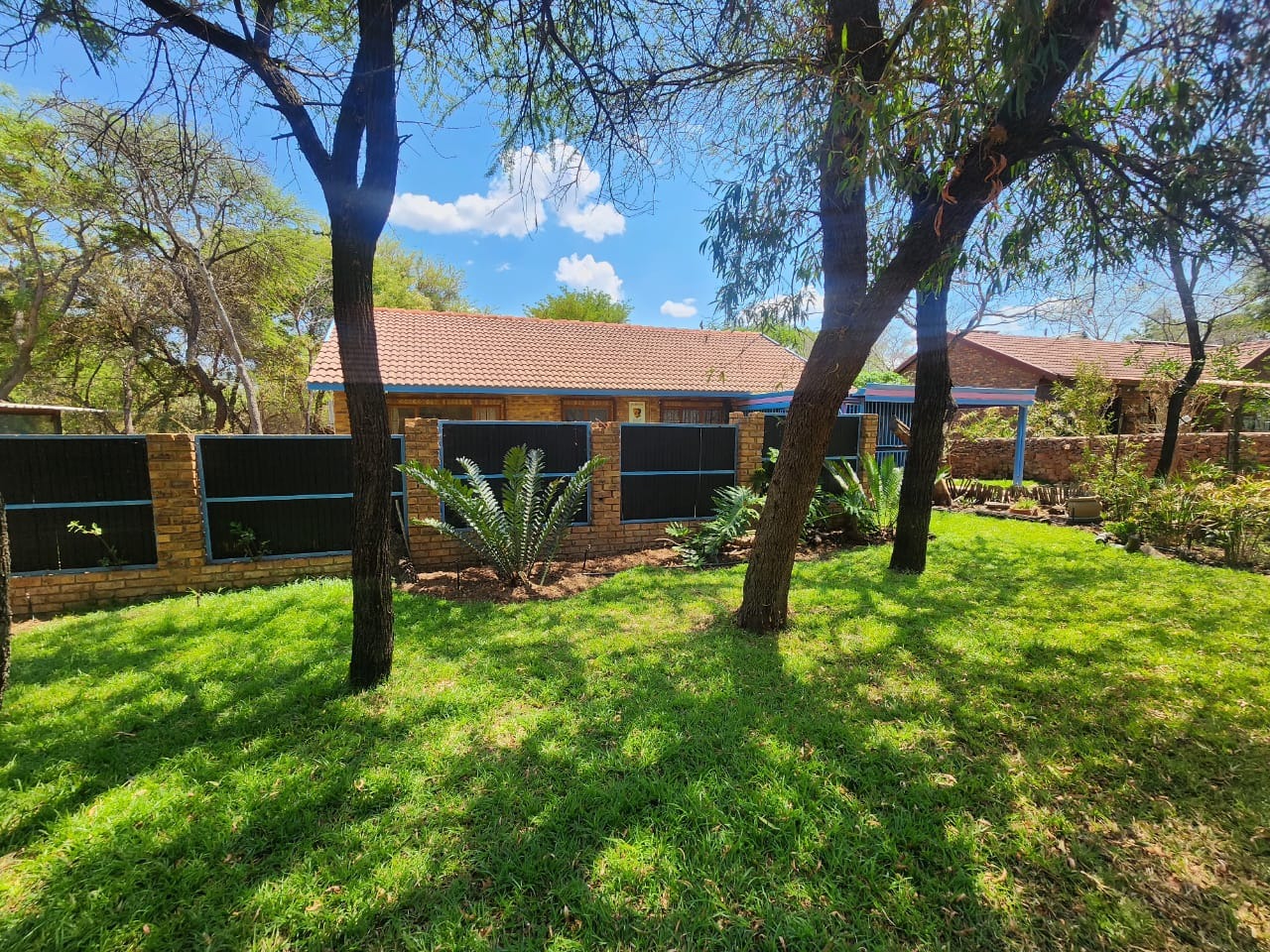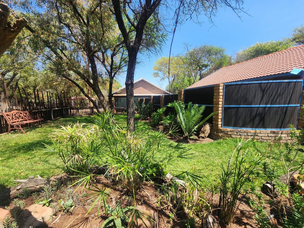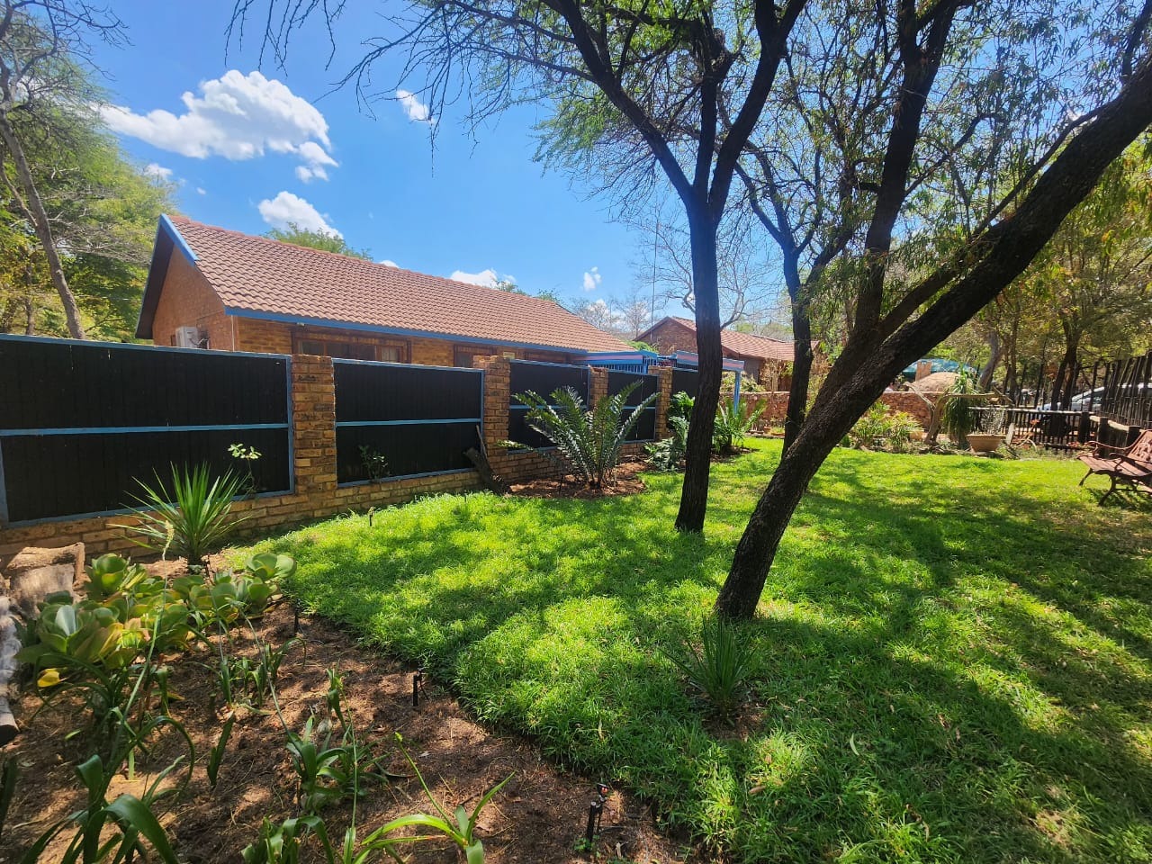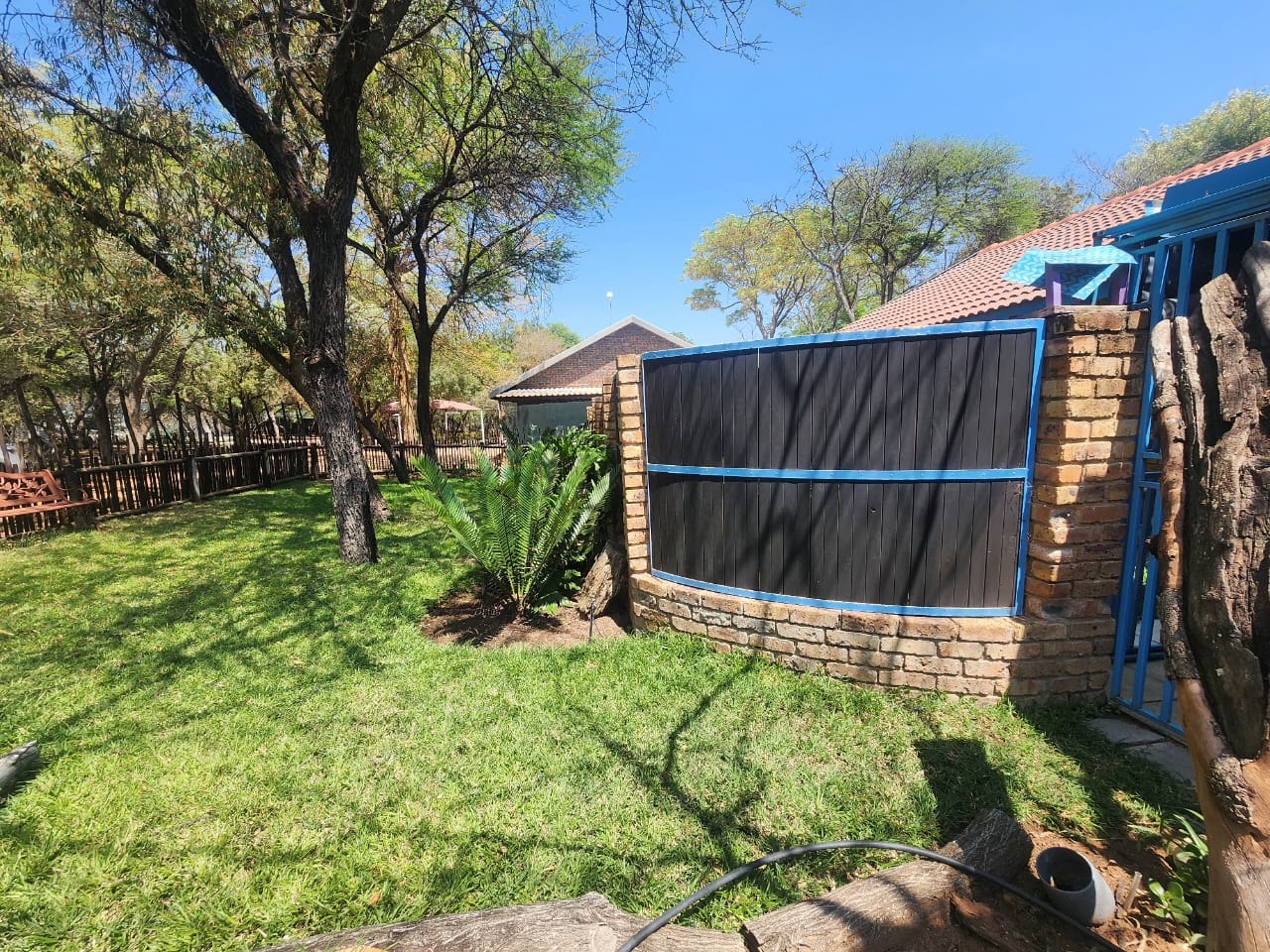 Enjoy energy independence with a 5kW Growatt inverter and a 5.12kWh lithium battery, giving you peace of mind. Outside, a well-maintained private garden with lush grass, a Wendy house, a wooden fence with a gate, and a carport for two cars completes this charming bushveld retreat.