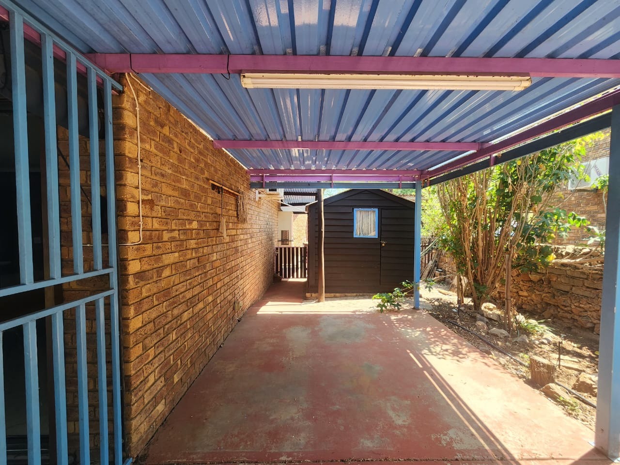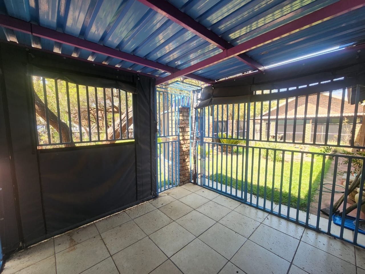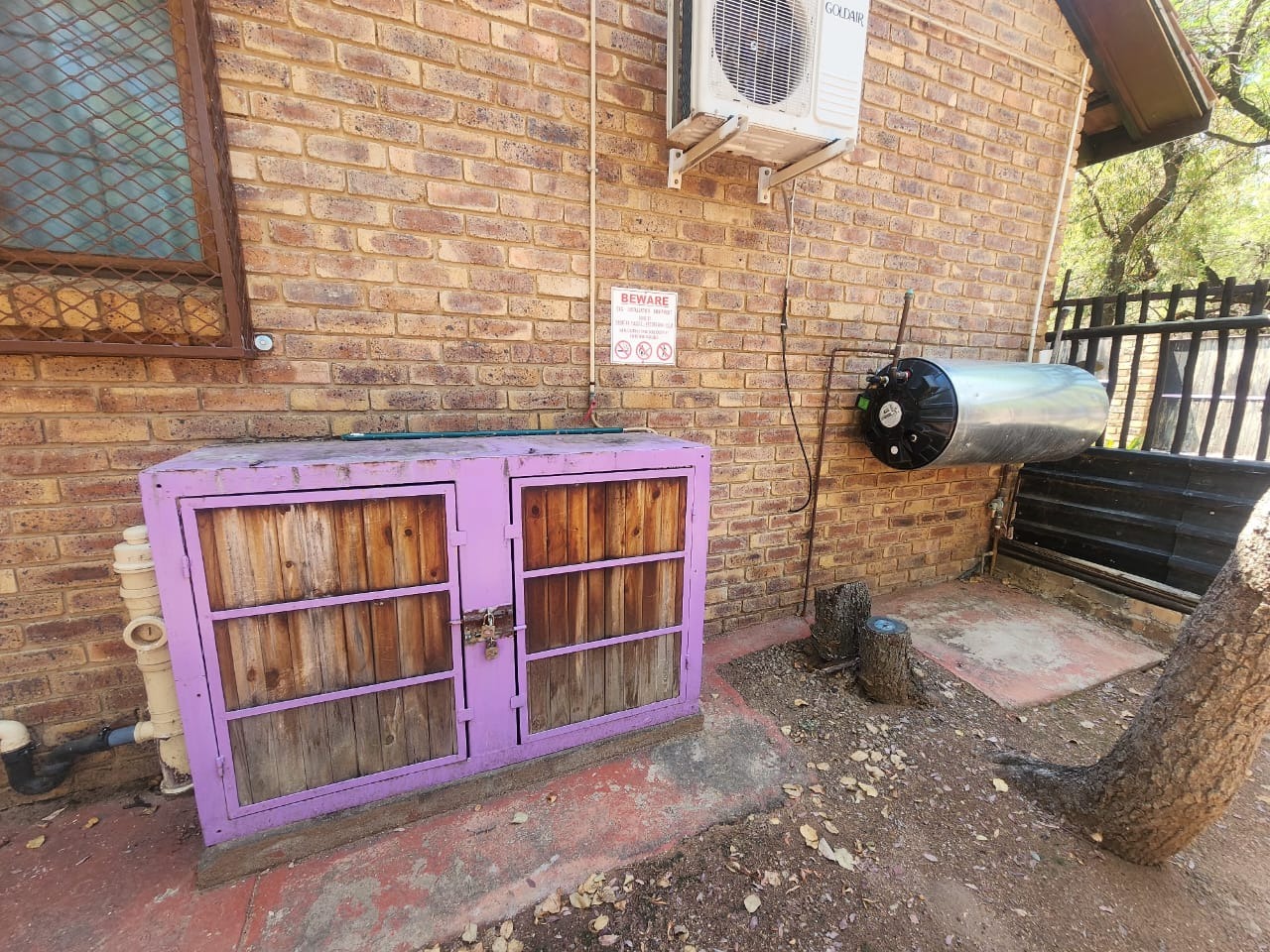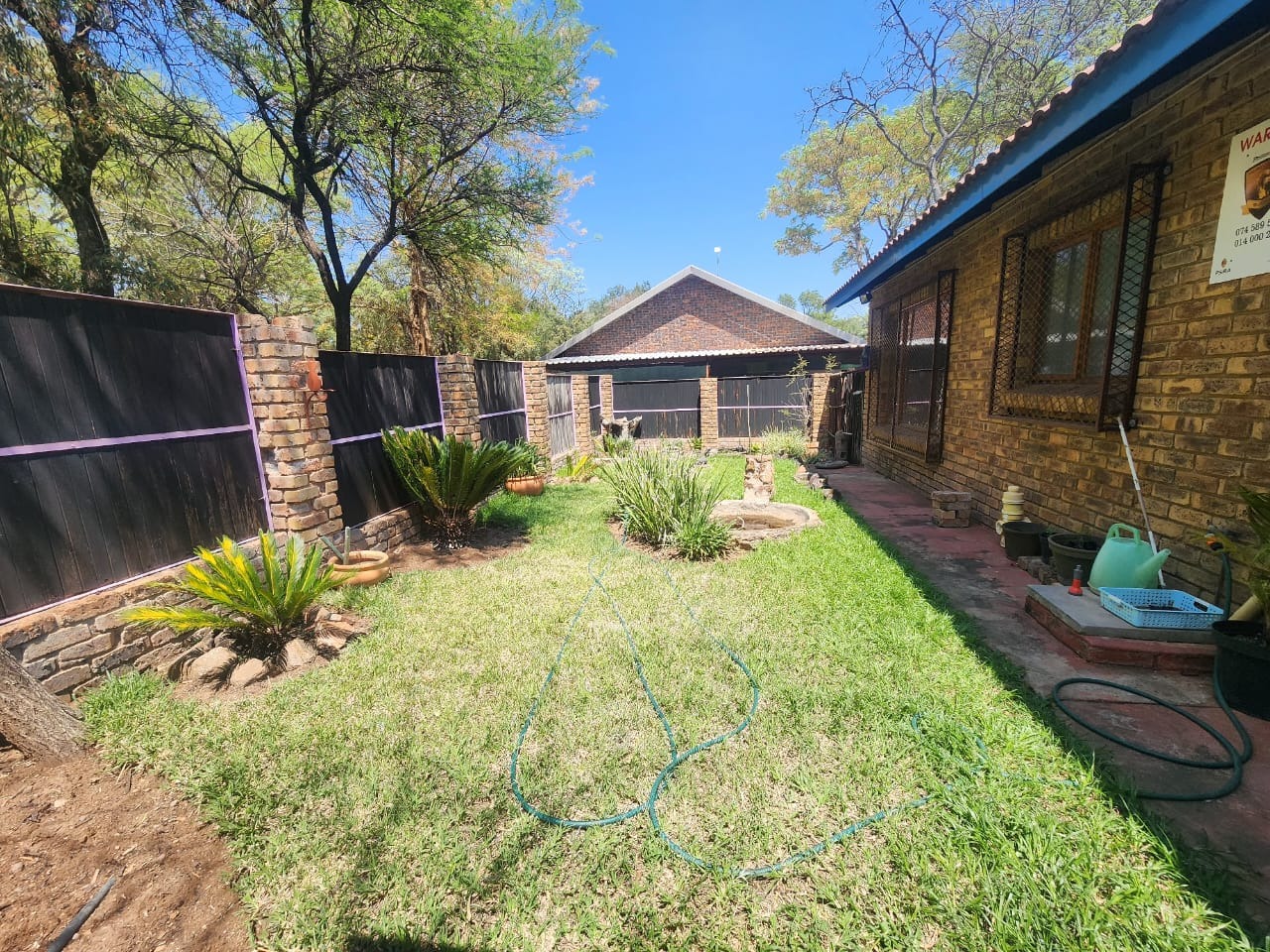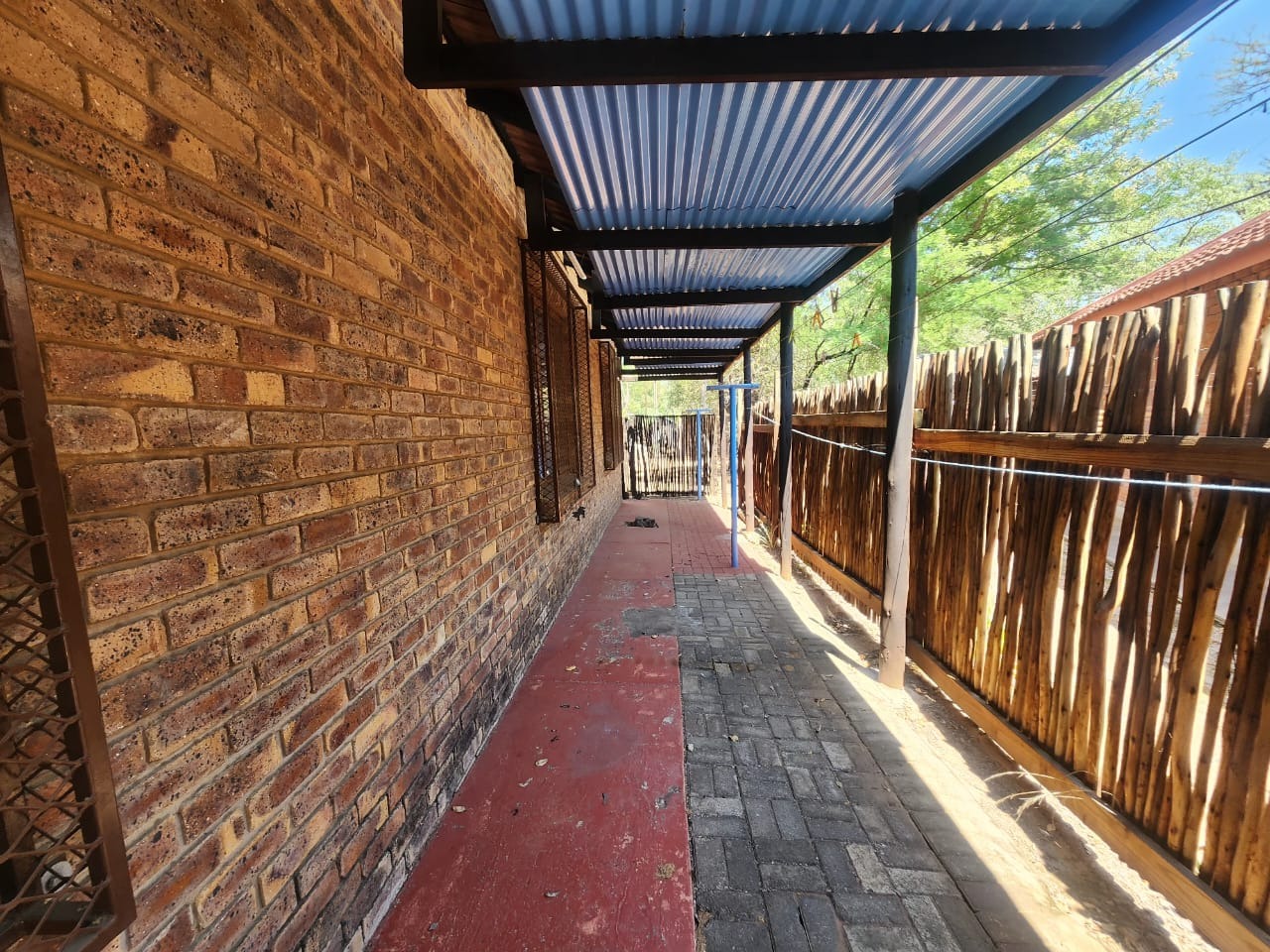Enjoy energy independence with a 5kW Growatt inverter and a 5.12kWh lithium battery, giving you peace of mind. Outside, a well-maintained private garden with lush grass, a Wendy house, a wooden fence with a gate, and a carport for two cars completes this charming bushveld retreat.