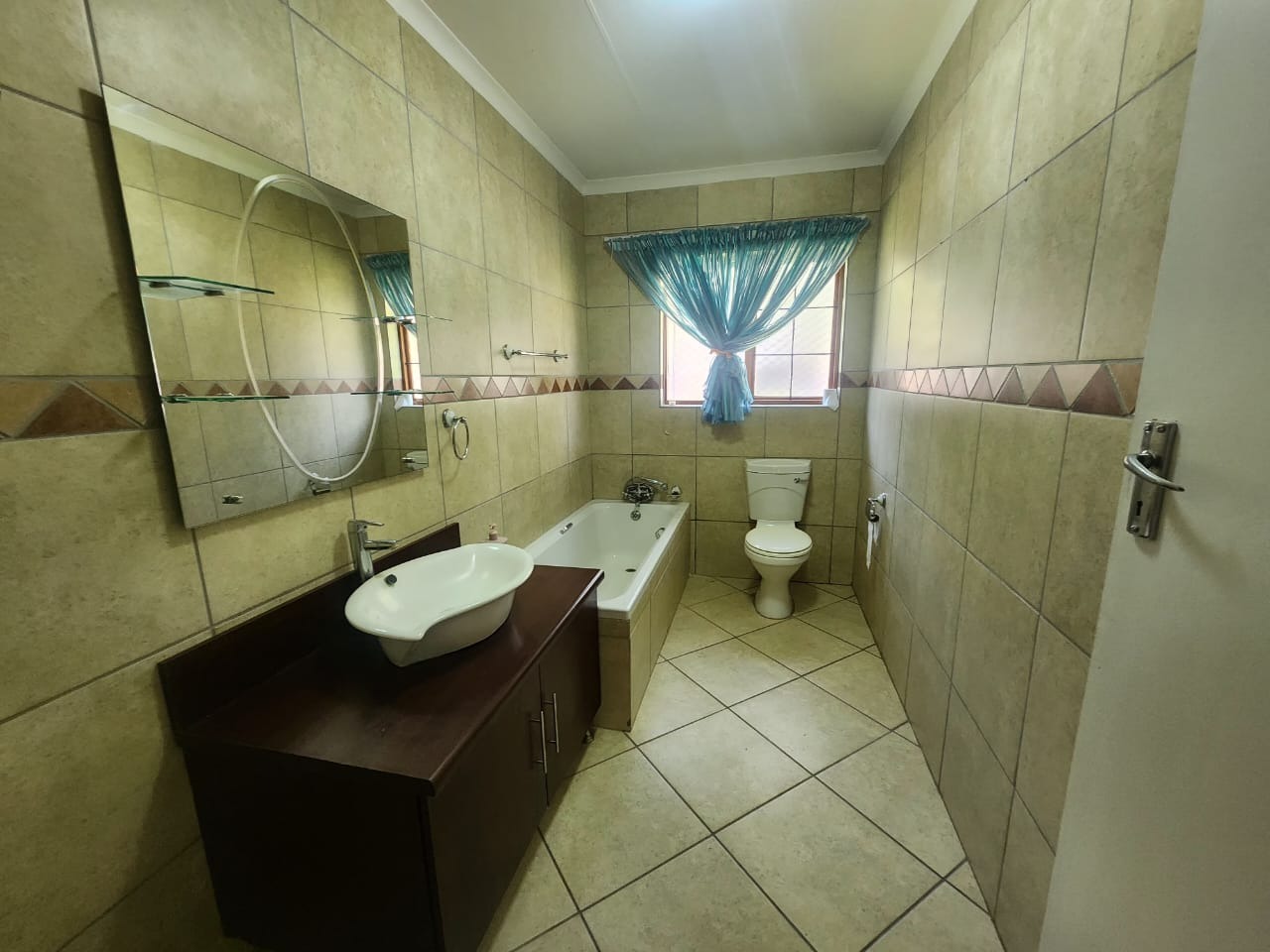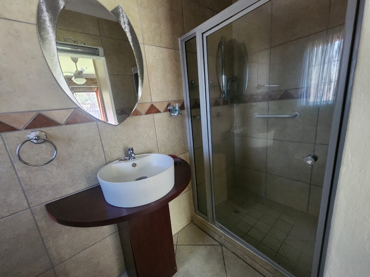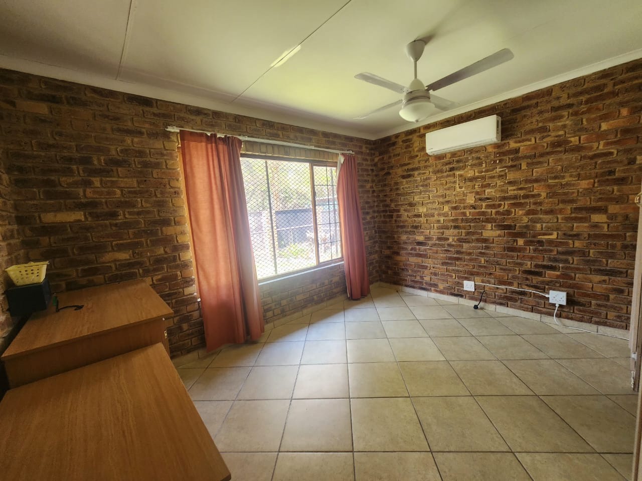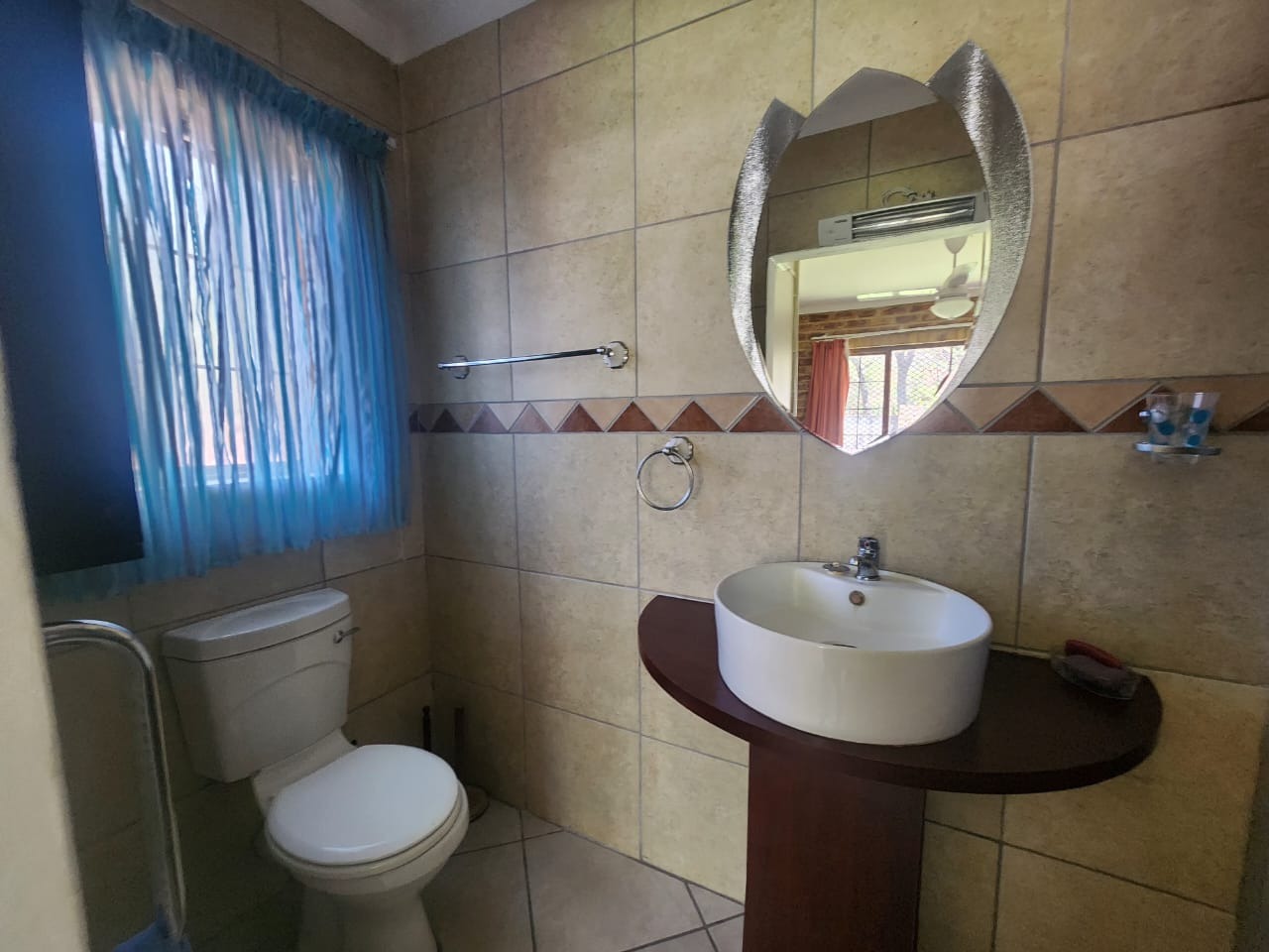 Enjoy energy independence with a 5kW Growatt inverter and a 5.12kWh lithium battery, giving you peace of mind. Outside, a well-maintained private garden with lush grass, a Wendy house, a wooden fence with a gate, and a carport for two cars completes this charming bushveld retreat.