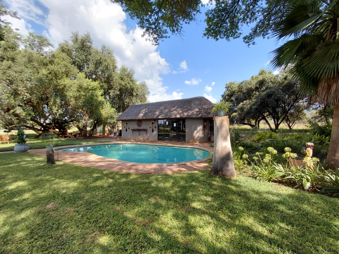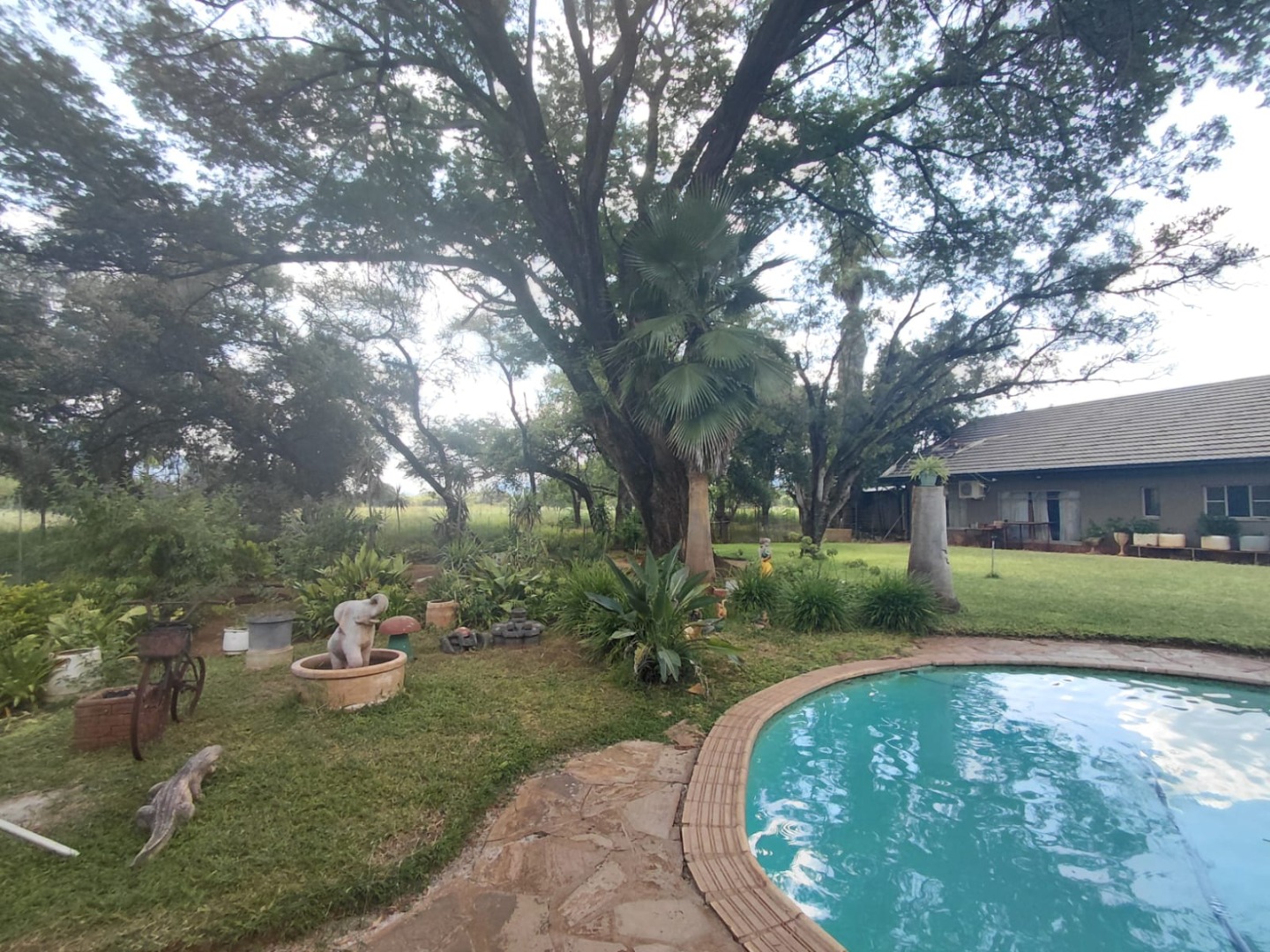 Additional highlights include a sparkling swimming pool with a pool house and bathroom, ample carports, staff quarters, and a versatile storeroom/warehouse. With borehole water, irrigation, and solar power, this property combines luxury living with sustainability.