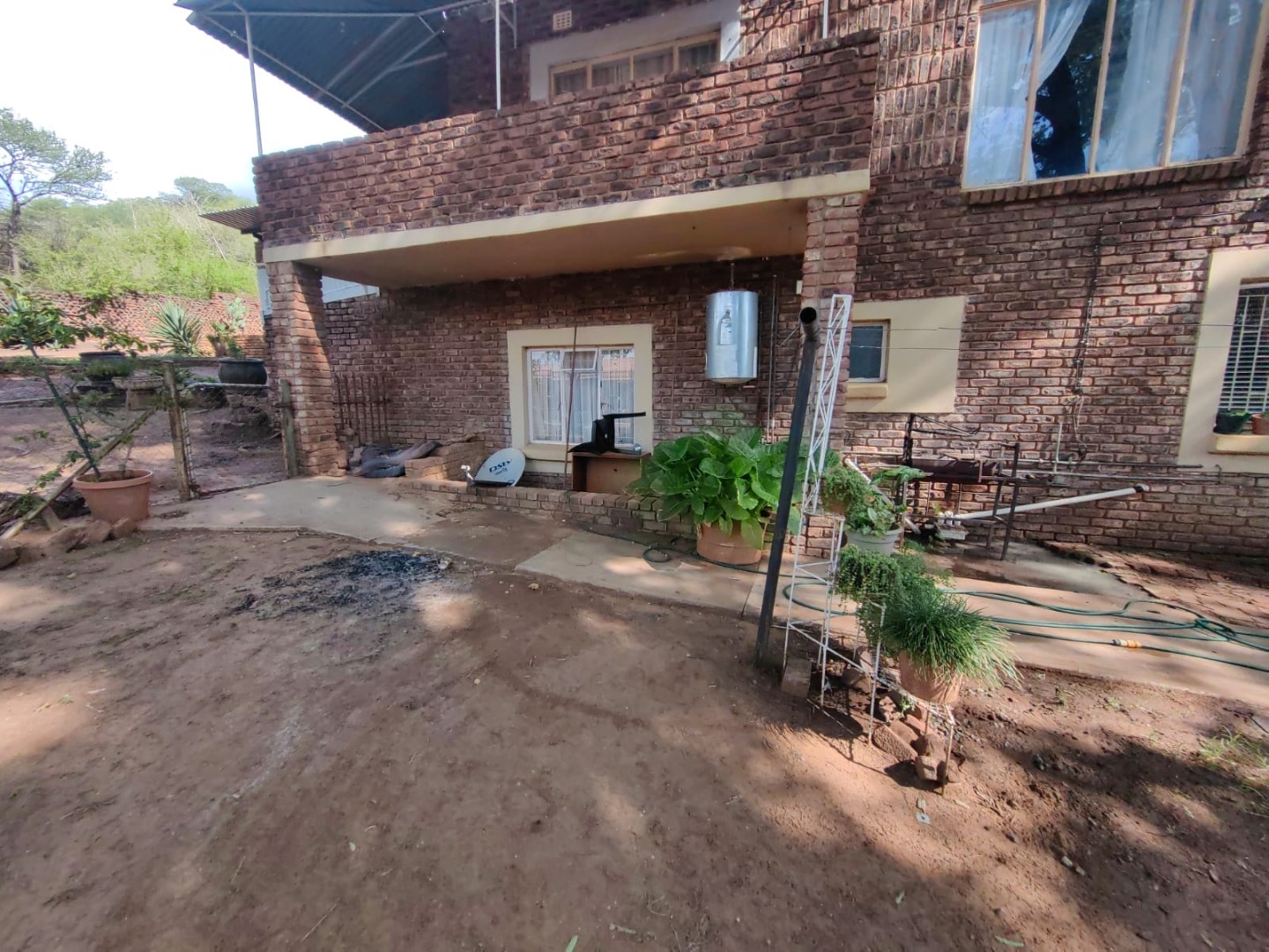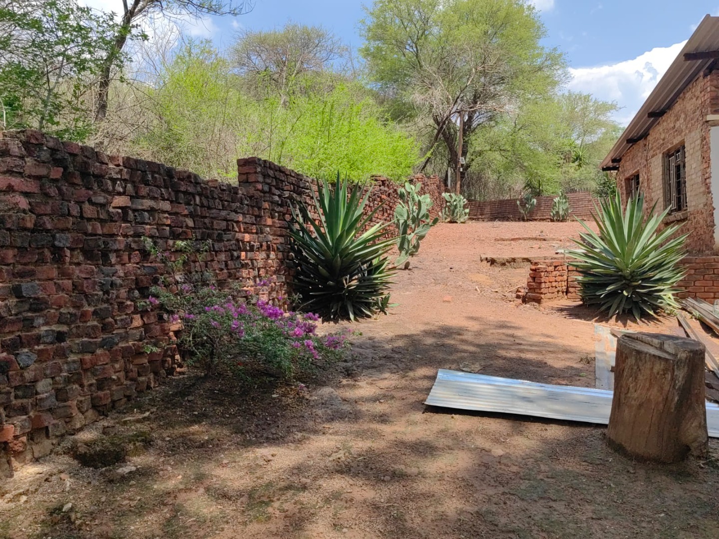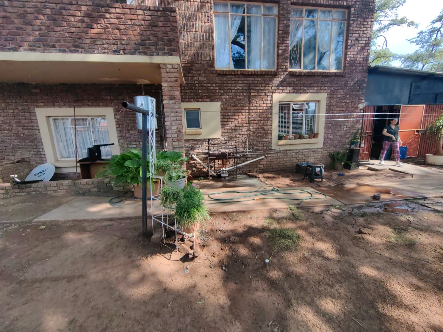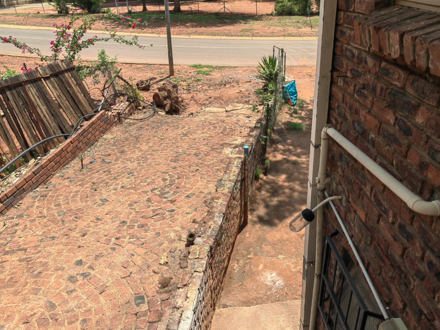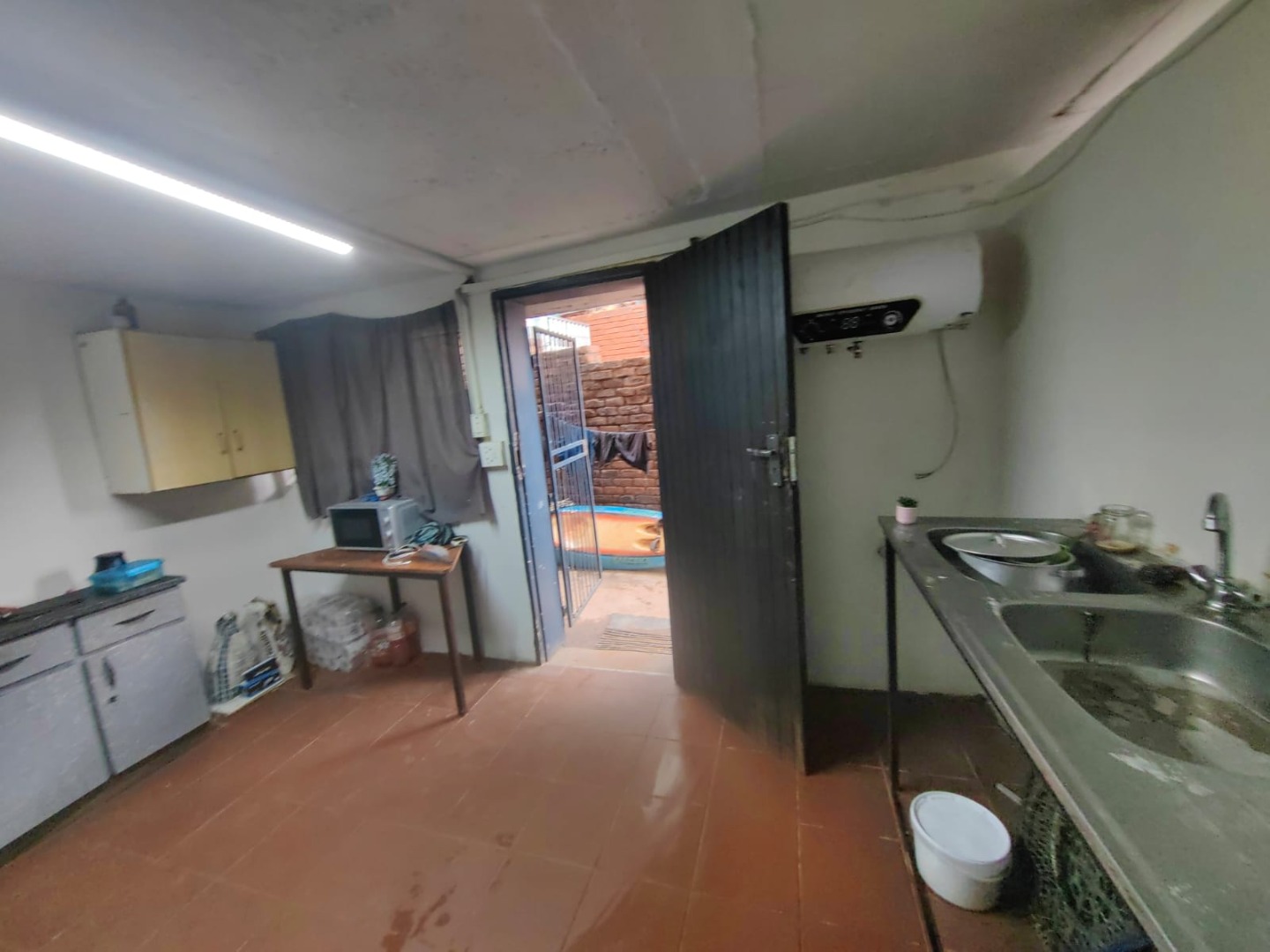 This is a corner stand where the two back sides of the property are walled, and 2 front sides are fenced. Included is a 5000-litter water tank with a pump.