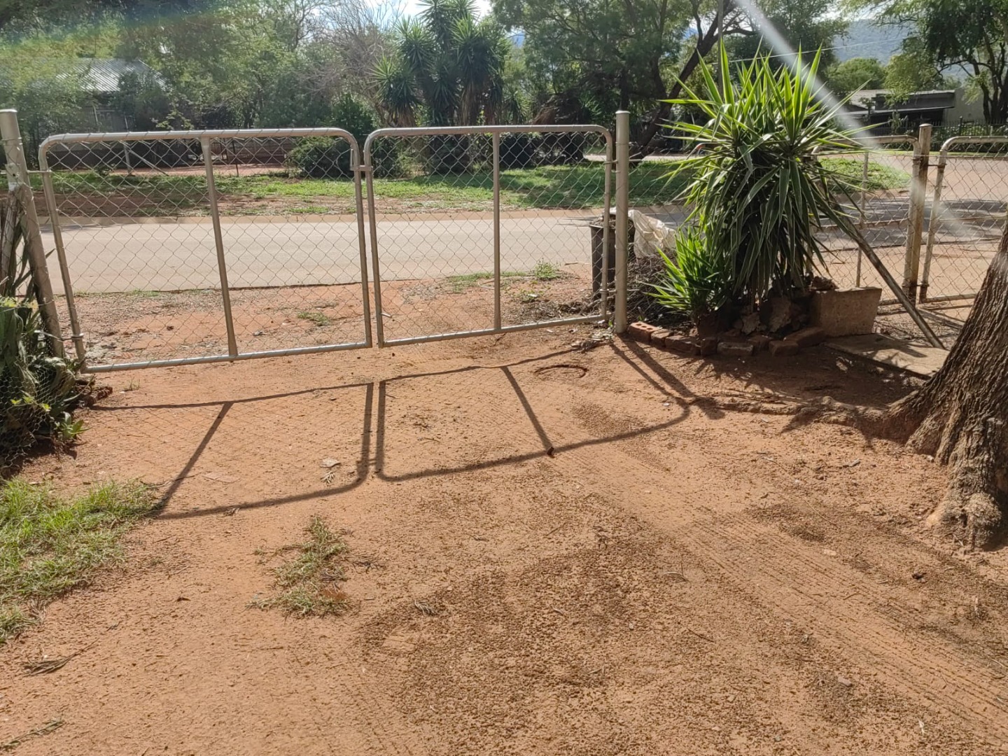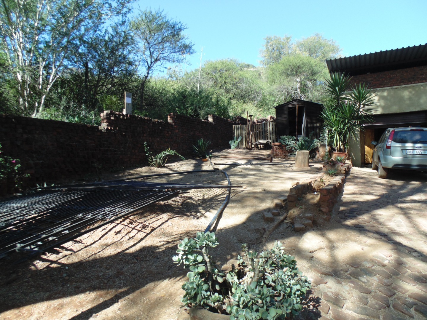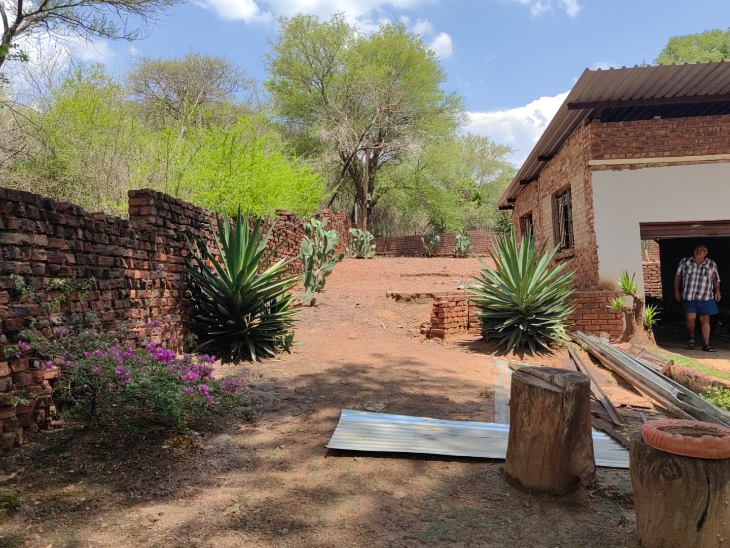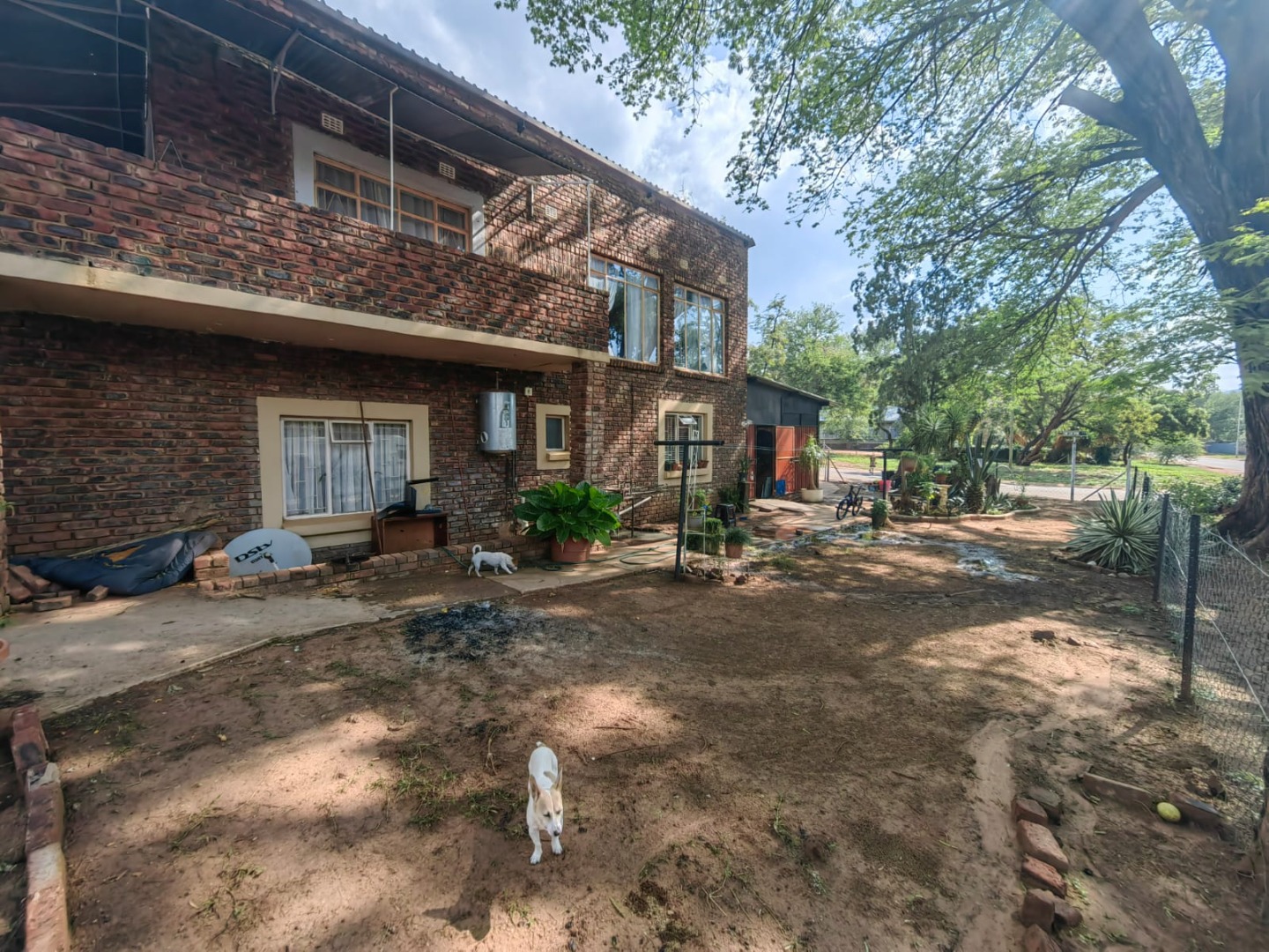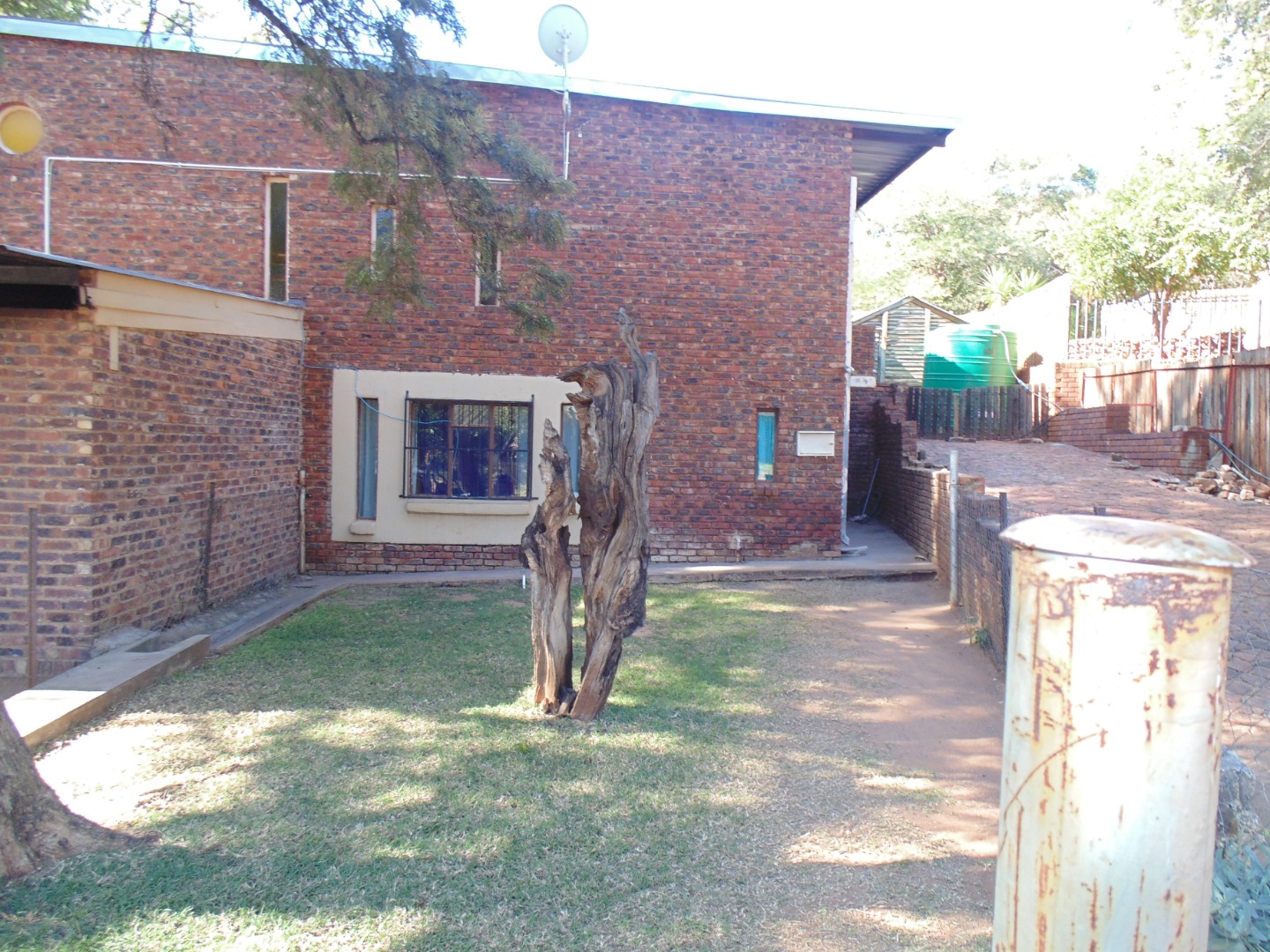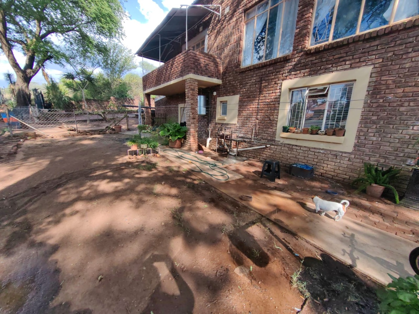 This is a corner stand where the two back sides of the property are walled, and 2 front sides are fenced. Included is a 5000-litter water tank with a pump.
