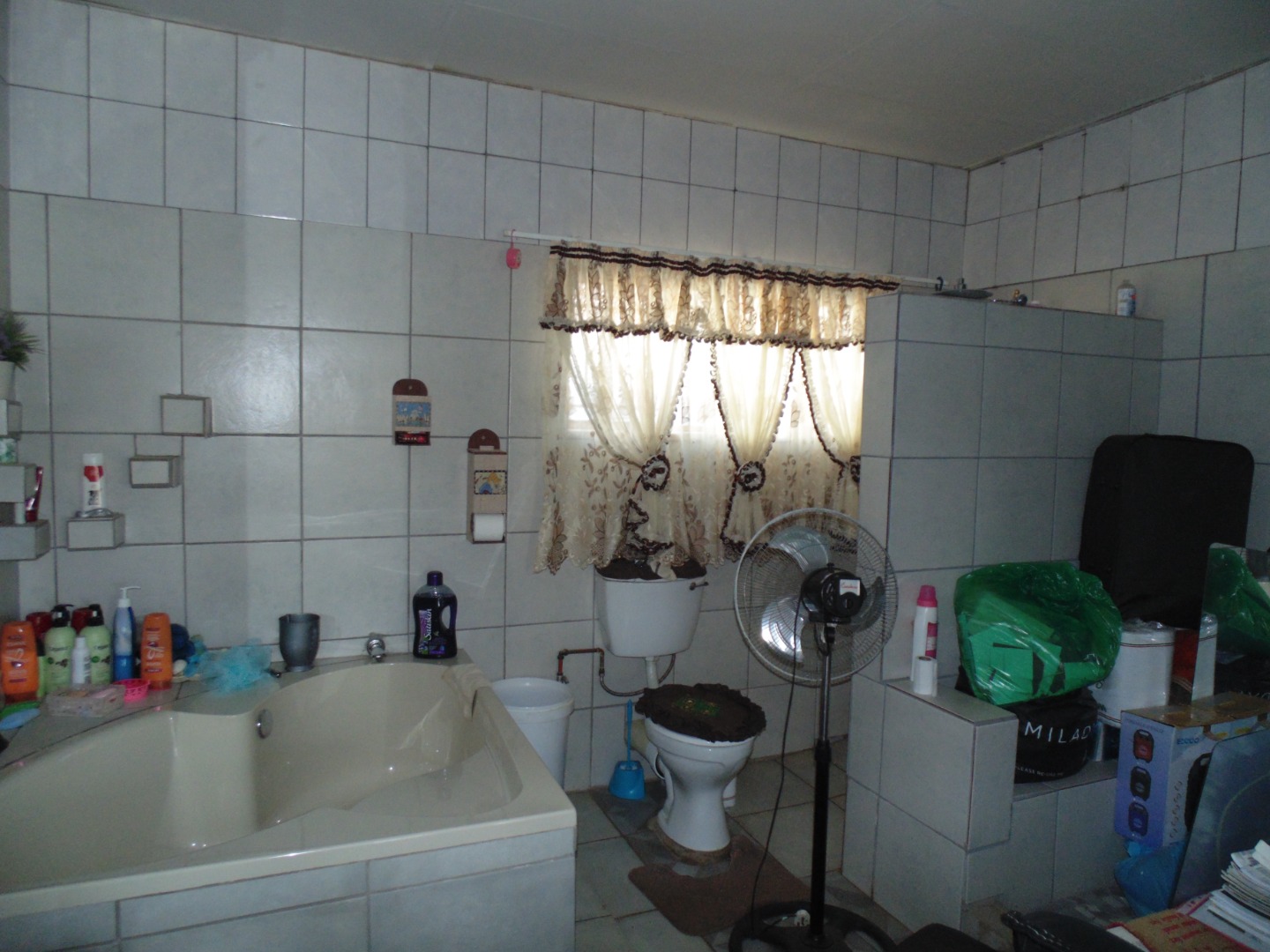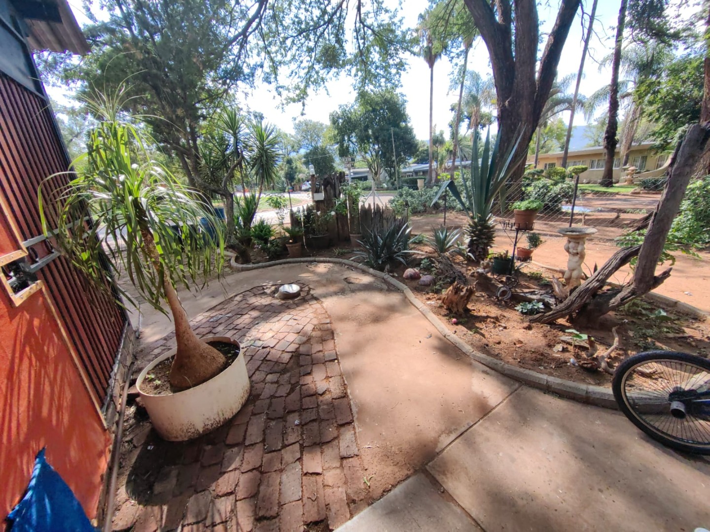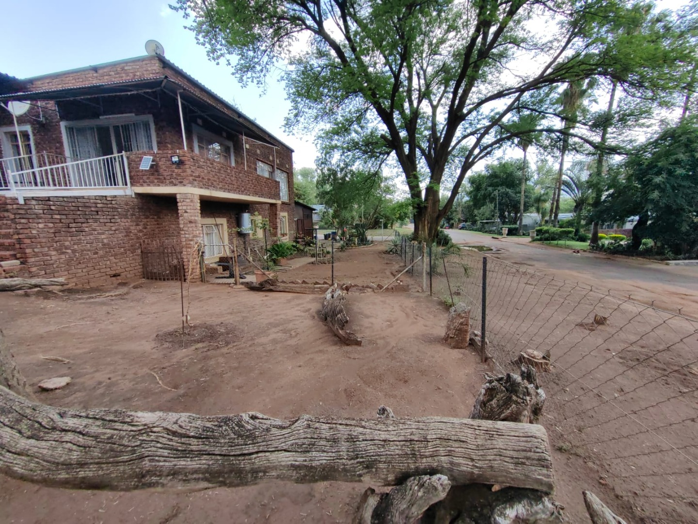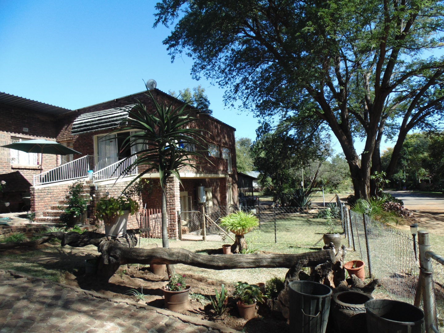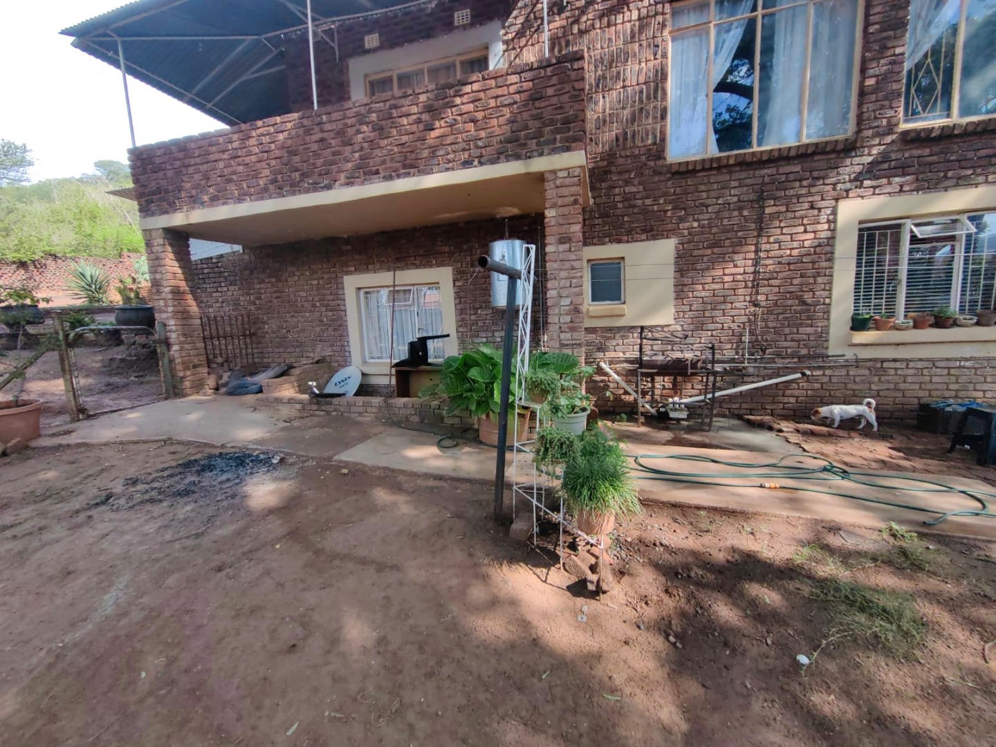 This is a corner stand where the two back sides of the property are walled, and 2 front sides are fenced. Included is a 5000-litter water tank with a pump.