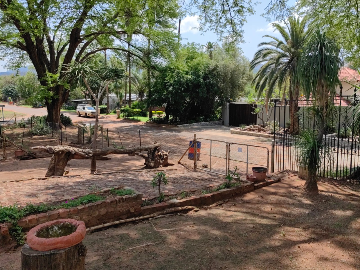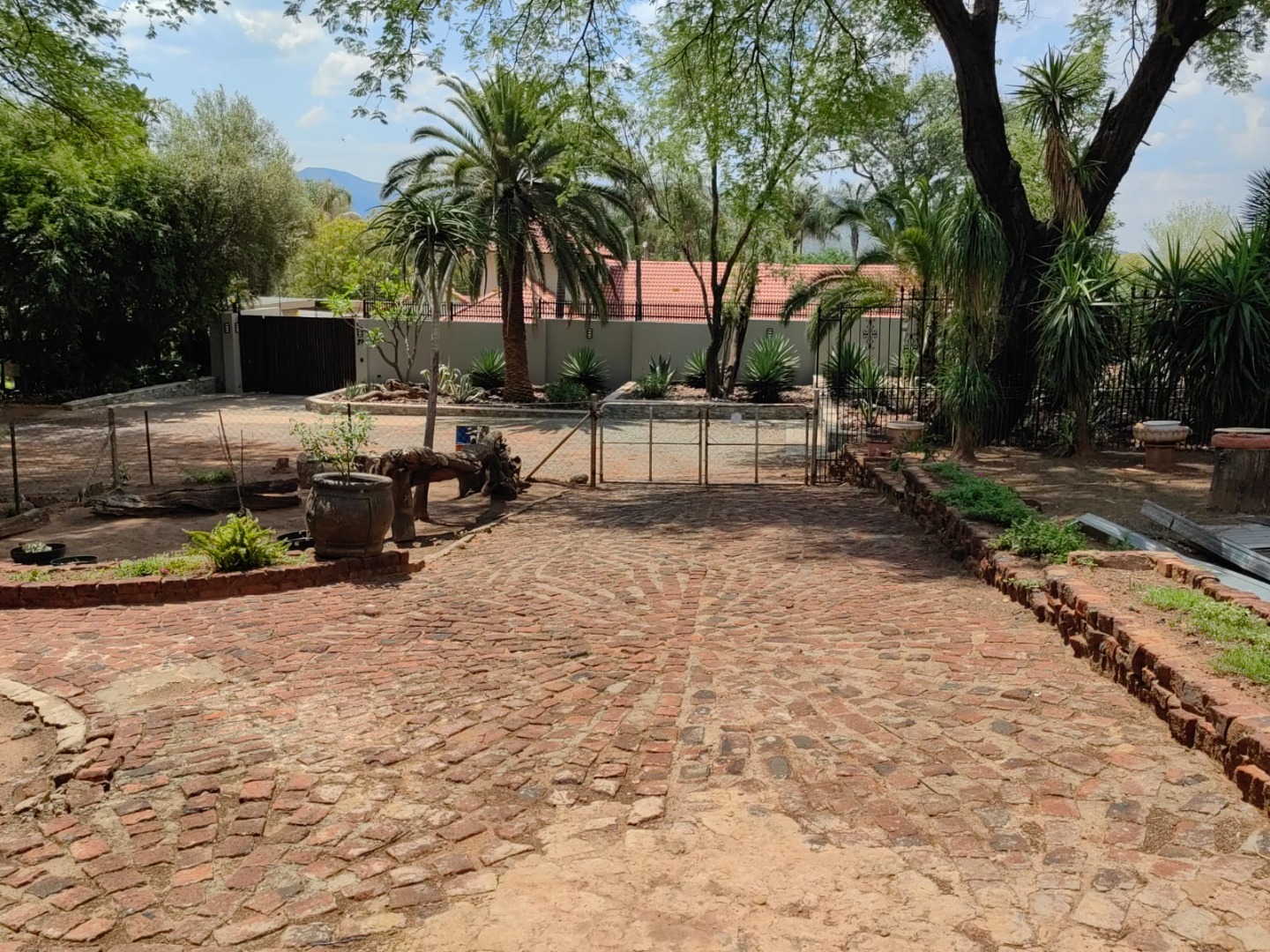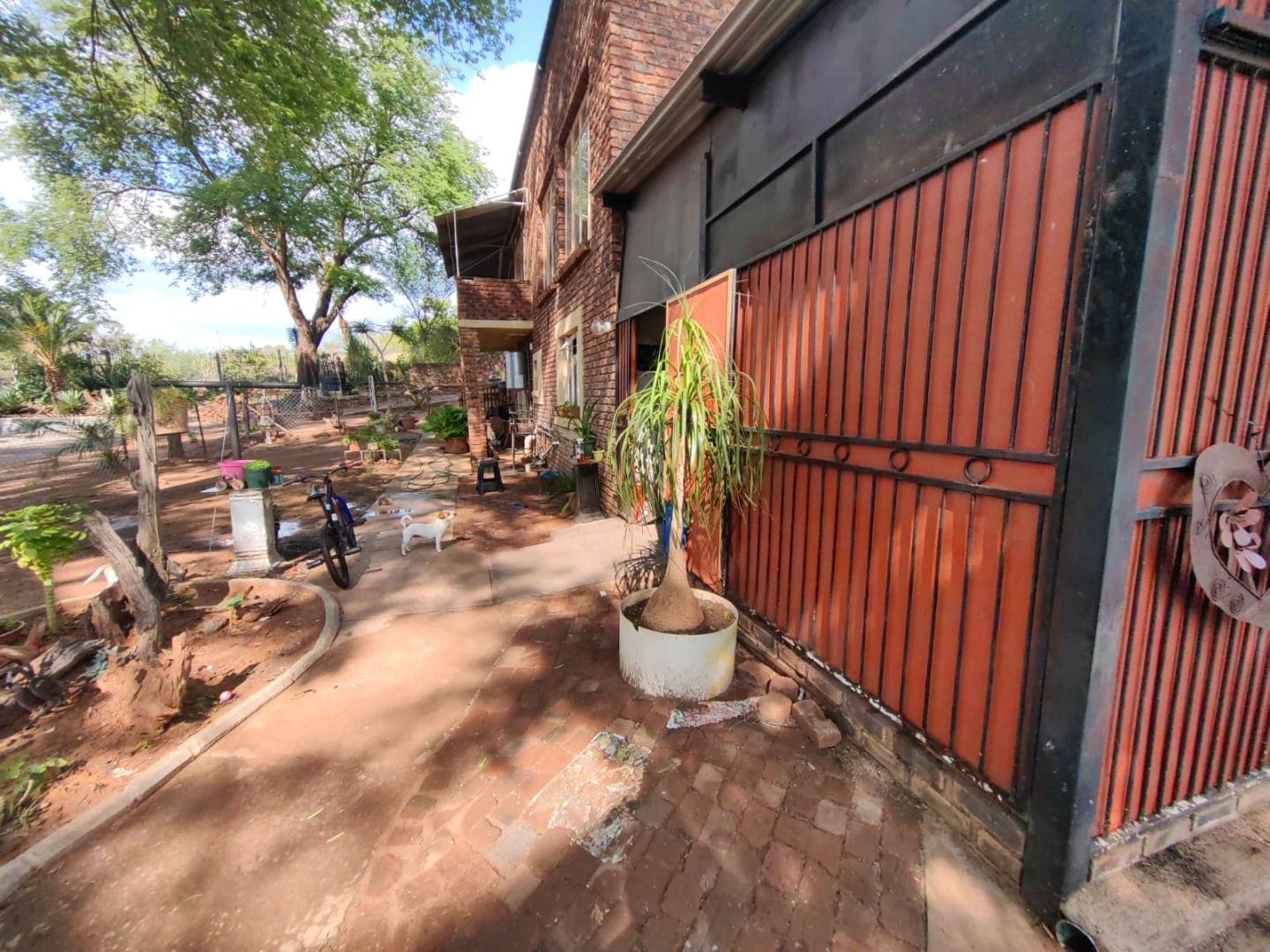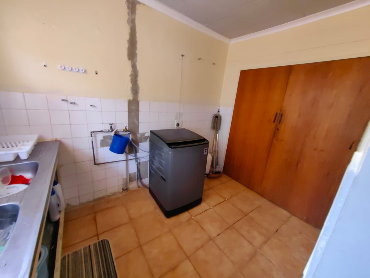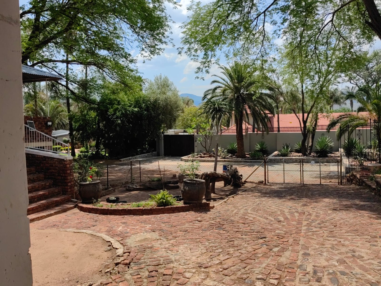 This is a corner stand where the two back sides of the property are walled, and 2 front sides are fenced. Included is a 5000-litter water tank with a pump.
