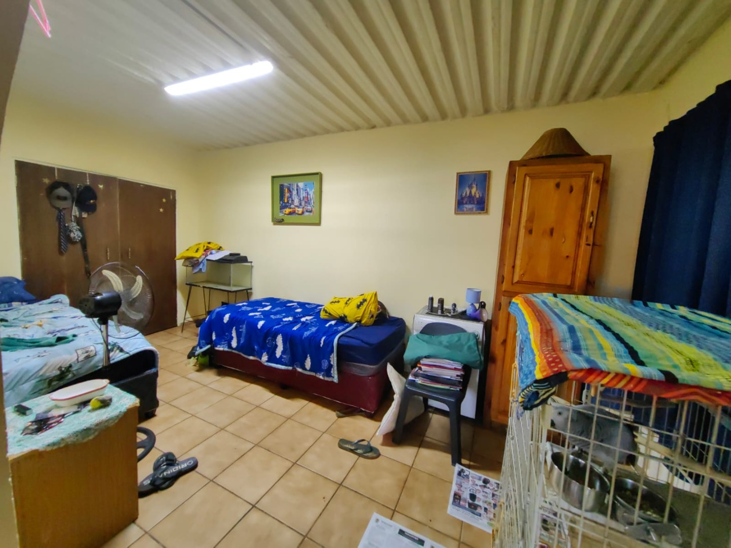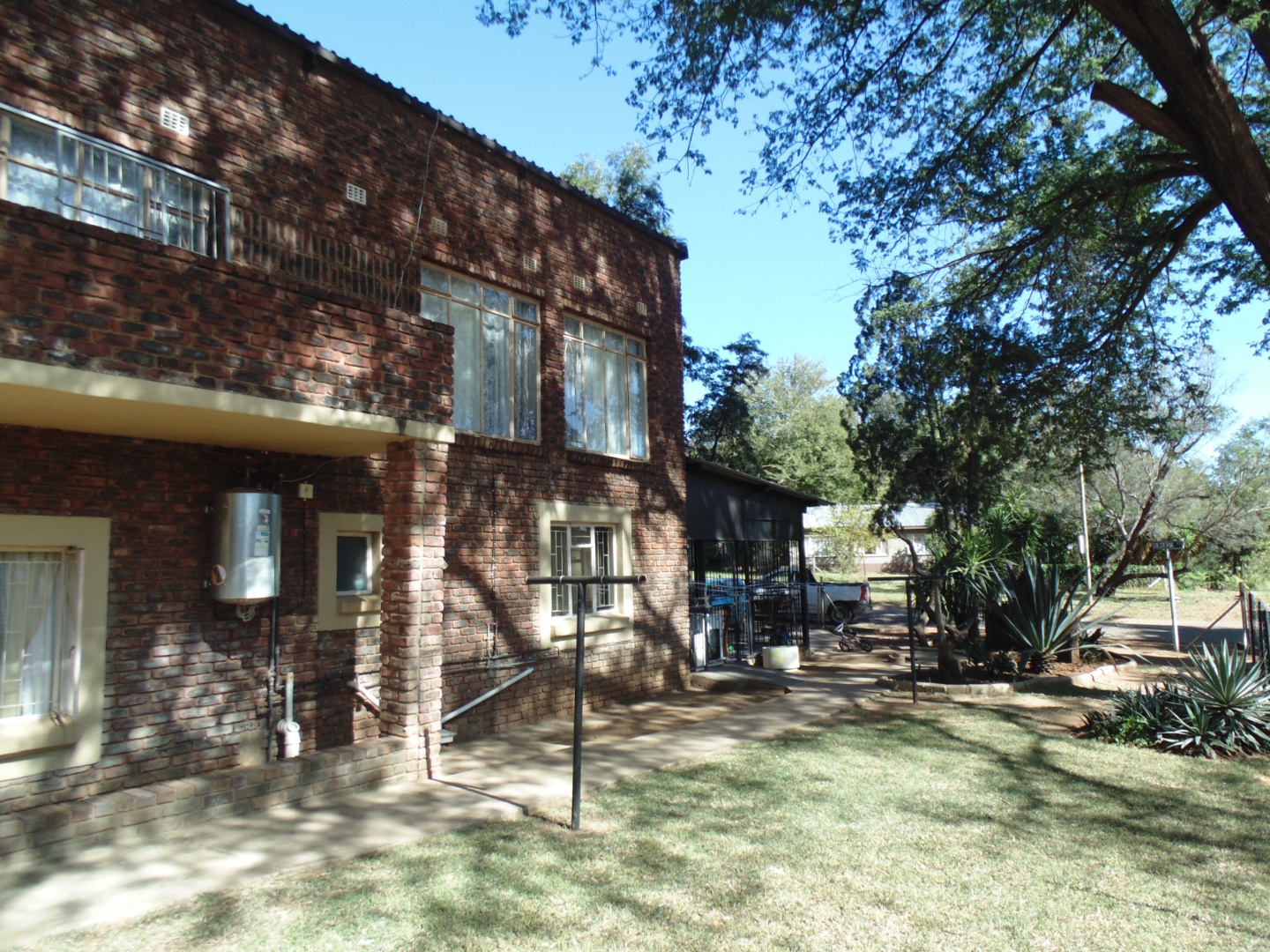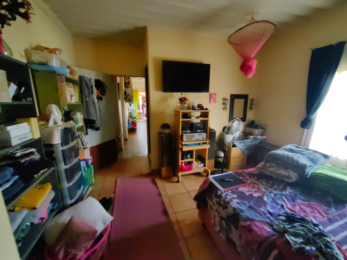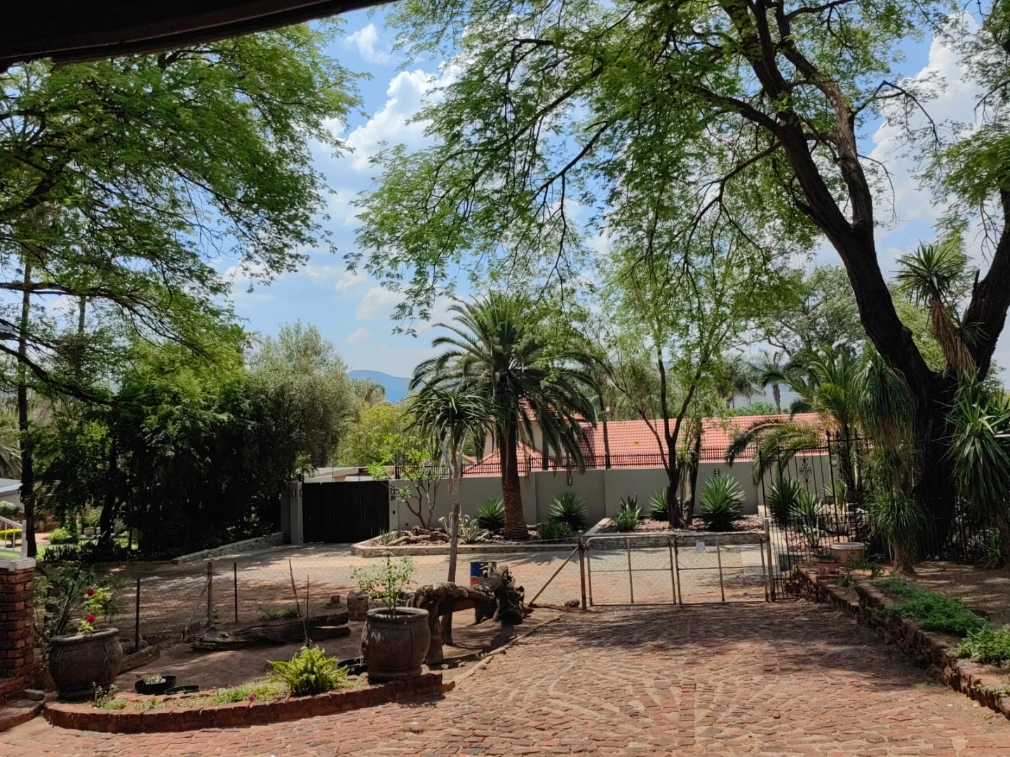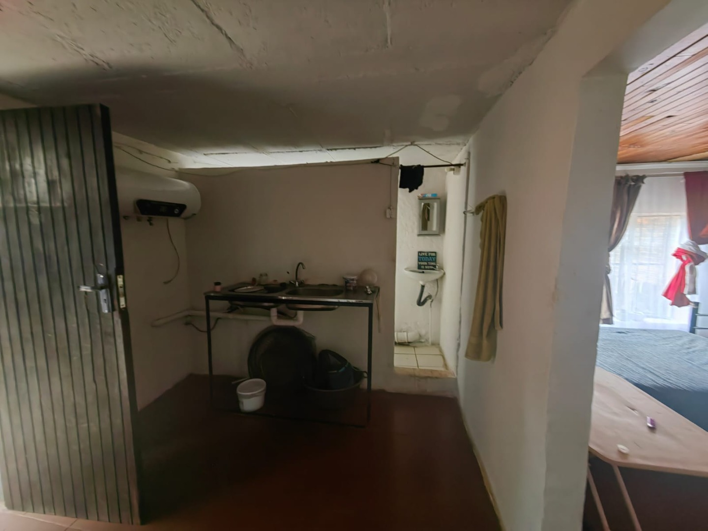 This is a corner stand where the two back sides of the property are walled, and 2 front sides are fenced. Included is a 5000-litter water tank with a pump.