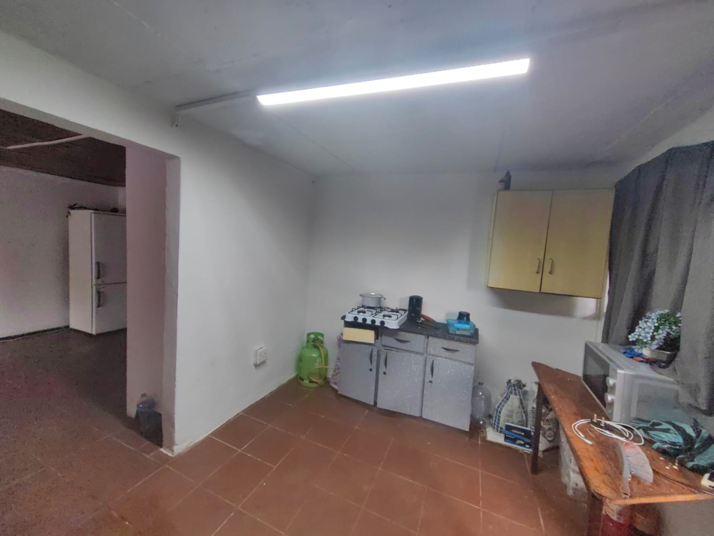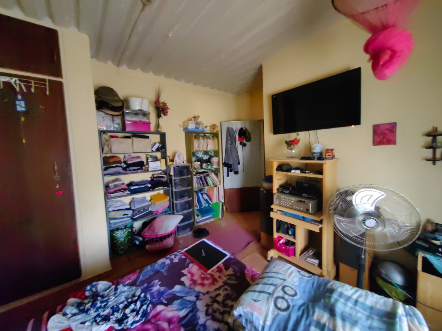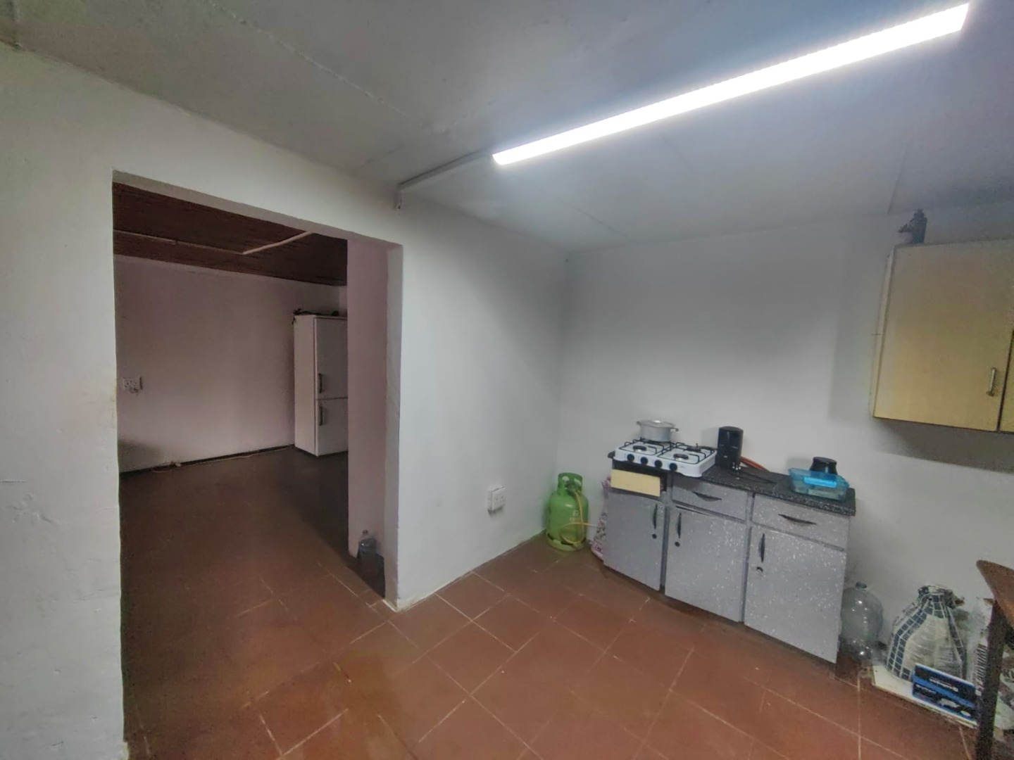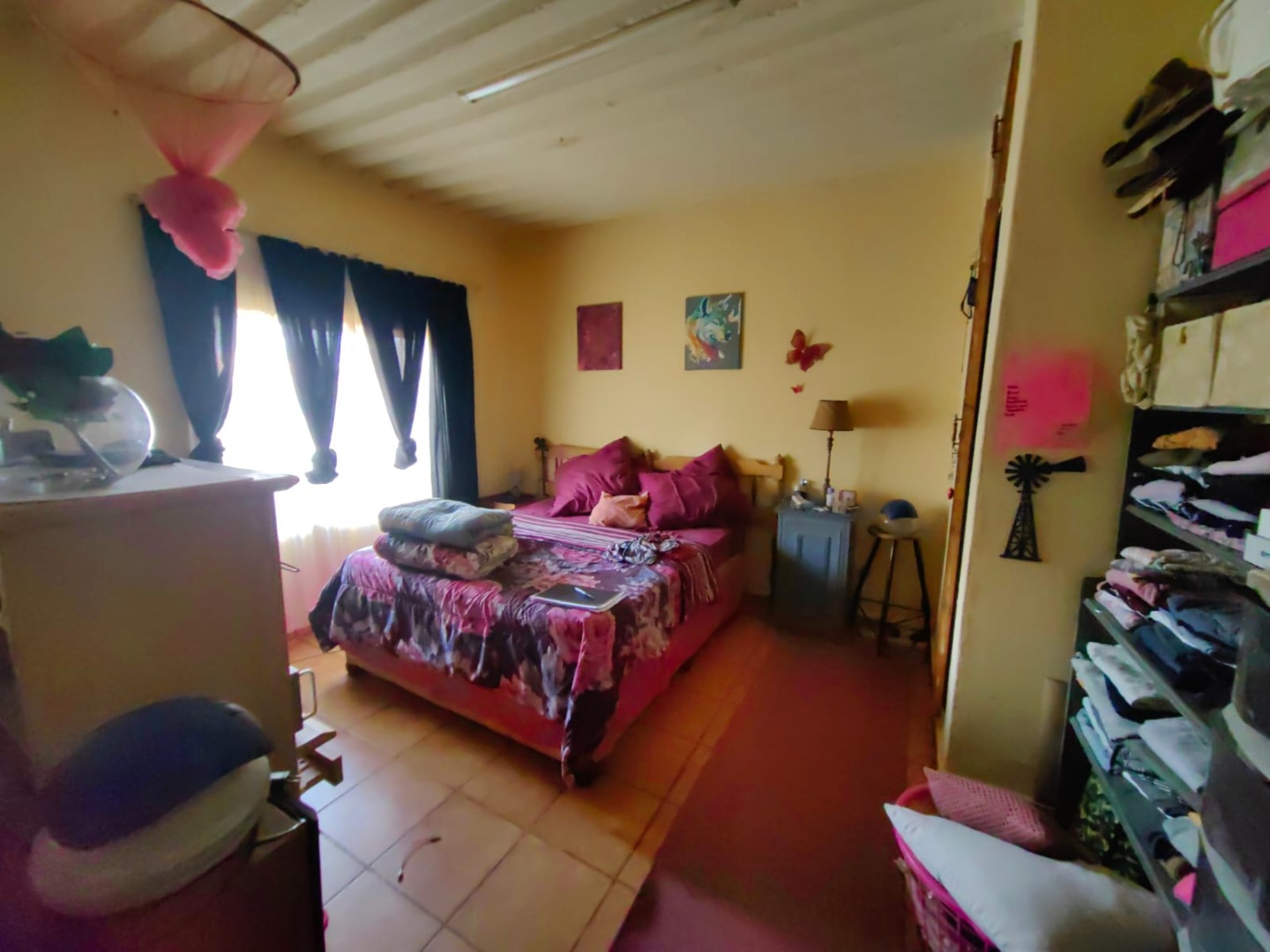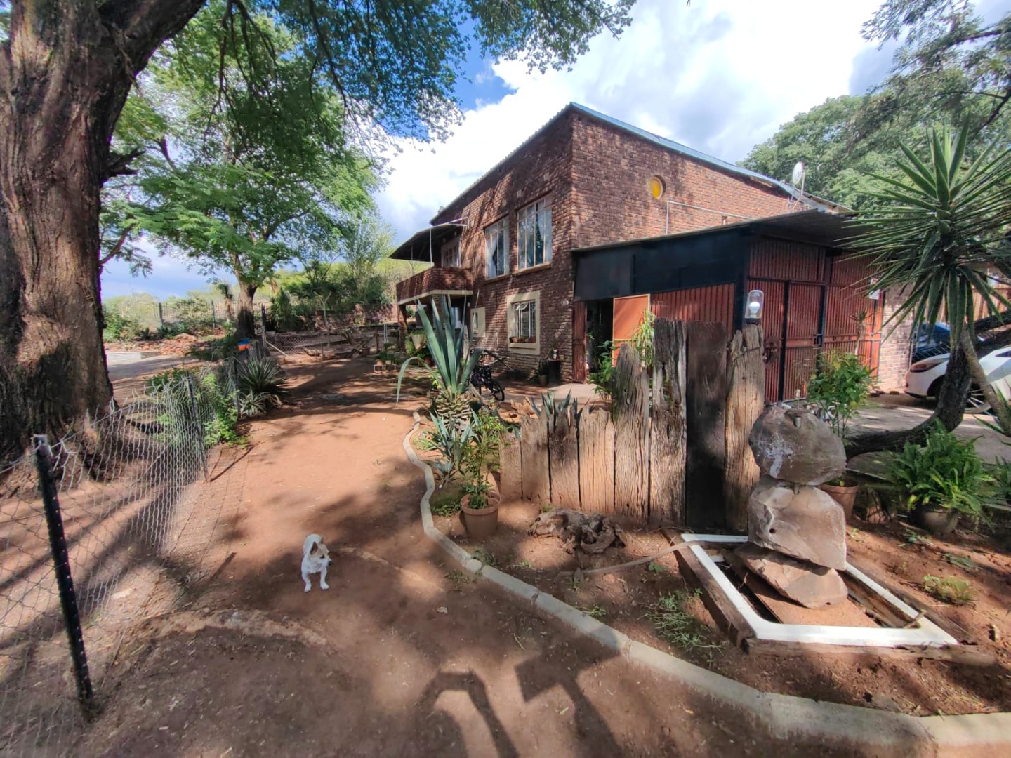 This is a corner stand where the two back sides of the property are walled, and 2 front sides are fenced. Included is a 5000-litter water tank with a pump.
