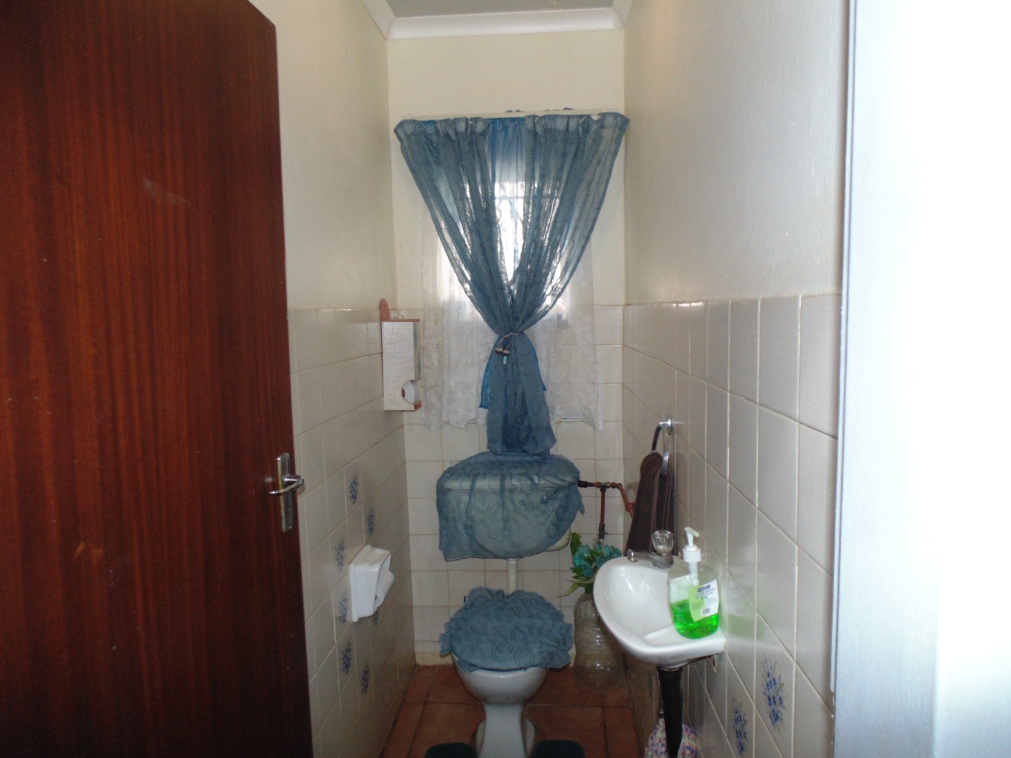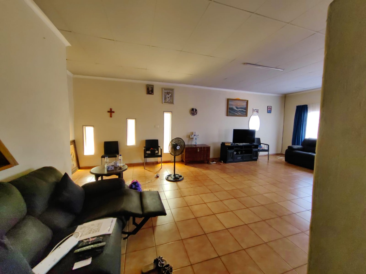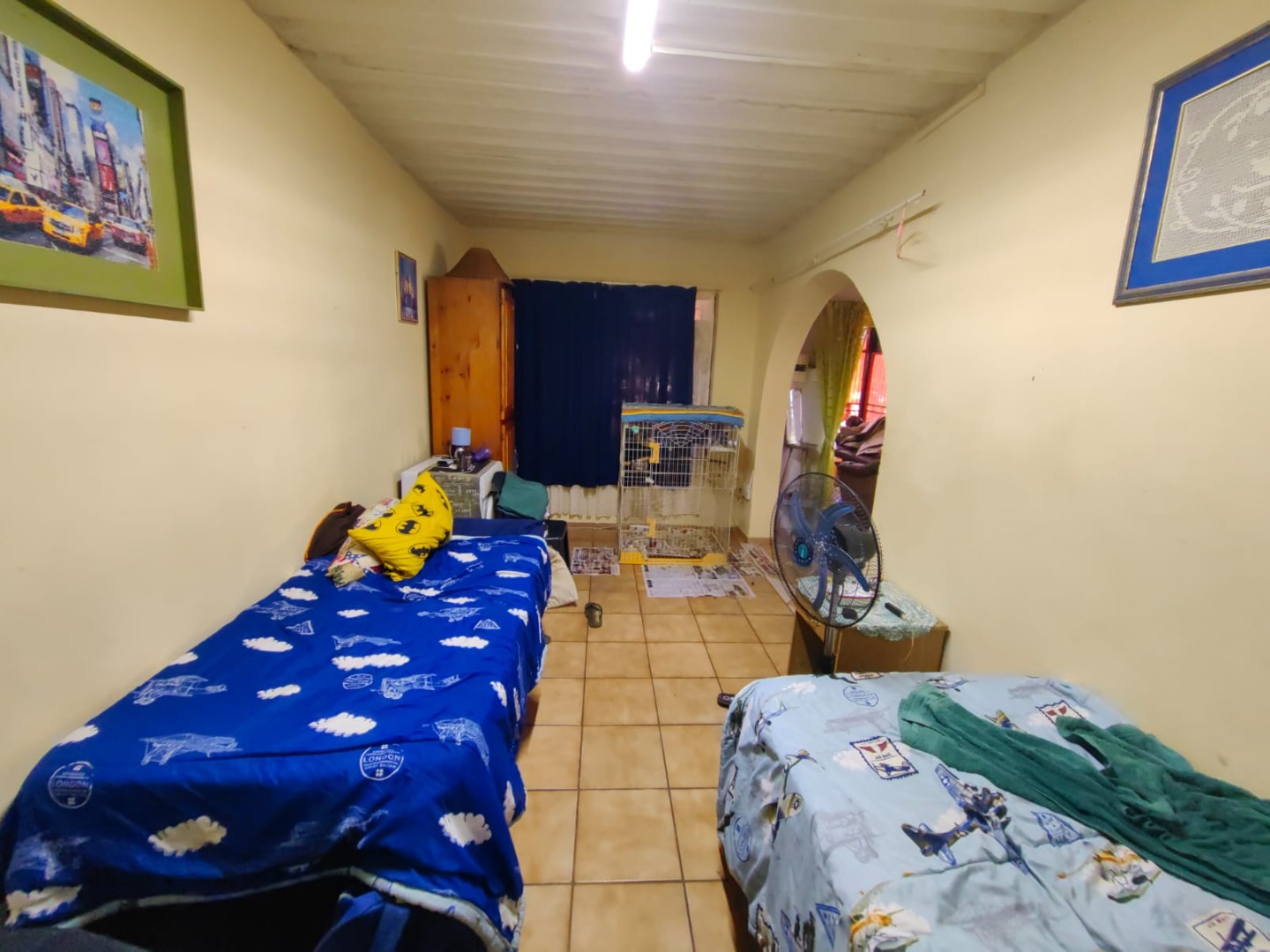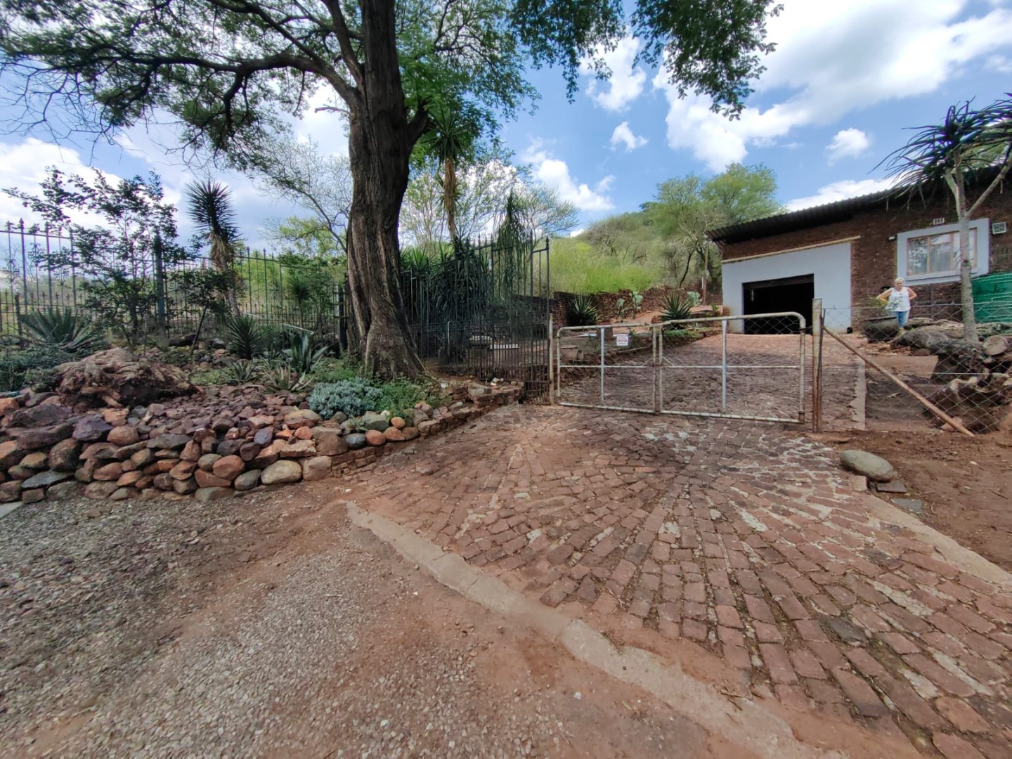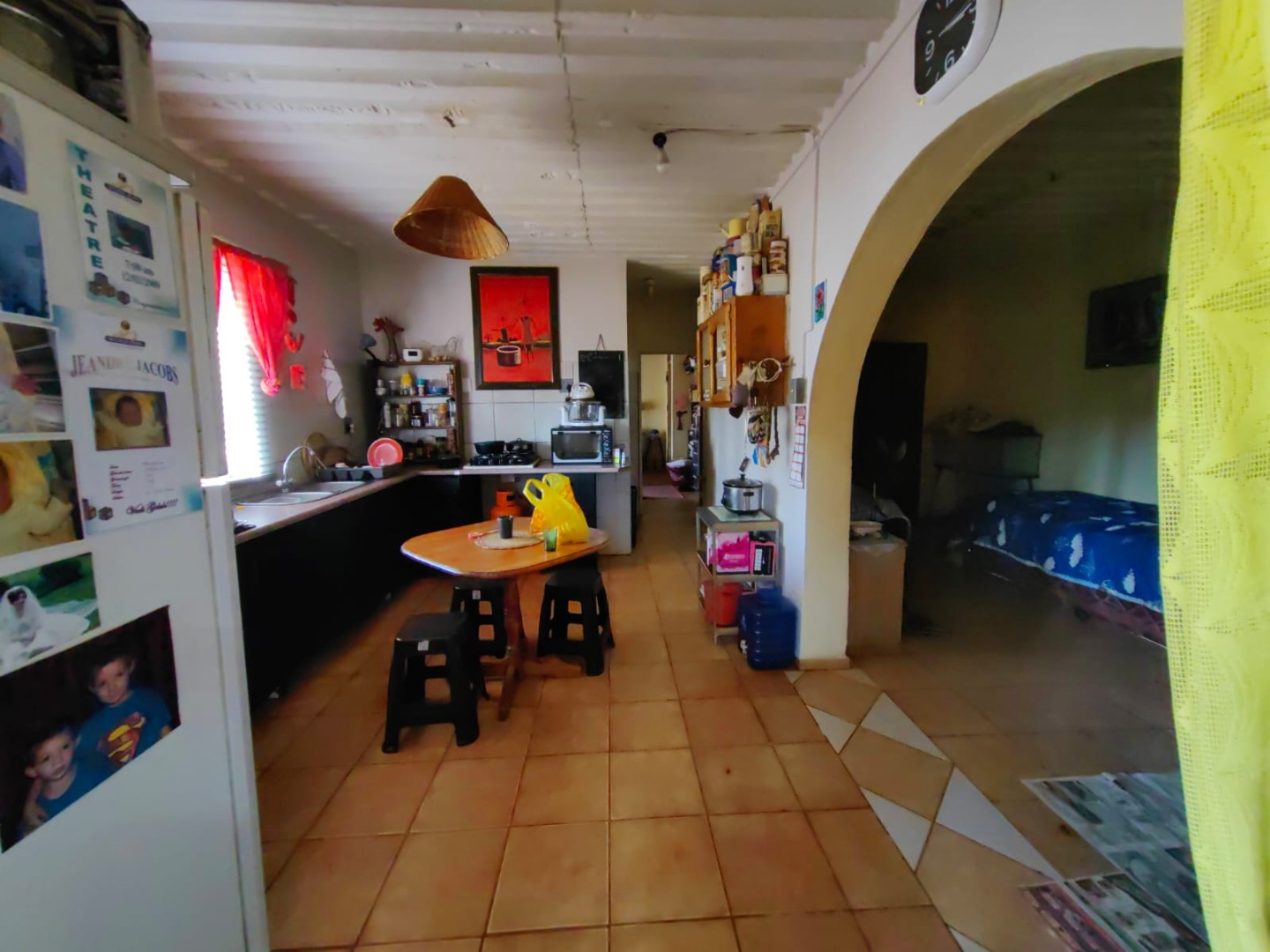 This is a corner stand where the two back sides of the property are walled, and 2 front sides are fenced. Included is a 5000-litter water tank with a pump.
