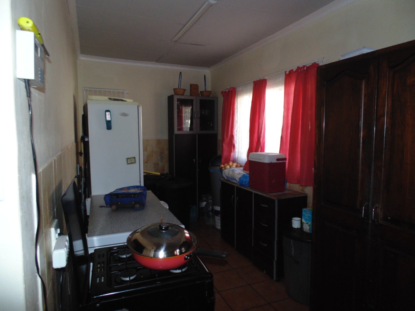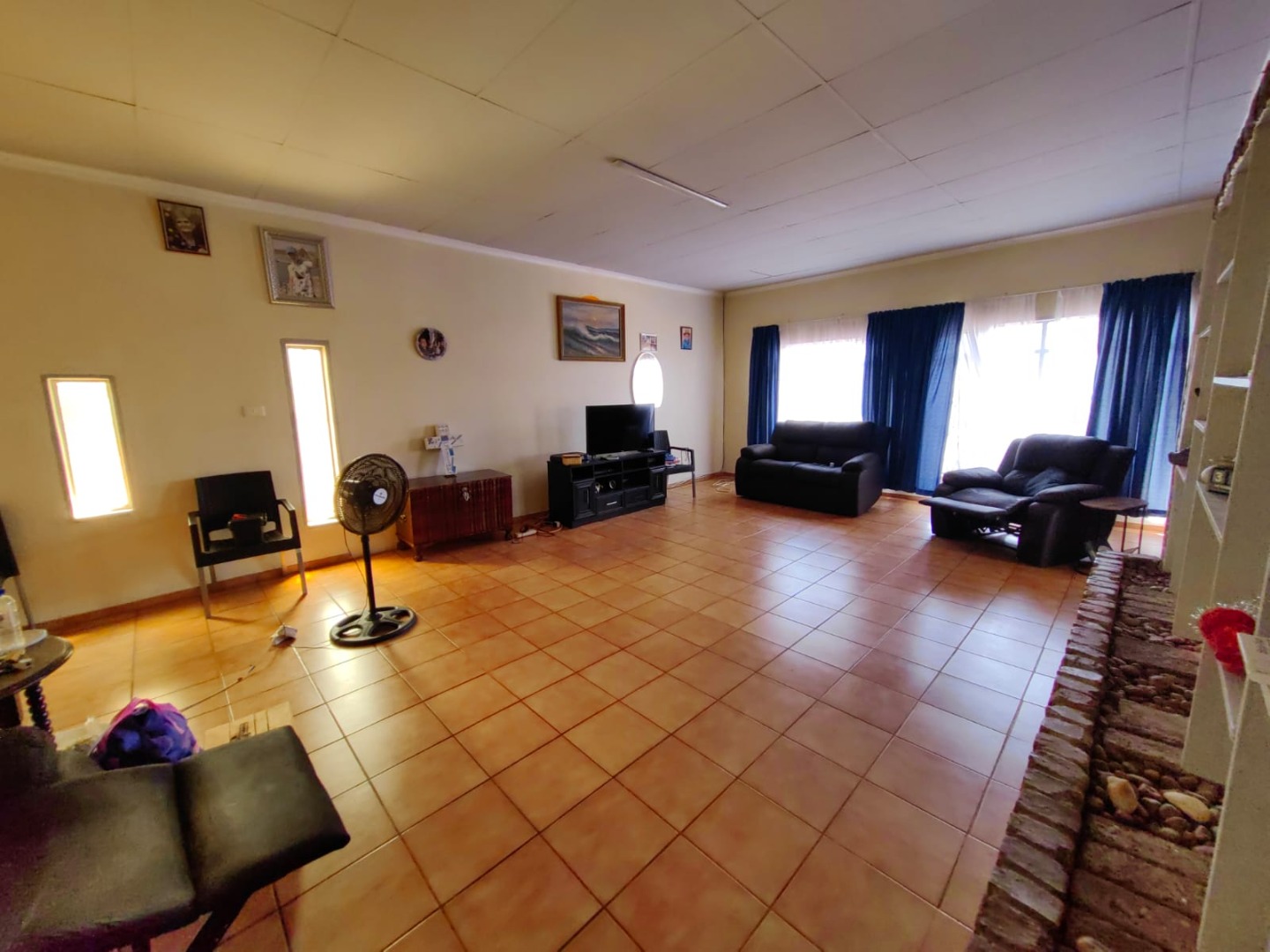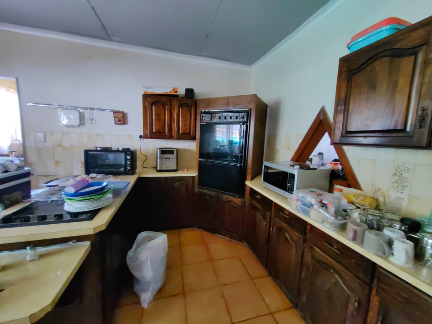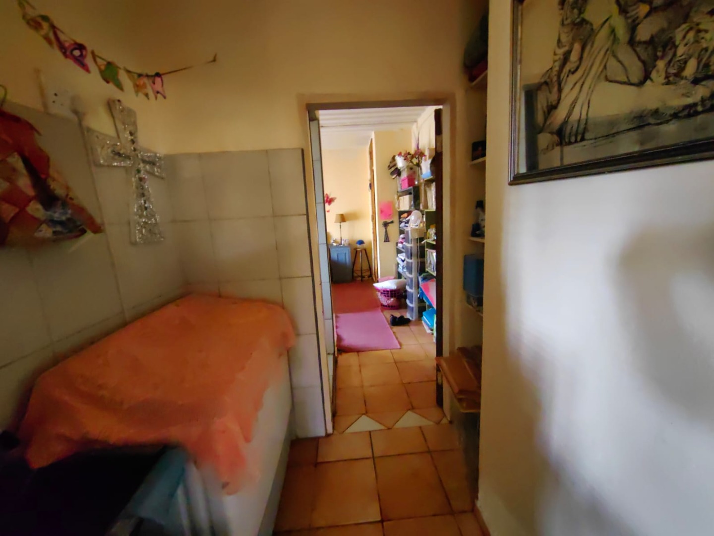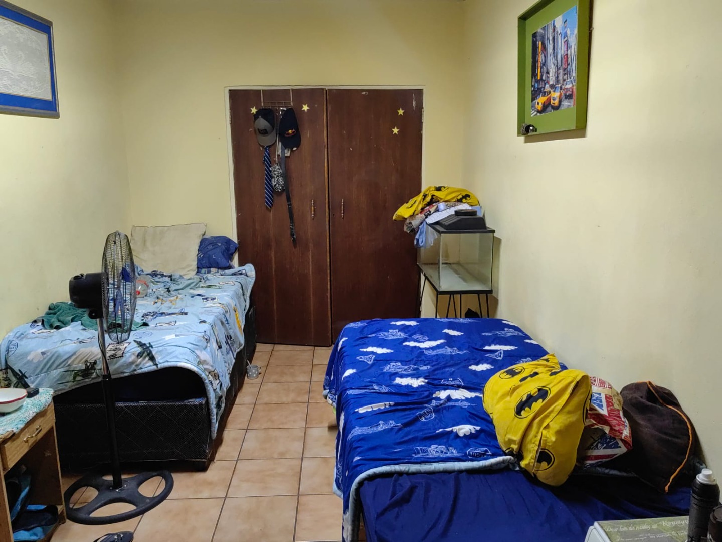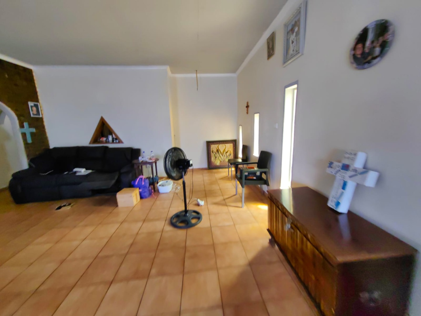 This is a corner stand where the two back sides of the property are walled, and 2 front sides are fenced. Included is a 5000-litter water tank with a pump.
