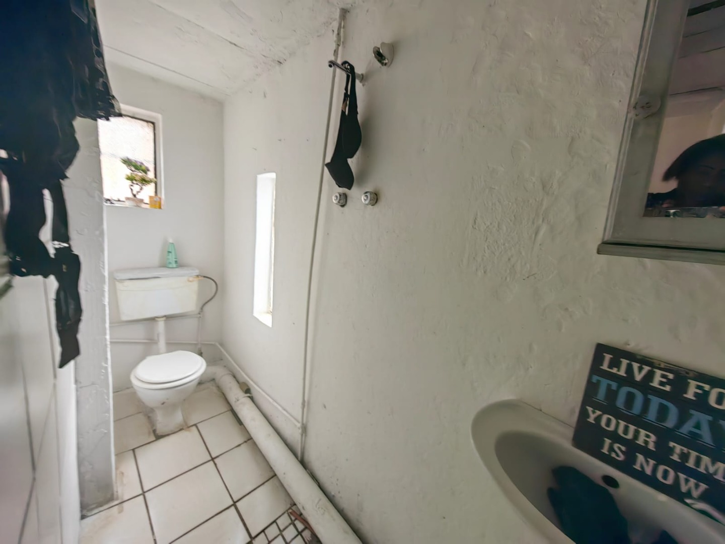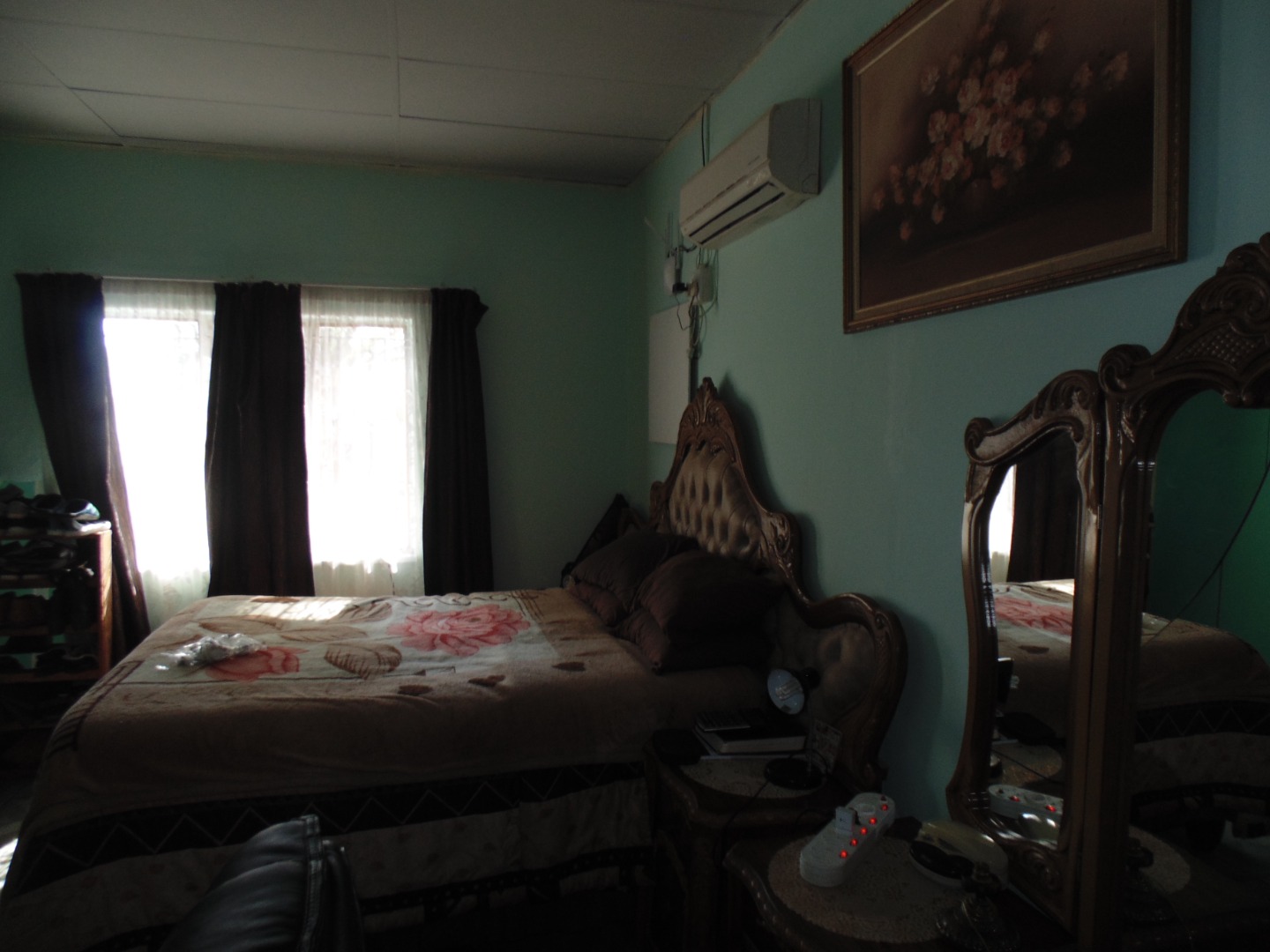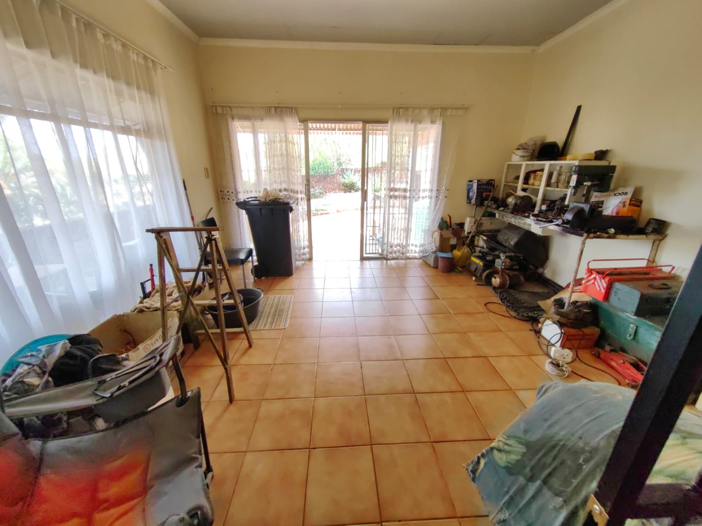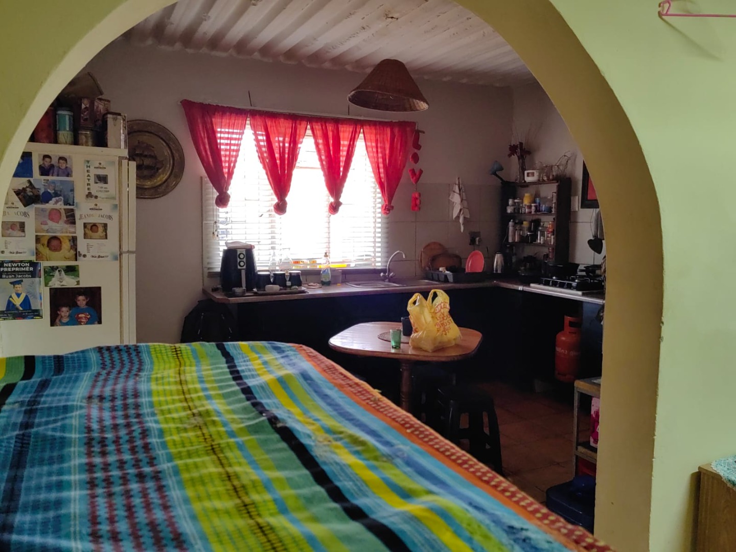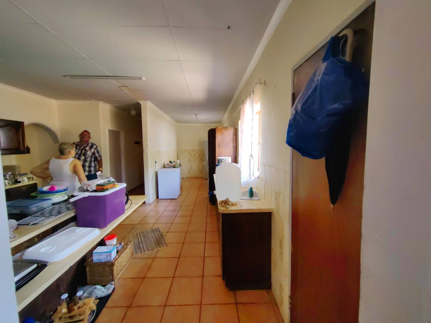 This is a corner stand where the two back sides of the property are walled, and 2 front sides are fenced. Included is a 5000-litter water tank with a pump.