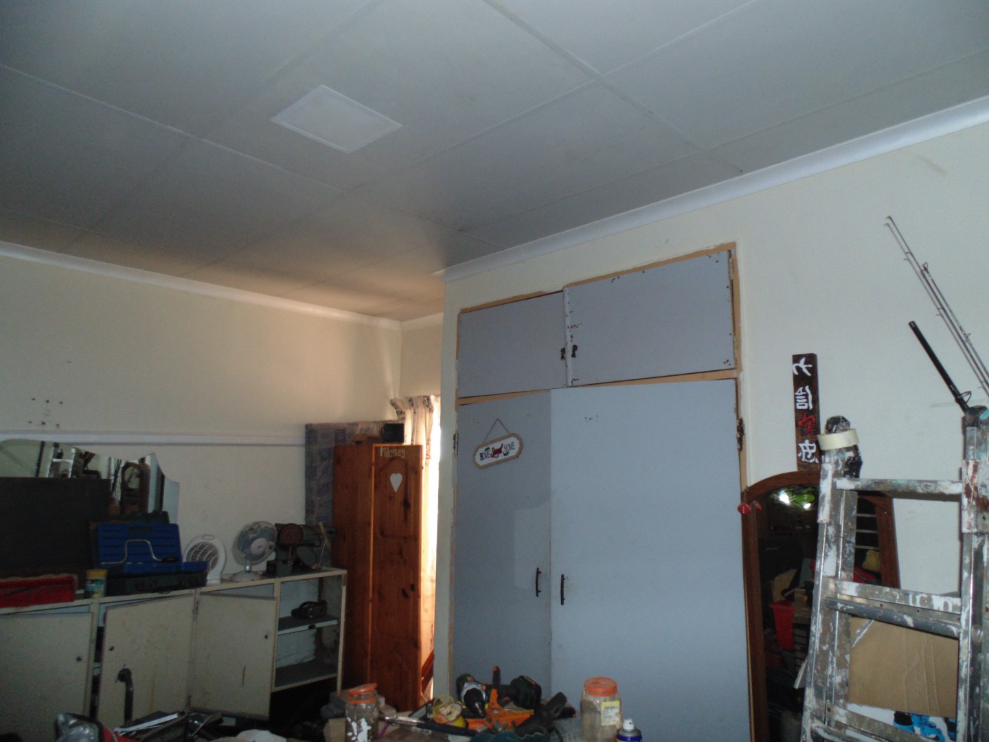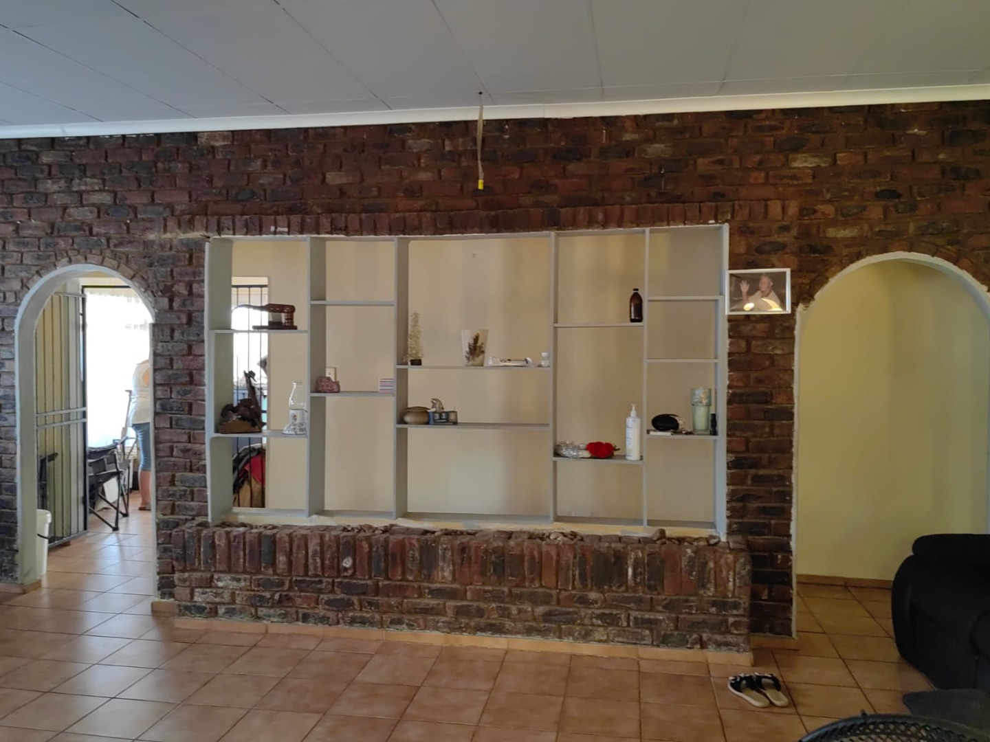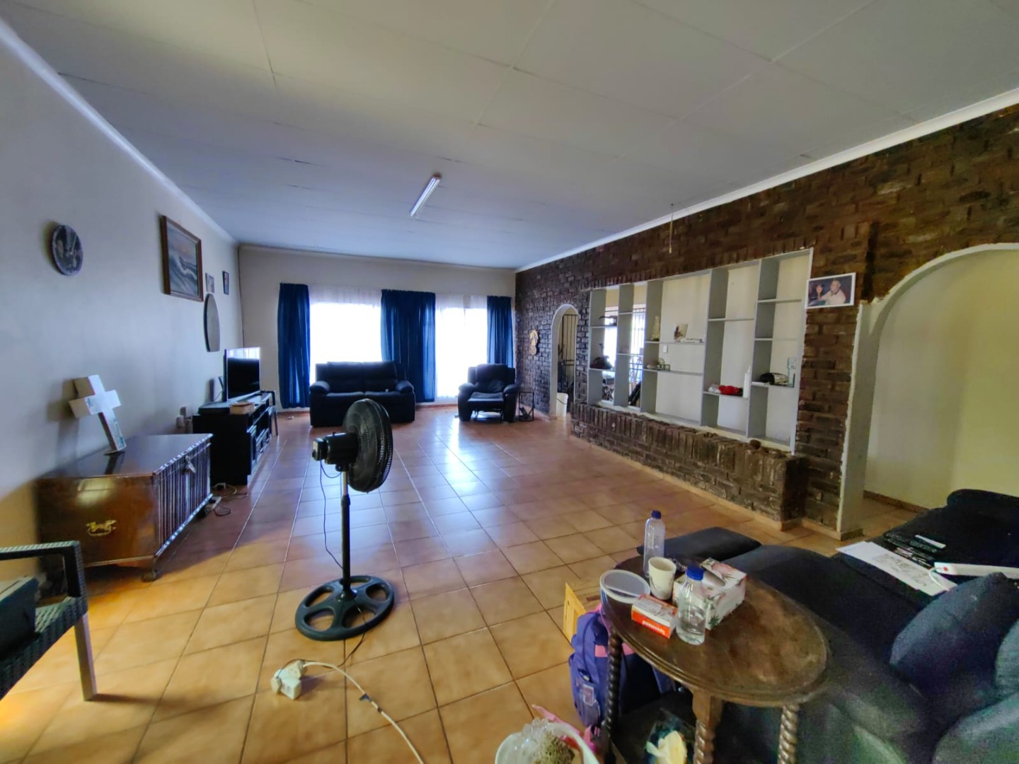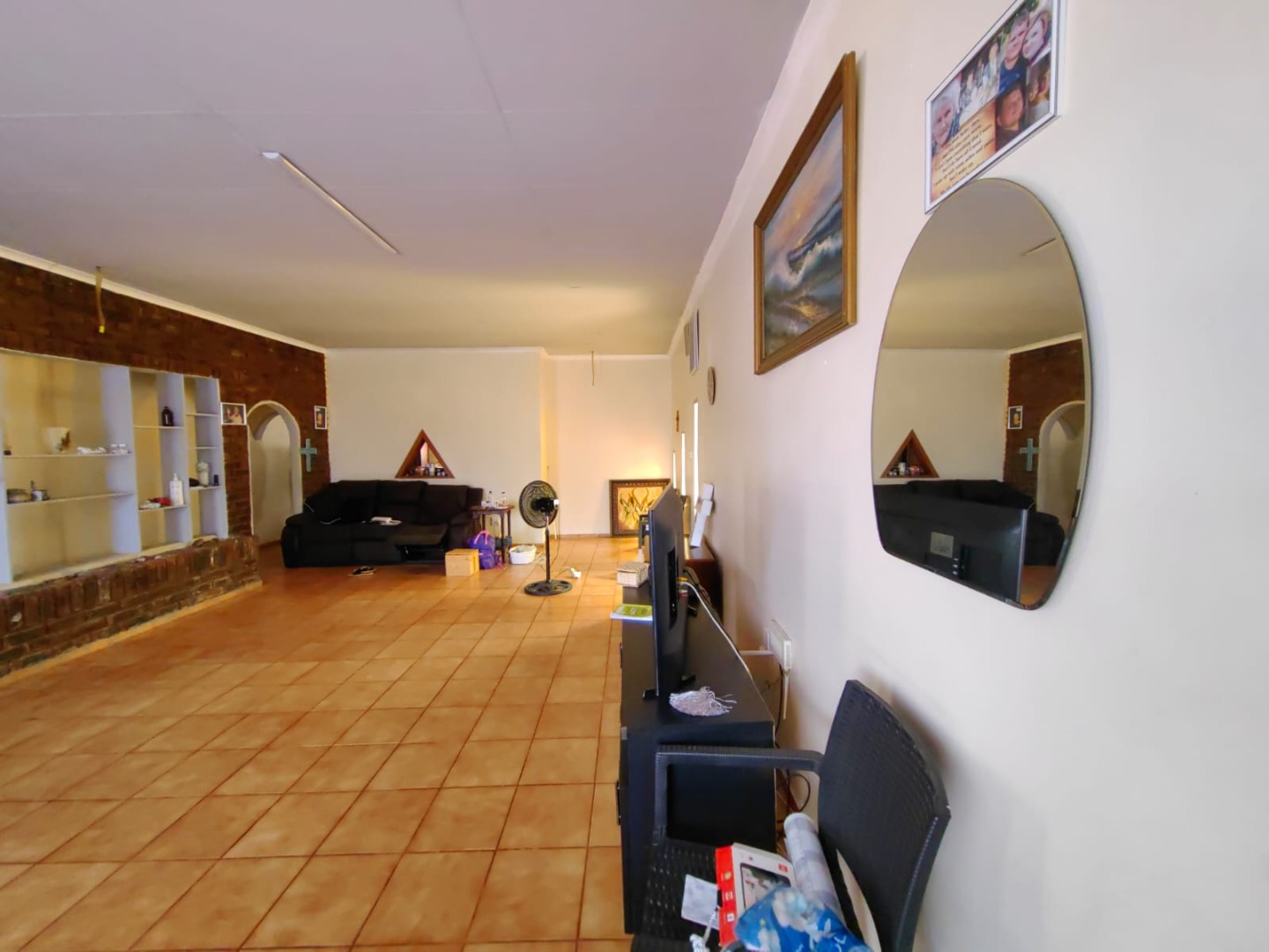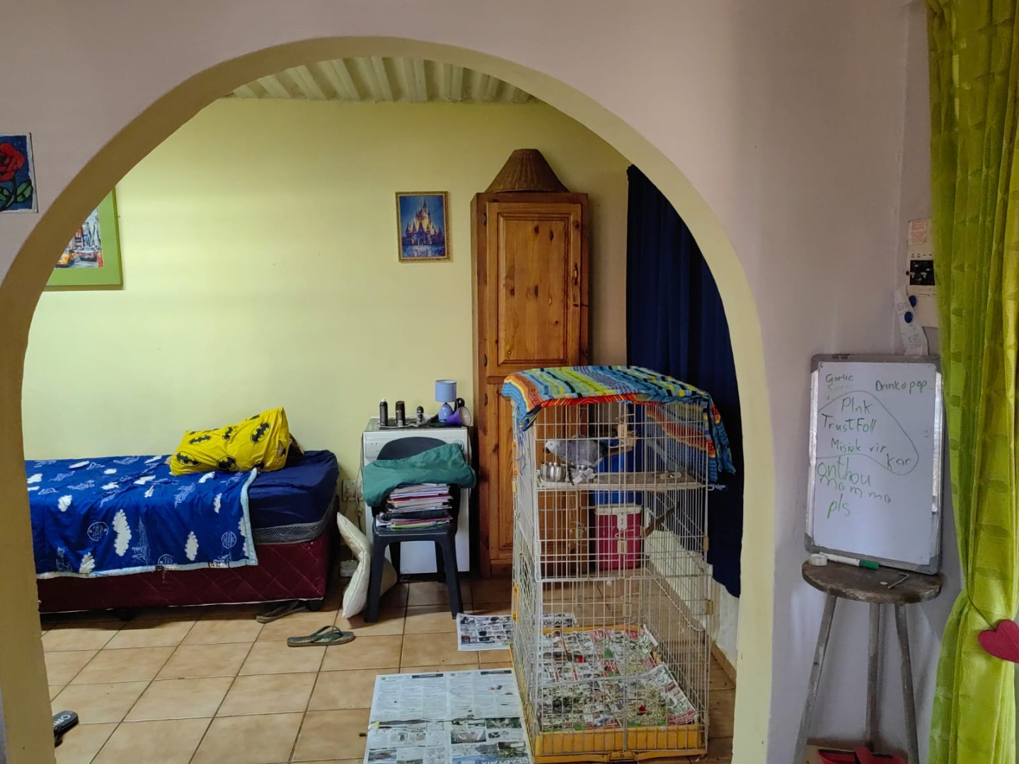 This is a corner stand where the two back sides of the property are walled, and 2 front sides are fenced. Included is a 5000-litter water tank with a pump.
