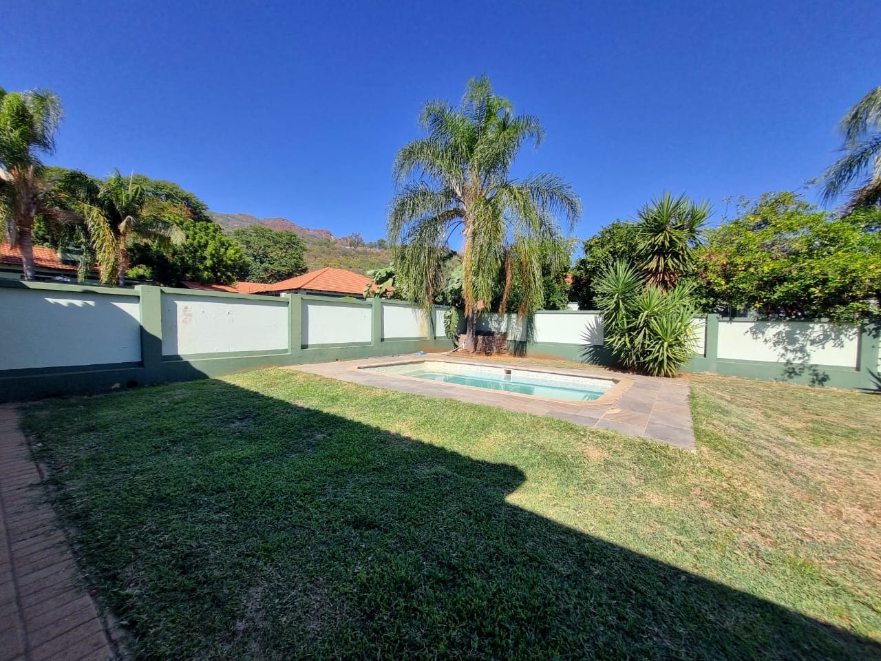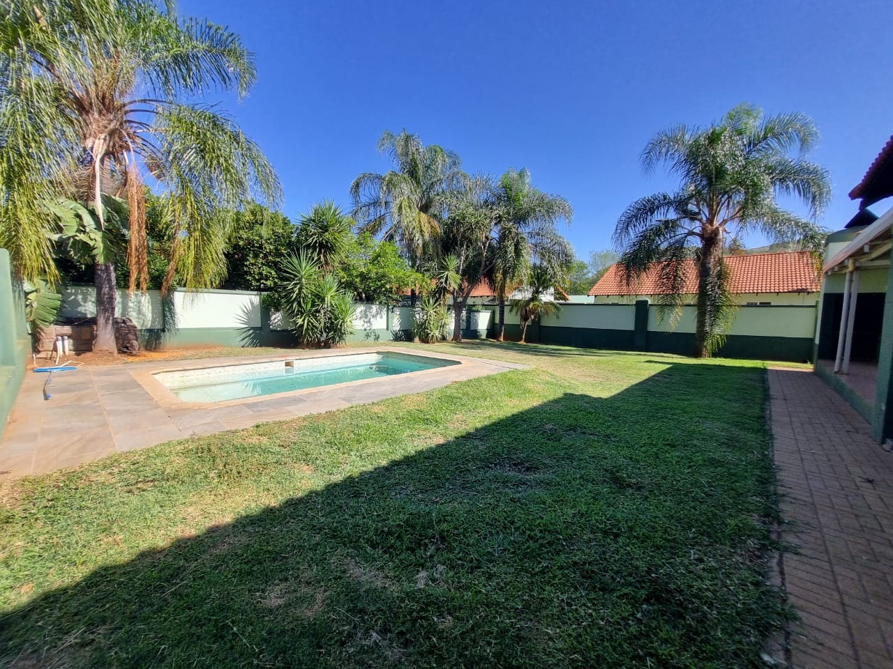 For entertainment and relaxation, there is a swimming pool and a lapa with a built-in braai.