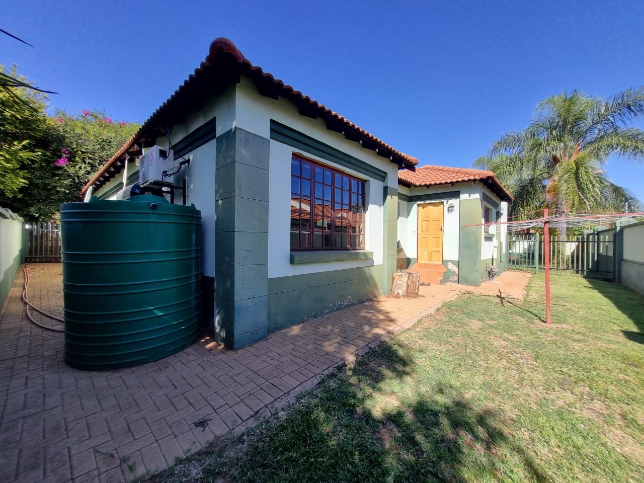 The outdoor area is just as impressive, featuring a beautifully spacious garden with a sprinkler system, a 2500-liter water tank, and a pressure pump.