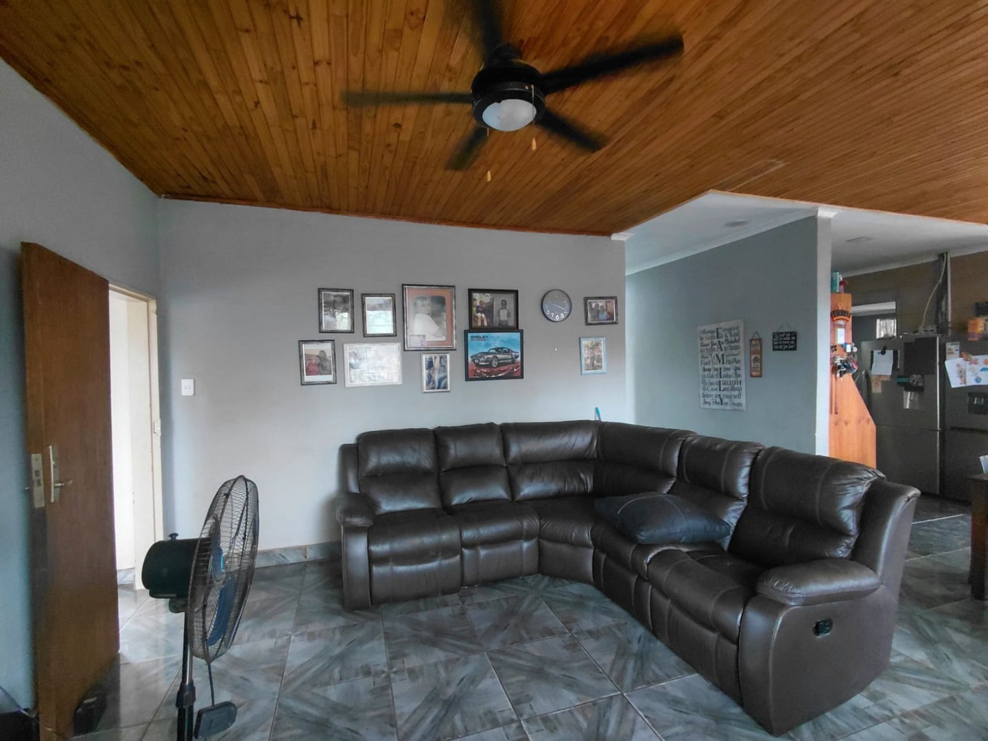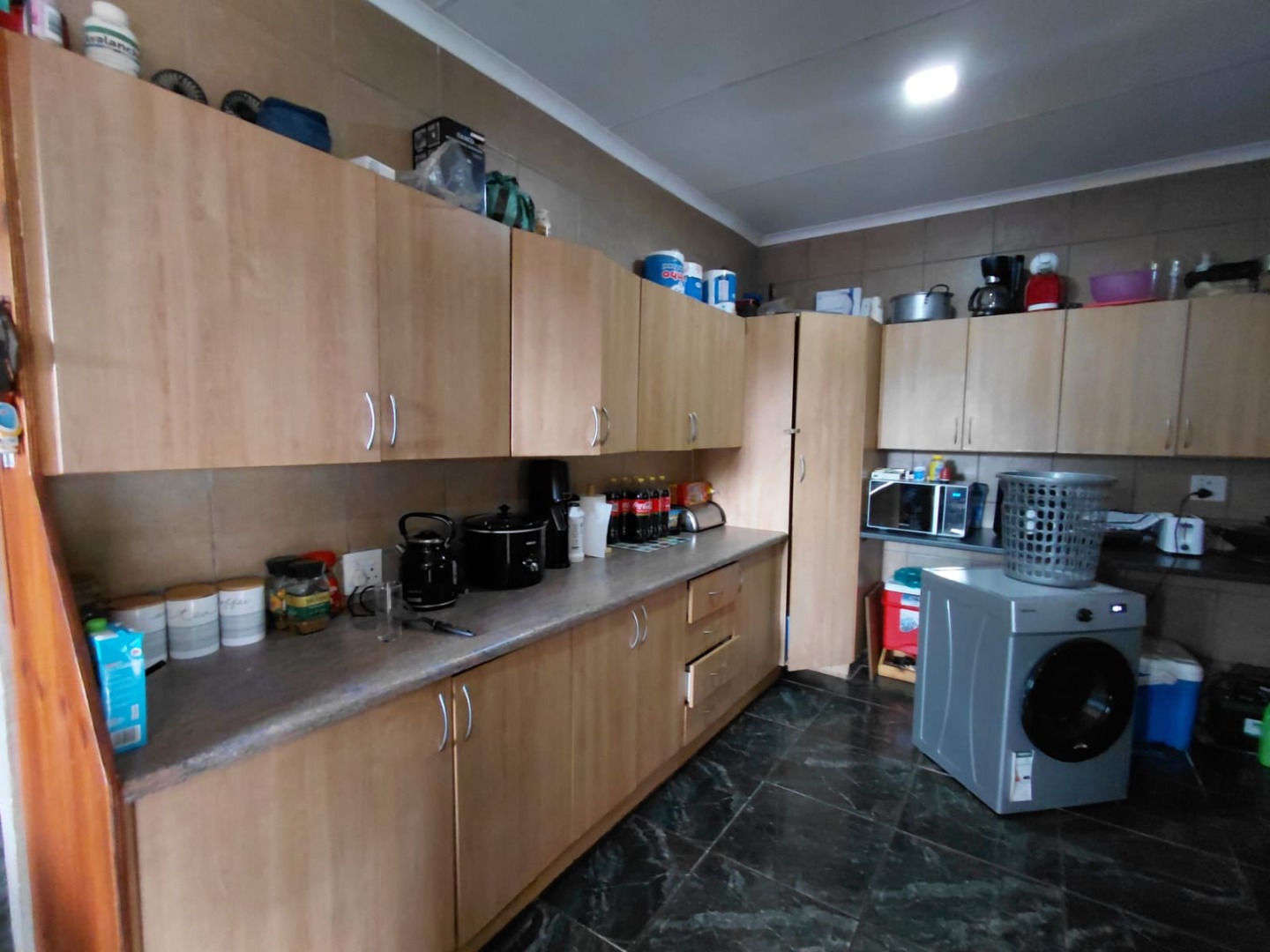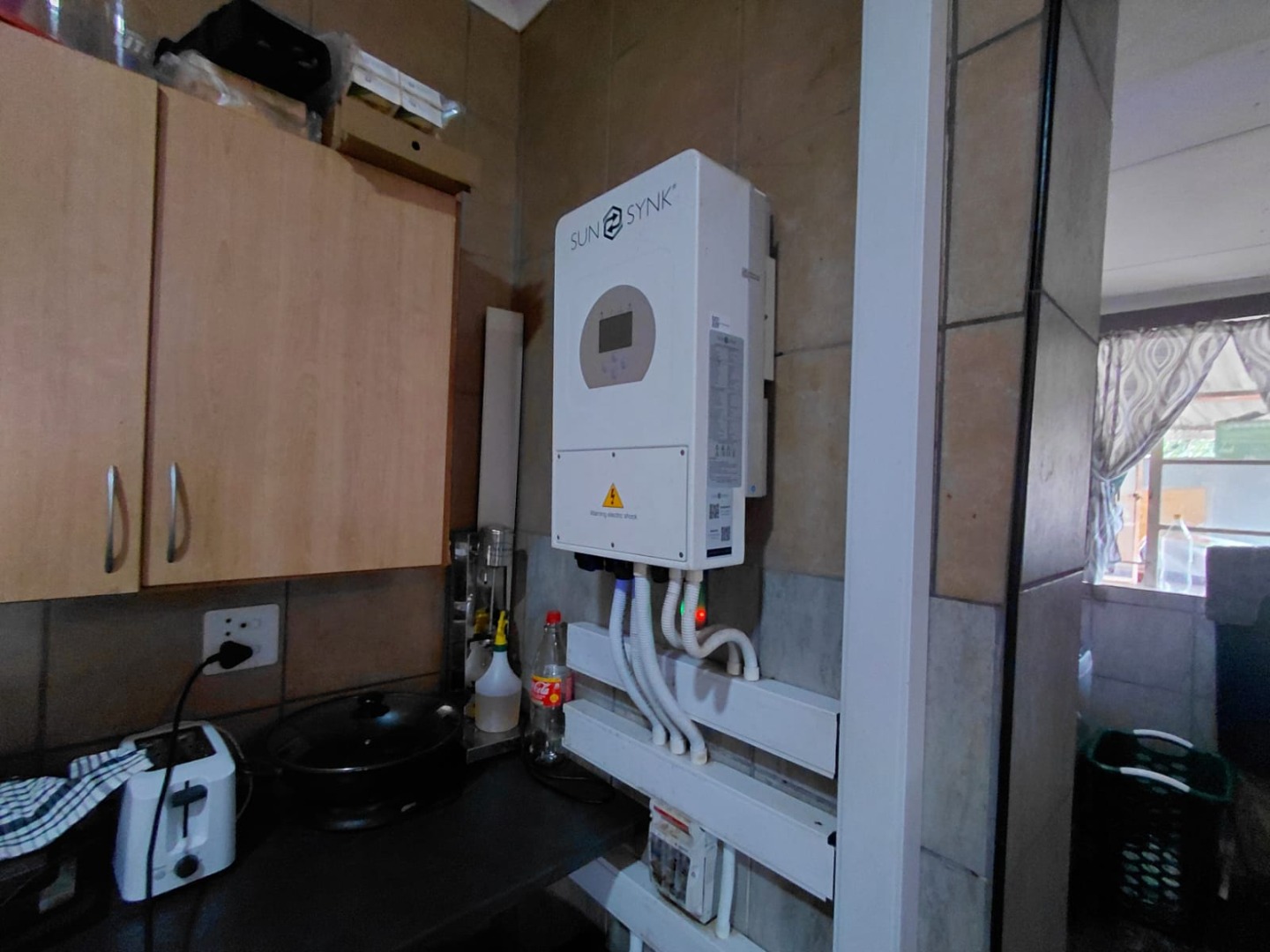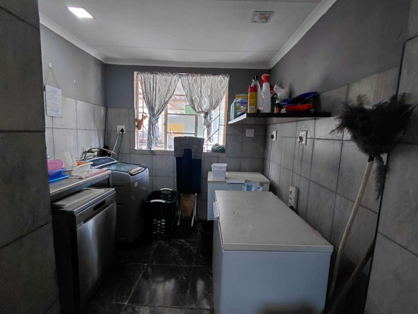 The generous kitchen and a separate laundry area. Just off the kitchen is a dining space ideal for family meals, while the cozy living room flows onto a charming stoep, creating a warm and relaxing atmosphere.