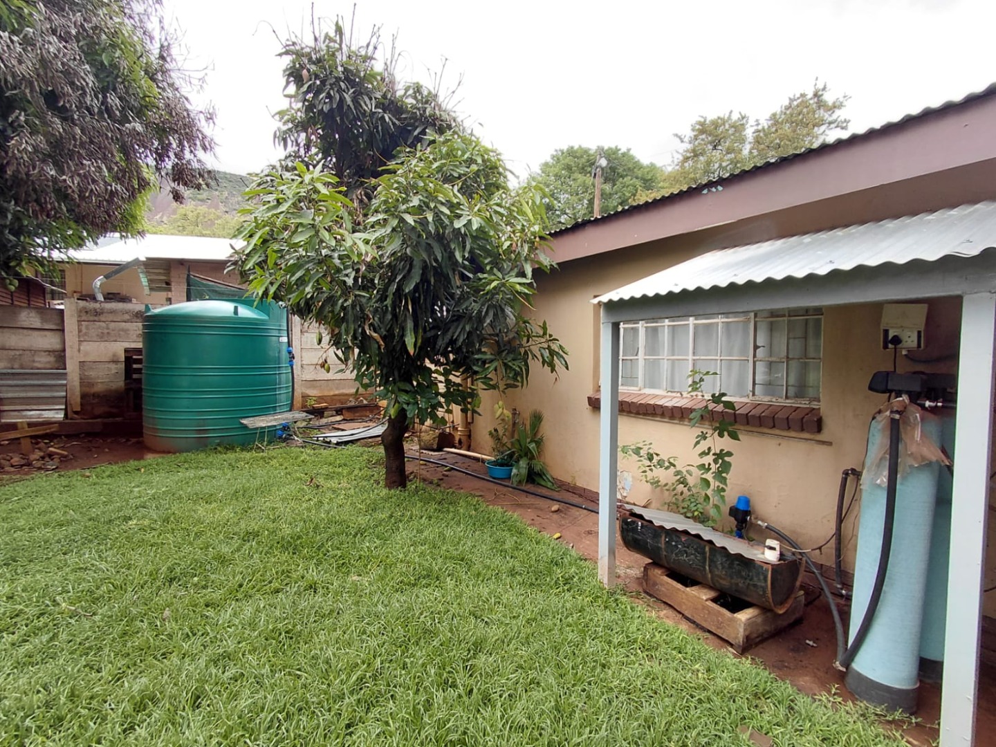 Water supply is well taken care of with two tanks, two pressure pumps, and a strong borehole delivering an impressive 5,000 litres per hour—ideal for household use and garden upkeep.