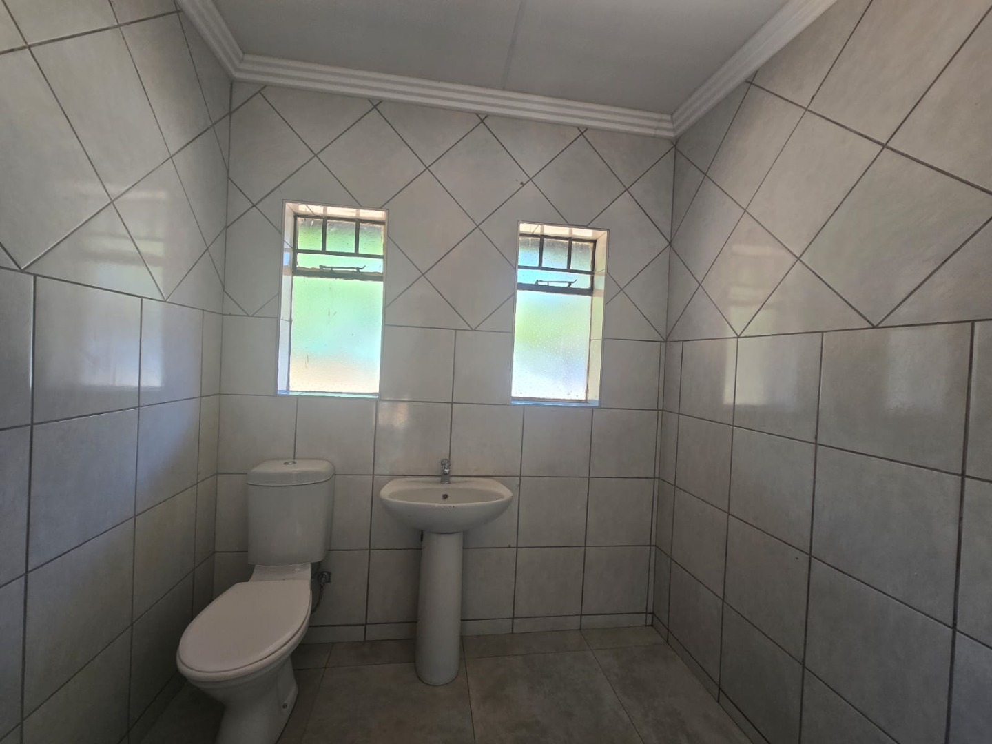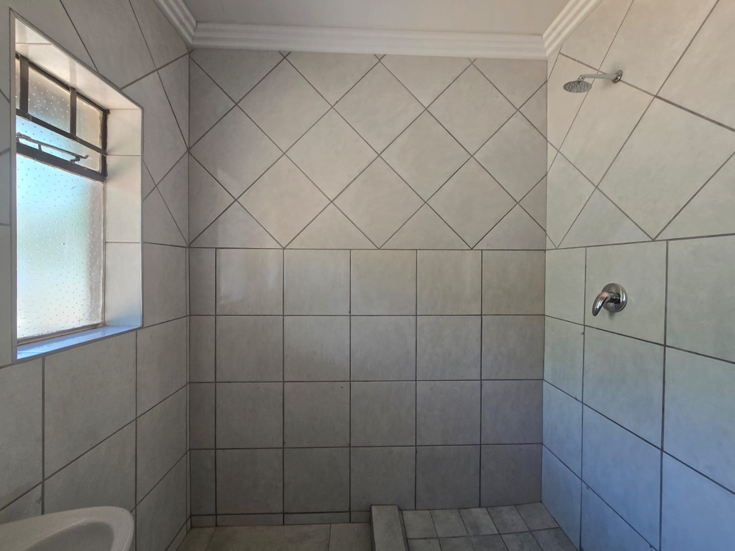 * Fully tiled bathroom with modern fixtures