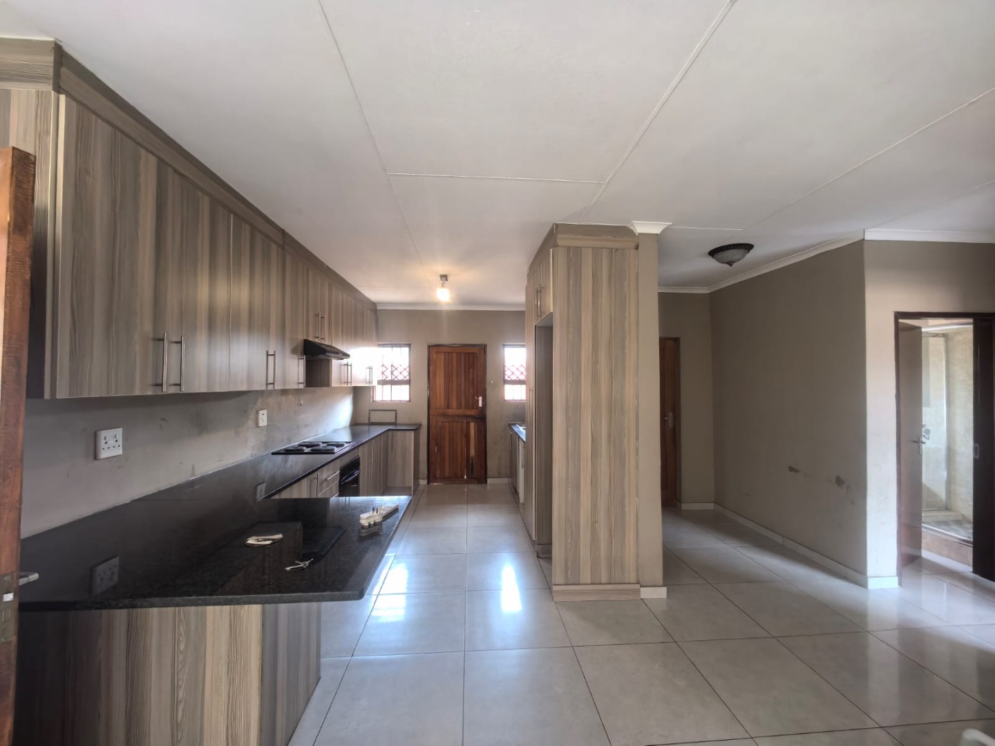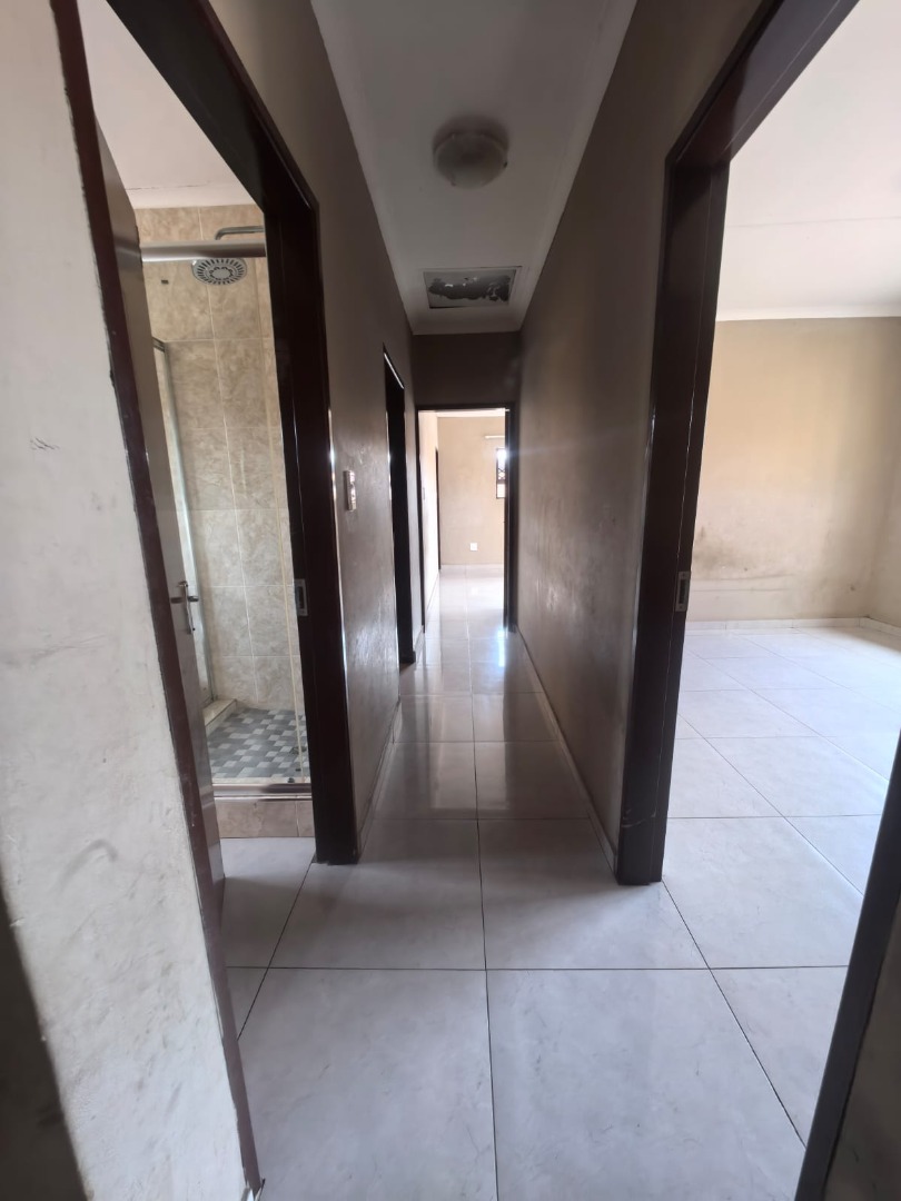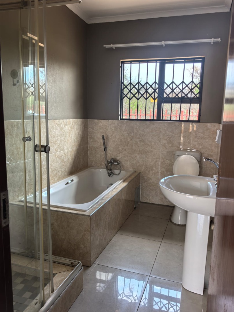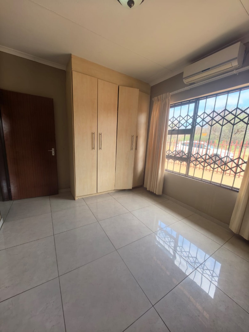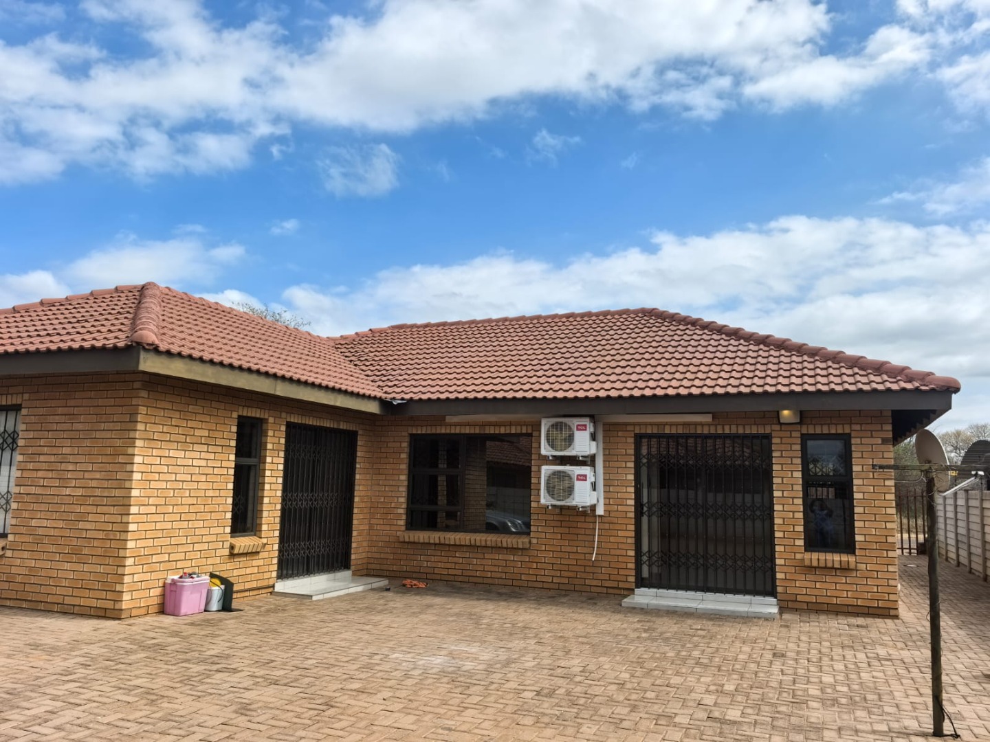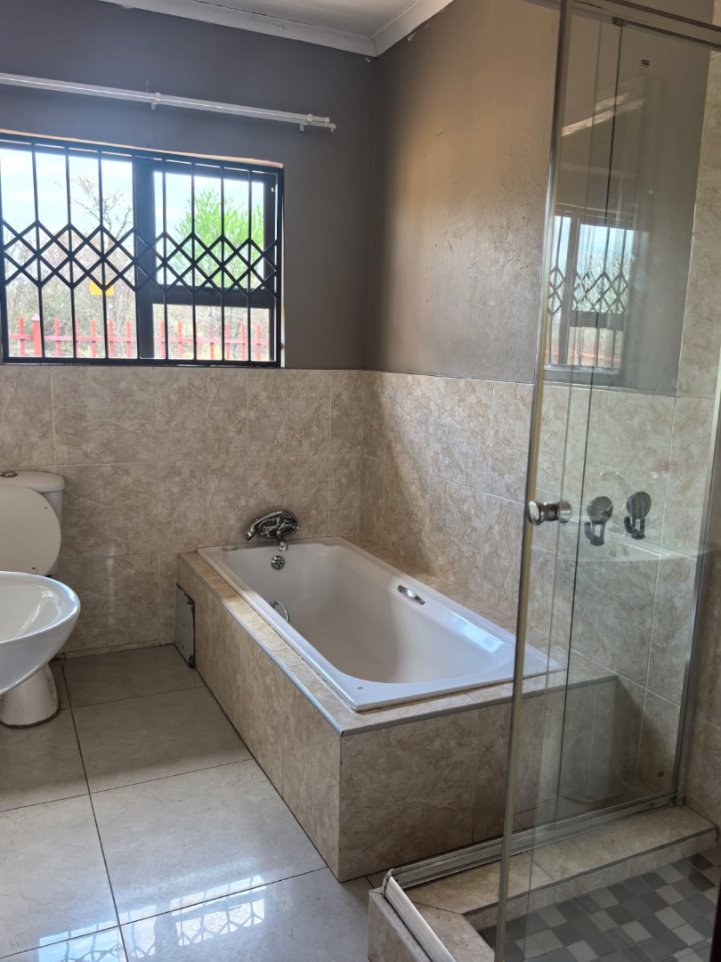 This inviting 3-bedroom, 2-bathroom residence in Lephalale offers comfortable living across a generous 769.00 sqm floor size on an 830.00 sqm erf. The interior boasts a contemporary design with light-colored tiled flooring flowing seamlessly throughout. The heart of the home is a modern kitchen, featuring extensive wood-grain cabinetry, sleek dark countertops, and an integrated hob with an extractor fan, all designed for practical daily use. This open-plan space connects effortlessly to the living areas, creating an ideal environment for both relaxation and entertaining. Each of the three bedrooms is equipped with built-in wooden wardrobes, providing ample storage solutions, and benefits from durable tiled flooring. For year-round comfort, multiple air conditioning units are installed throughout the property. The two bathrooms are well-appointed, with one offering a modern rainfall shower and the other featuring both a bathtub and a separate shower stall, catering to diverse preferences. Security is a key highlight of this home, featuring robust security gates on all visible windows and doors, complemented by window bars for enhanced peace of mind. The exterior is characterized by durable brick construction, a tiled roof, and a fully paved front yard and driveway, ensuring low maintenance. A satellite dish is also installed, ready for connectivity. Situated in the suburban area of Onverwacht, this property provides a convenient and accessible location within Lephalale, South Africa. It is an ideal rental opportunity for families or professionals seeking a secure and well-appointed home. Key Features: * Three Bedrooms * Two Bathrooms (one ensuite) * Modern Kitchen with Built-in Hob * Single Garage * Multiple Air Conditioning Units * Enhanced Security Gates and Window Bars * Durable Tiled Flooring Throughout * Built-in Wooden Wardrobes * Paved Exterior and Driveway