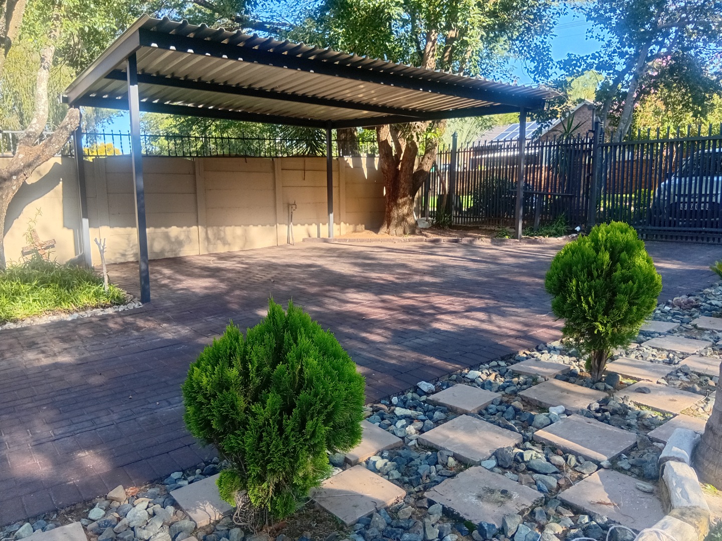 This home isn't just about comfort; it's super practical too. You'll have a covered carport for two vehicles, plus a paved driveway for easy access. Inside, there's a handy laundry room and extra storage space. With water tanks on site, you're all set for a bit of eco-friendly living. For cozy evenings, a built-in braai and bar add a nice touch.