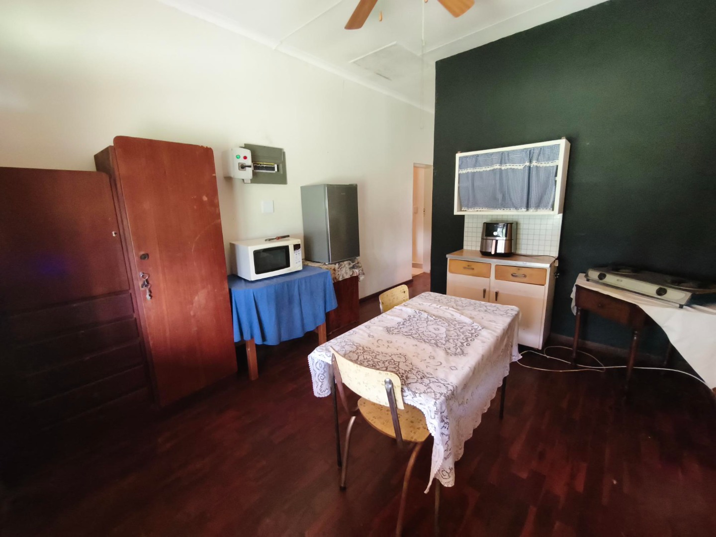 Discover a comfortable 1-bedroom, 1-bathroom rental opportunity nestled in the tranquil Thabazimbi Rural area. This inviting property features a practical layout, including a combined kitchen and dining room area. The kitchen is equipped with essential freestanding appliances, catering to your daily needs. For enhanced comfort, the kitchen benefit from a ceiling fan, while the main bedroom also includes an air conditioning unit and a fan, ensuring a pleasant environment year-round.