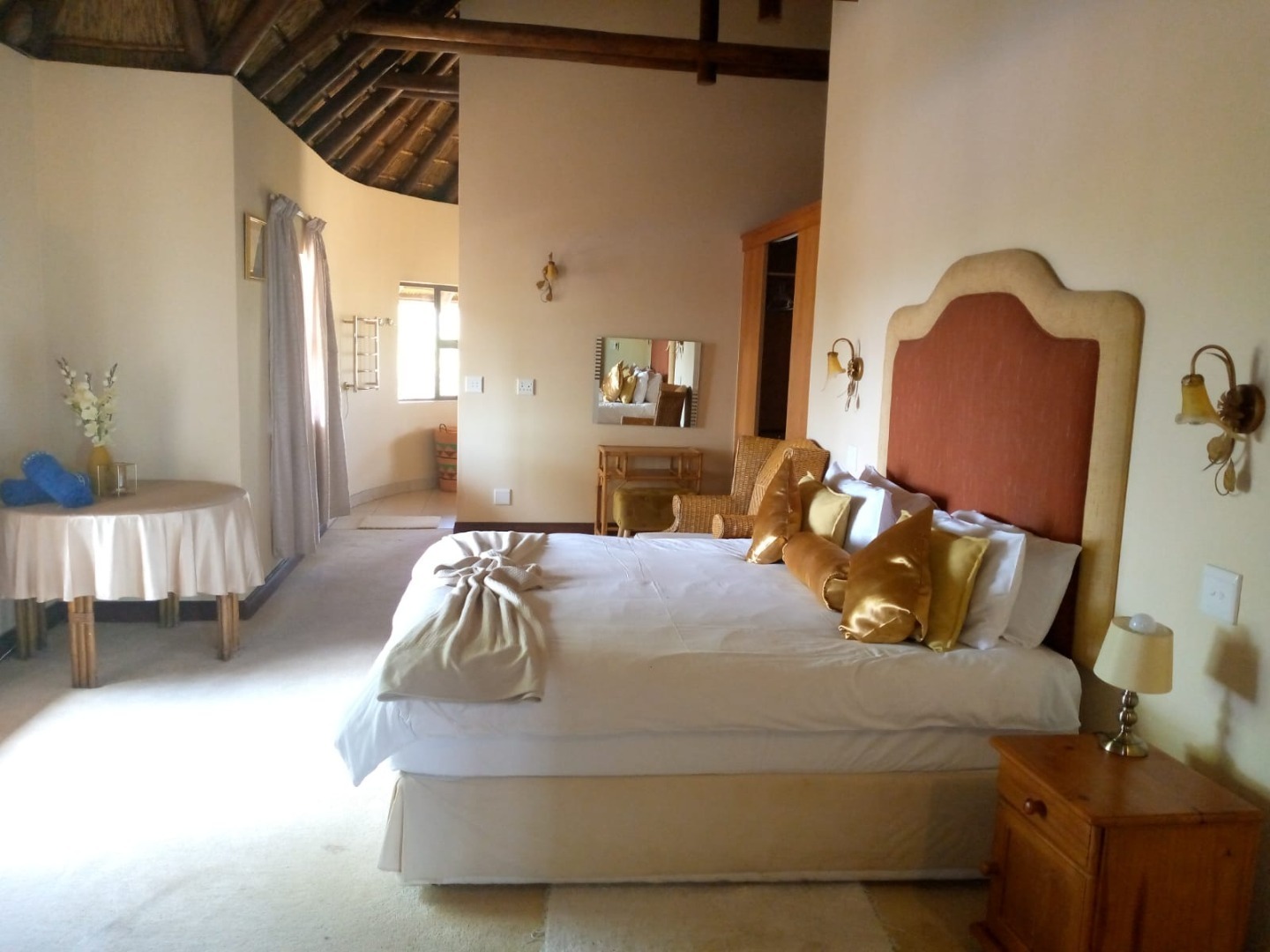Inside the main house is 4 bedrooms, two of the bedrooms being ensuite with both bath and showers. One of the main bedrooms has its own private lounge area that opens up onto the boma, patio and a sparkling swimming pool.