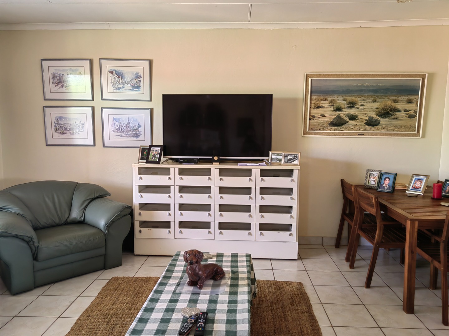 - Large living area / dining area. Patio