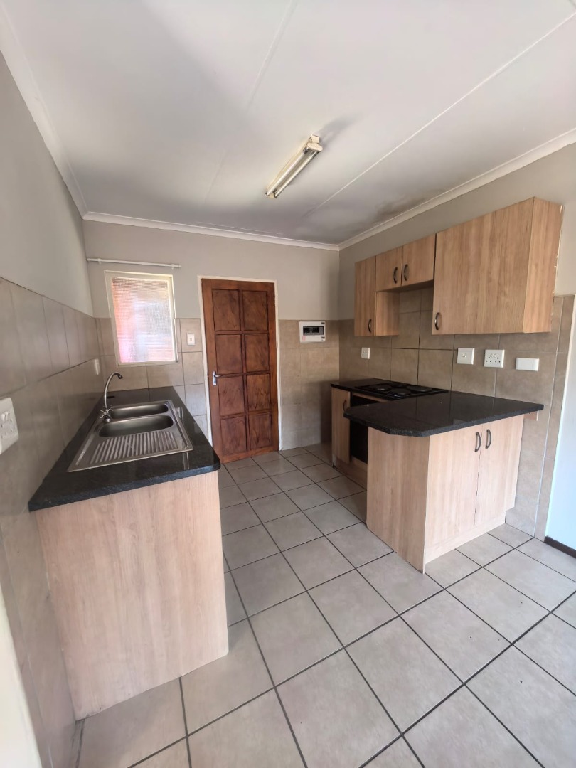 This inviting 2-bedroom, 1-bathroom residence offers a comfortable living experience. Spanning 58 square meters, this home is designed for practical living, featuring durable tiled flooring throughout for easy maintenance. The interior boasts a functional kitchen equipped with modern-style light wood-look cabinetry, dark countertops, a double sink, and an integrated stovetop, providing ample space for culinary activities. The living spaces are bright and airy, benefiting from natural light through well-placed windows and a glass-paneled door. Each of the two bedrooms provides a neutral canvas for personalisation, with one featuring a convenient built-in three-door wardrobe for storage. The bathroom is fully tiled and includes a combined shower and corner bathtub, catering to all your needs. An air conditioning unit is present, offering climate control for year-round comfort. Step outside to discover your own private oasis, complete with a fenced swimming pool and a small lawn area, perfect for relaxation and entertaining. Dedicated carport parking ensures convenience. Residents also benefit from access to communal amenities within the complex, including a larger swimming pool and ample green spaces with mature trees, fostering a pleasant community atmosphere. Located in Onverwacht, Lephalale, South Africa, this property offers a balanced lifestyle with essential amenities nearby. It presents an excellent opportunity for first-time buyers or those seeking a compact, low-maintenance home in a well-established area. Key Features: * 2 Bedrooms, 1 Bathroom * 58 sqm Floor Size * Private Swimming Pool & Garden * Dedicated Carport Parking * Communal Swimming Pool & Green Spaces * Modern-style Kitchen Cabinetry * Tiled Flooring Throughout * Air Conditioning Unit