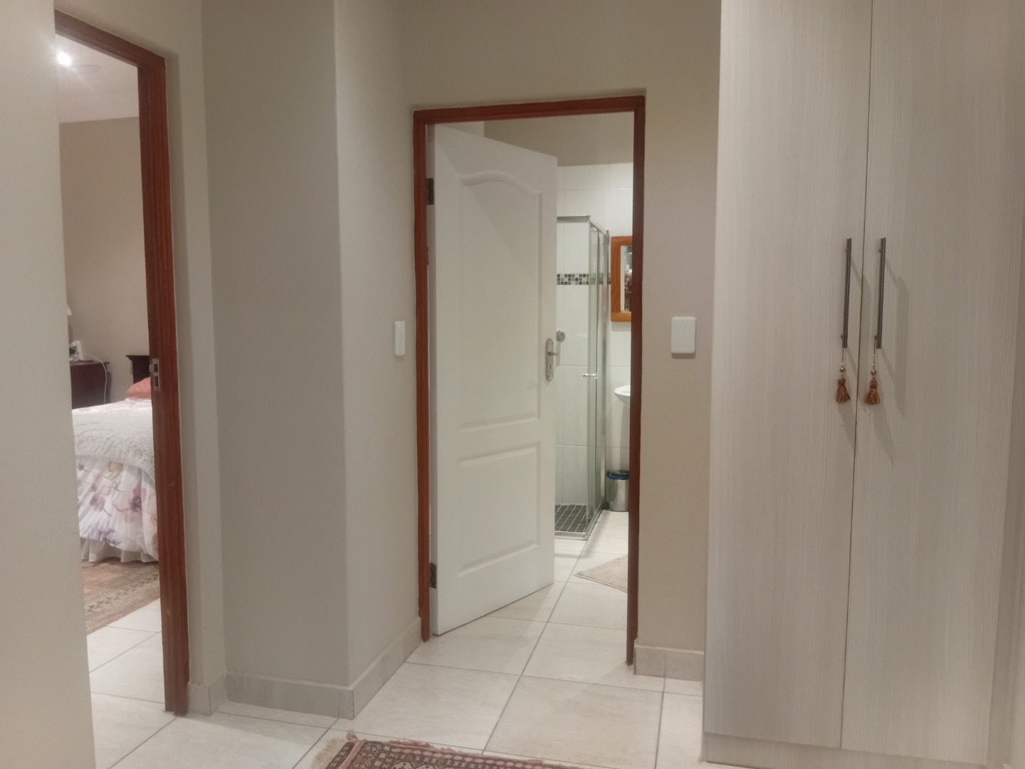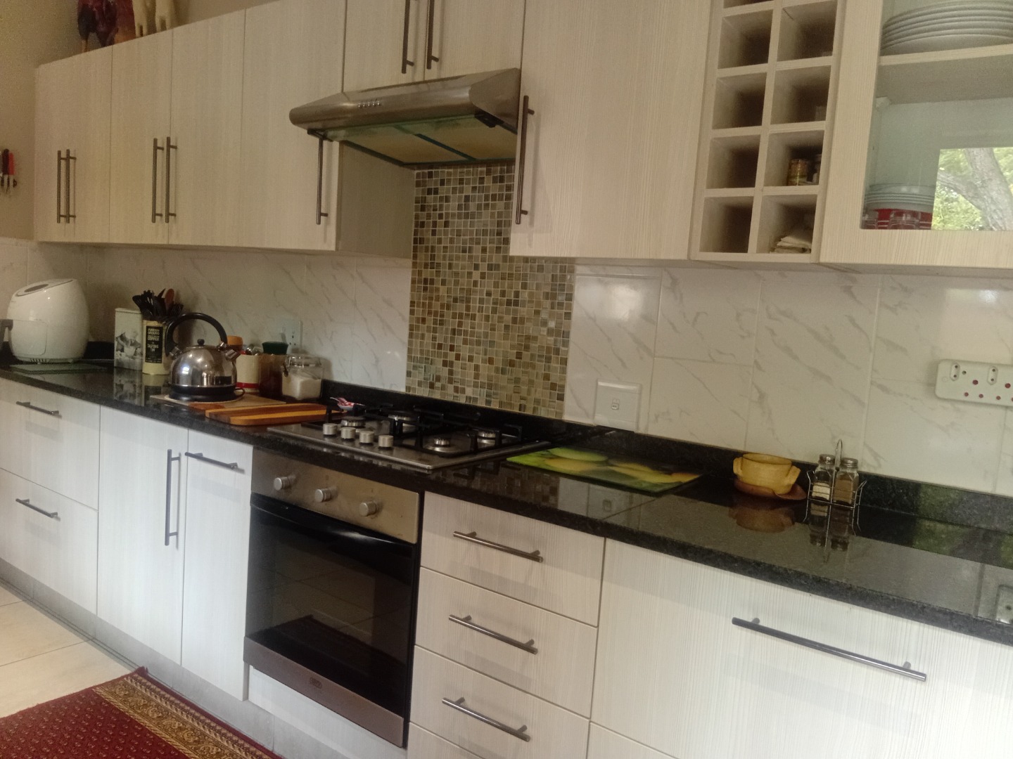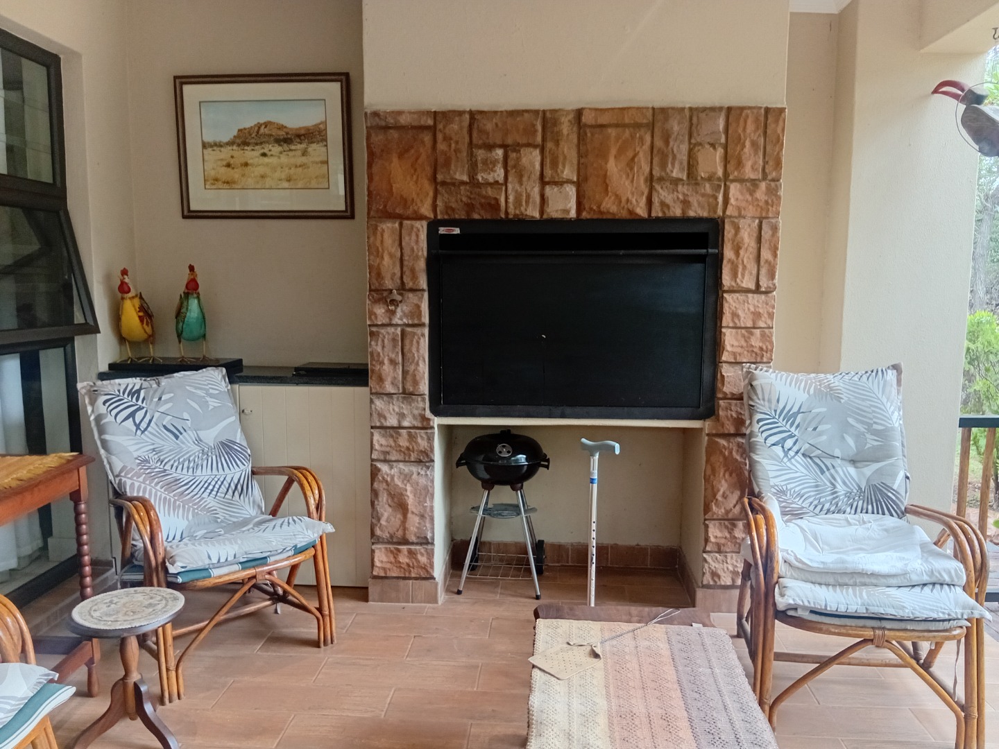Discover this inviting 3-bedroom, 2-bathroom residence within the prestigious Koro Creek Golf Estate in Modimolle, South Africa. Boasting a modern facade with a neutral colour scheme and a tiled roof, the property presents excellent kerb appeal. A paved driveway leads to a double garage, complementing the well-maintained, water-wise landscaping. Grand double wooden doors highlight the welcoming entrance. Inside, the home offers a spacious 200 sqm floor plan designed for comfortable living. The open-plan layout seamlessly connects the modern kitchen and dining area. The kitchen is a highlight, featuring light wood-grain cabinetry, dark granite countertops, a built-in oven, gas hob, and an integrated breakfast bar. Ample storage, including an integrated wine rack, ensures functionality. Tiled flooring extends throughout these communal areas, enhanced by natural light. The residence comprises three well-appointed bedrooms, each offering a comfortable retreat. The main bedroom benefits from an en-suite bathroom, providing privacy and convenience. All bedrooms feature practical tiled flooring and built-in wardrobes, ensuring ample storage space. Neutral wall colours throughout offer a versatile canvas. Outdoor living is enhanced by a private garden and a built-in braai, perfect for entertaining. As part of a secure golf estate, residents enjoy 24-hour security, electric fencing, and access control. The estate also offers a golf course, club house, and scenic views, providing a tranquil retirement village and wildlife estate lifestyle. Fibre connectivity and water tanks are included. Key Features: * 3 Bedrooms, 2 Bathrooms (1 En-suite) * Double Garage & Paved Driveway * Modern Open-Plan Kitchen with Granite Countertops * Built-in Braai & Private Garden * Fibre Connectivity & Water Tanks * 24-Hour Security, Access Gate & Electric Fencing * Koro Creek Golf Estate, Modimolle * Scenic Views & Club House Access