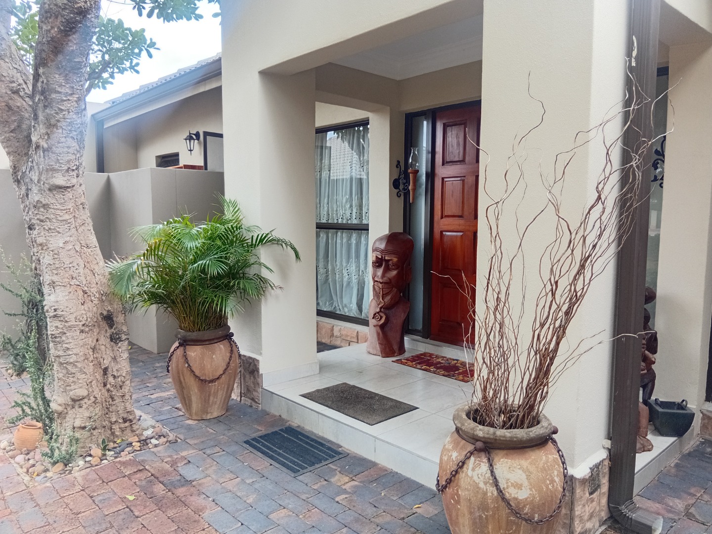 Discover this inviting 3-bedroom, 2-bathroom residence within the prestigious Koro Creek Golf Estate in Modimolle, South Africa. Boasting a modern facade with a neutral colour scheme and a tiled roof, the property presents excellent kerb appeal. A paved driveway leads to a double garage, complementing the well-maintained, water-wise landscaping. Grand double wooden doors highlight the welcoming entrance. Inside, the home offers a spacious 200 sqm floor plan designed for comfortable living. The open-plan layout seamlessly connects the modern kitchen and dining area. The kitchen is a highlight, featuring light wood-grain cabinetry, dark granite countertops, a built-in oven, gas hob, and an integrated breakfast bar. Ample storage, including an integrated wine rack, ensures functionality. Tiled flooring extends throughout these communal areas, enhanced by natural light. The residence comprises three well-appointed bedrooms, each offering a comfortable retreat. The main bedroom benefits from an en-suite bathroom, providing privacy and convenience. All bedrooms feature practical tiled flooring and built-in wardrobes, ensuring ample storage space. Neutral wall colours throughout offer a versatile canvas. Outdoor living is enhanced by a private garden and a built-in braai, perfect for entertaining. As part of a secure golf estate, residents enjoy 24-hour security, electric fencing, and access control. The estate also offers a golf course, club house, and scenic views, providing a tranquil retirement village and wildlife estate lifestyle. Fibre connectivity and water tanks are included. Key Features: * 3 Bedrooms, 2 Bathrooms (1 En-suite) * Double Garage & Paved Driveway * Modern Open-Plan Kitchen with Granite Countertops * Built-in Braai & Private Garden * Fibre Connectivity & Water Tanks * 24-Hour Security, Access Gate & Electric Fencing * Koro Creek Golf Estate, Modimolle * Scenic Views & Club House Access