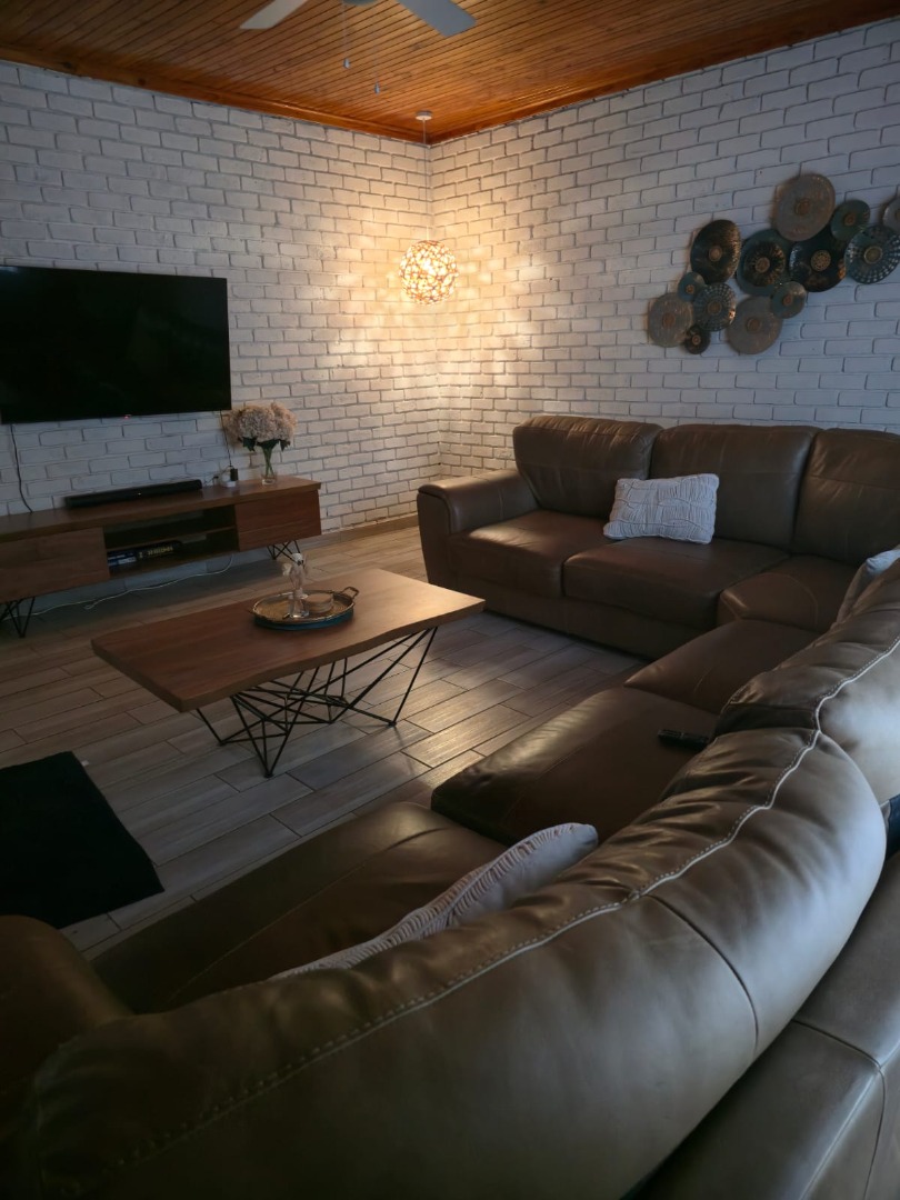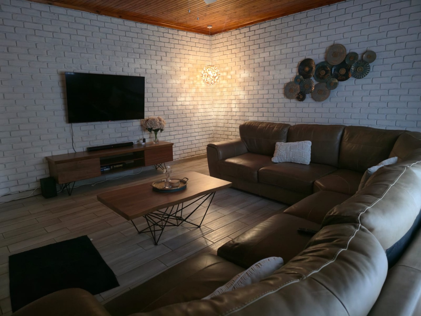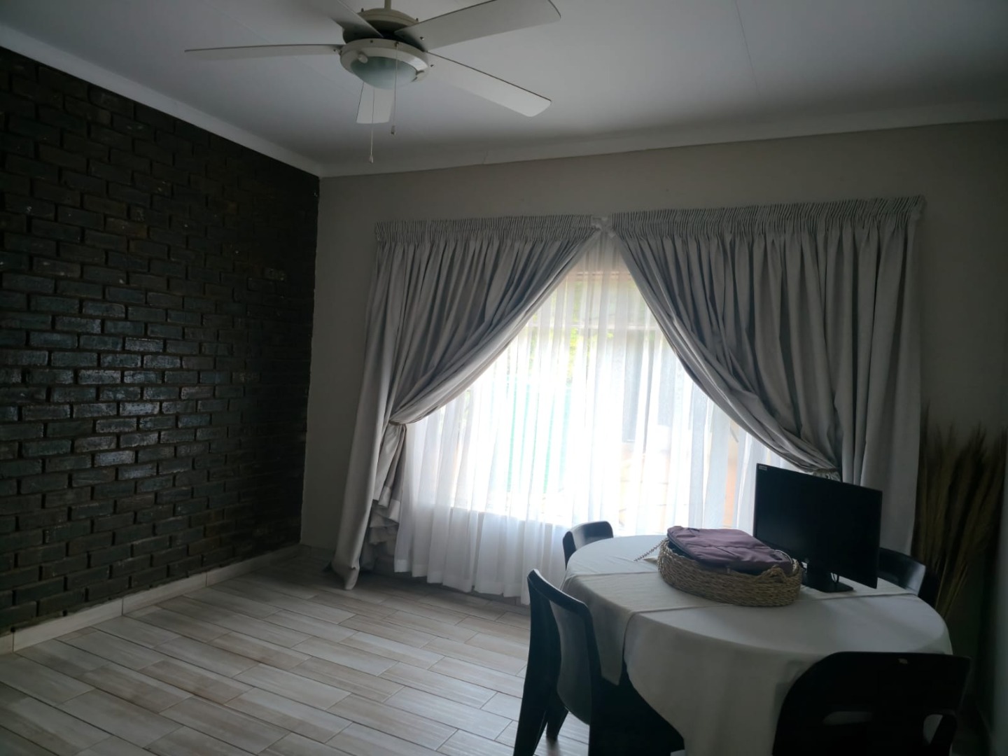Discover this inviting four-bedroom, two-bathroom rental home situated within a complex in Lephalale. Boasting a generous floor size of 1535 sqm on a 1590 sqm erf, this property offers ample space for comfortable living. The interior features a well-appointed kitchen equipped with extensive cabinetry, an integrated stove, catering to all your culinary needs. Adjacent to this, a dedicated laundry room provides practical convenience with tiled walls. The home also includes a lounge and a dining room, with one versatile space featuring a distinctive dark brick accent wall and contemporary wood-look tiled flooring, perfect for family gatherings or a flexible home office setup.