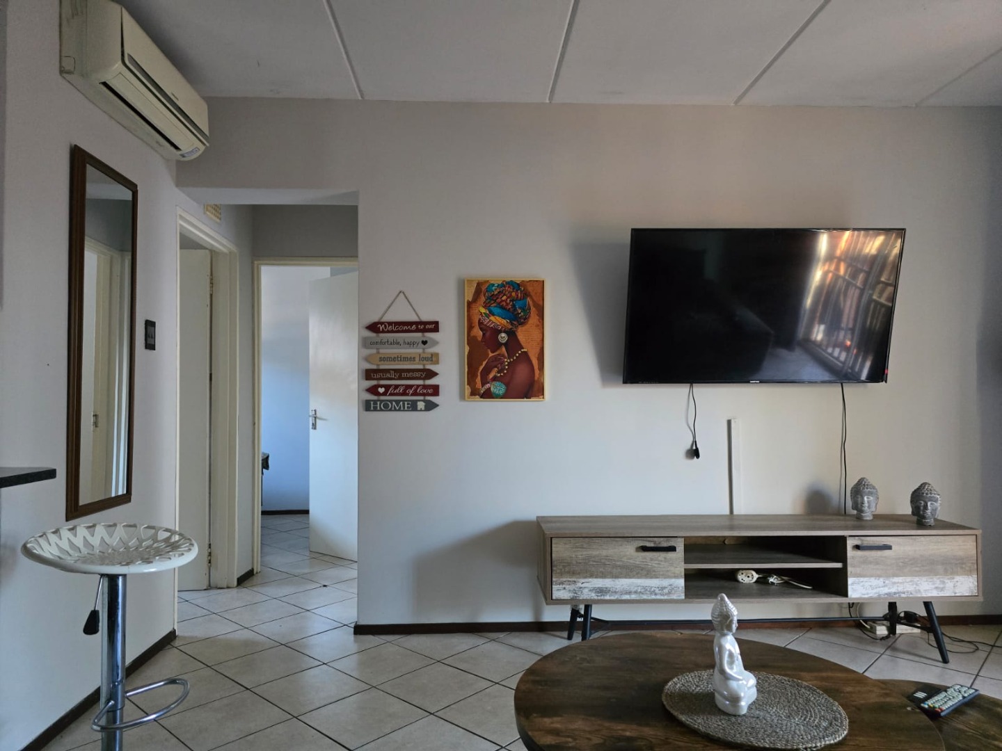 This inviting 2-bedroom, 1-bathroom apartment offers a comfortable and convenient residential rental opportunity in the sought-after suburban area of Onverwacht, Lephalale. Spanning 54 square metres, this fully furnished unit is designed for modern living, featuring an open-plan layout that seamlessly connects the living spaces. The interior boasts durable tiled flooring throughout, complemented by neutral wall colours, providing a versatile canvas for personal touches. Air conditioning units are installed in both the living area and a bedroom, ensuring year-round comfort. The lounge area opens via sliding doors to a private covered patio, extending your living space outdoors. The property is ideal for professionals or small families seeking a lock-up-and-go lifestyle. The well-appointed kitchen integrates smoothly with the living area, enhancing the open-plan feel. The bathroom is equipped with a bathtub and an overhead shower, catering to all preferences. Outside, a low-maintenance private outdoor area features artificial turf, perfect for relaxation without the upkeep. Residents also benefit from access to communal amenities, including a swimming pool and a clubhouse, fostering a vibrant community atmosphere. Security is a top priority within this complex. Enjoy peace of mind with 24-hour security, a dedicated security post, and an access gate. The property is further secured with electric fencing, burglar bars on windows, and a security gate on the sliding door. Connectivity is ensured with fibre readiness, and the complex benefits from water tanks, adding to its practical appeal. A dedicated parking bay is provided for your convenience. Located in Onverwacht, a tranquil suburb of Lephalale, this rental property offers a balanced lifestyle with essential amenities within easy reach. The area provides a peaceful residential environment while maintaining accessibility to local facilities. Key Features: * 2 Bedrooms, 1 Bathroom * Fully Furnished Apartment * Air Conditioning in Living Area & Bedroom * Private Covered Patio with Artificial Turf * Secure Complex with 24-Hour Security & Electric Fencing * Fibre Ready Connectivity * Communal Swimming Pool & Clubhouse Access * Dedicated Parking Bay