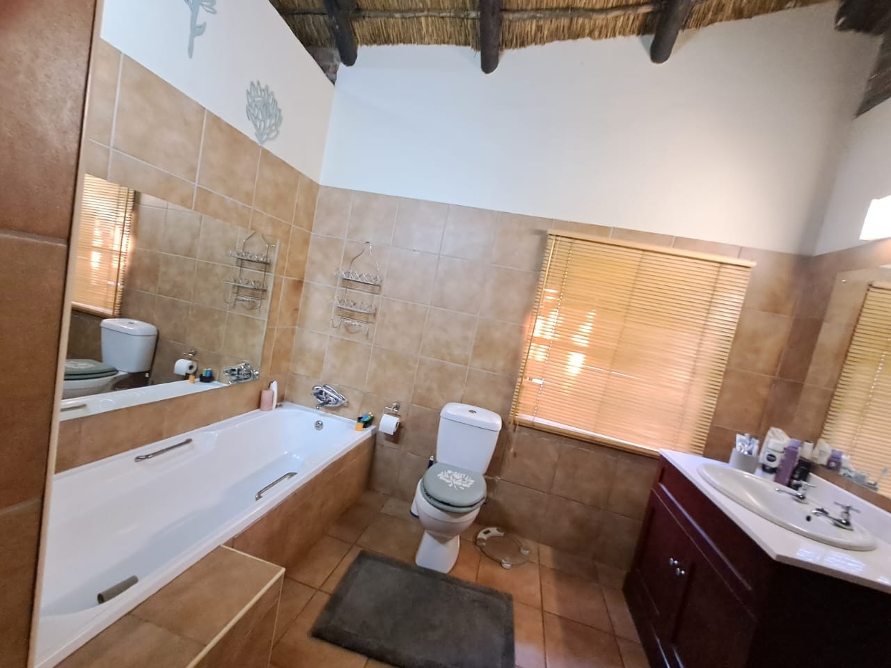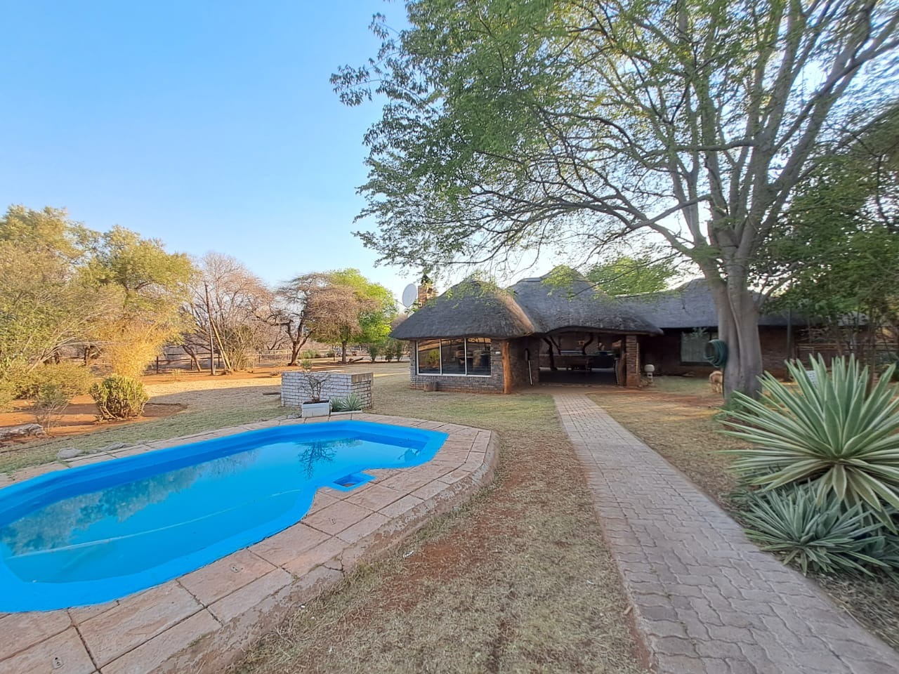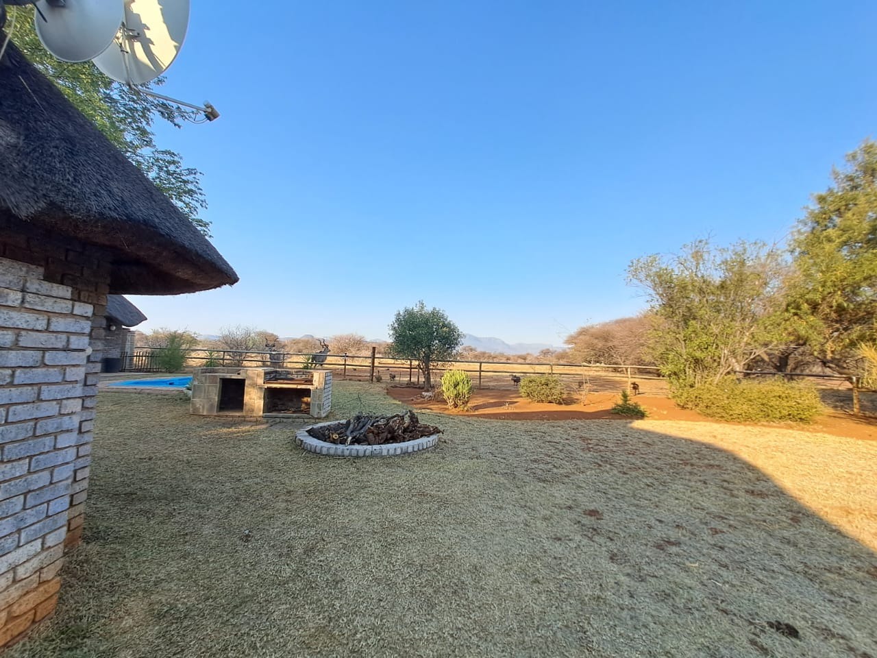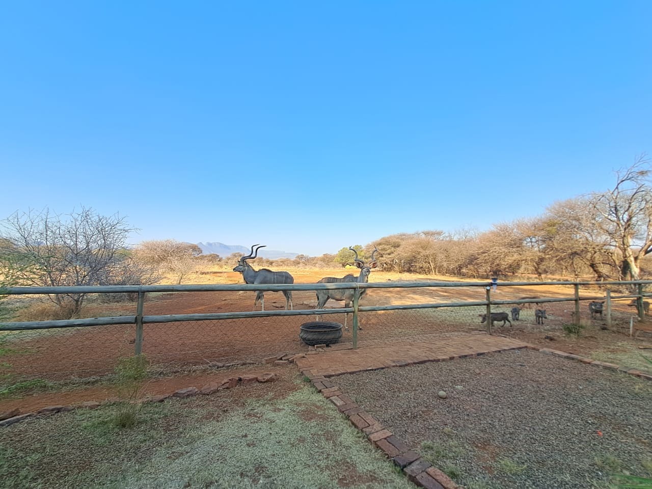 Additional features include a recently renovated swimming pool, 2 garages, 2 carports, and a Wendy house for extra storage. Enjoy spectacular mountain views and the unique experience of wildlife visiting the fence.